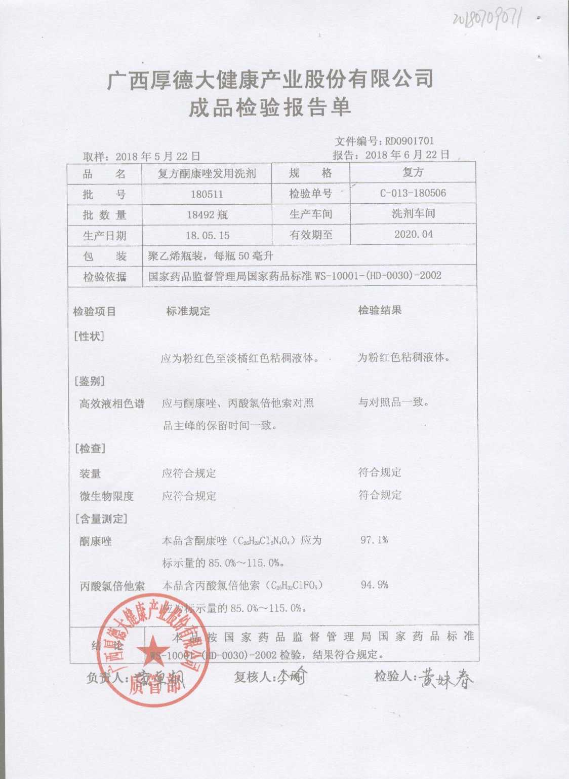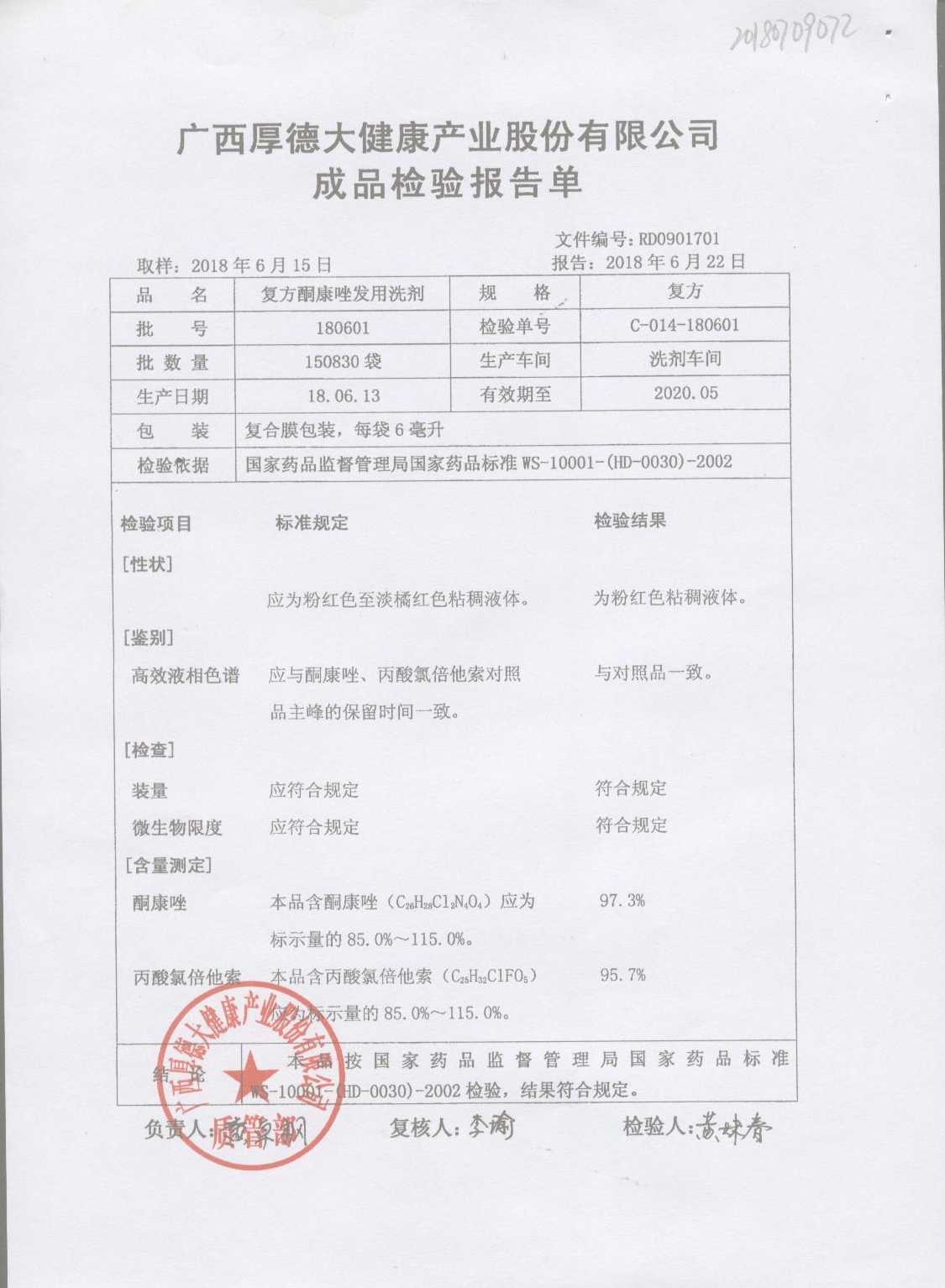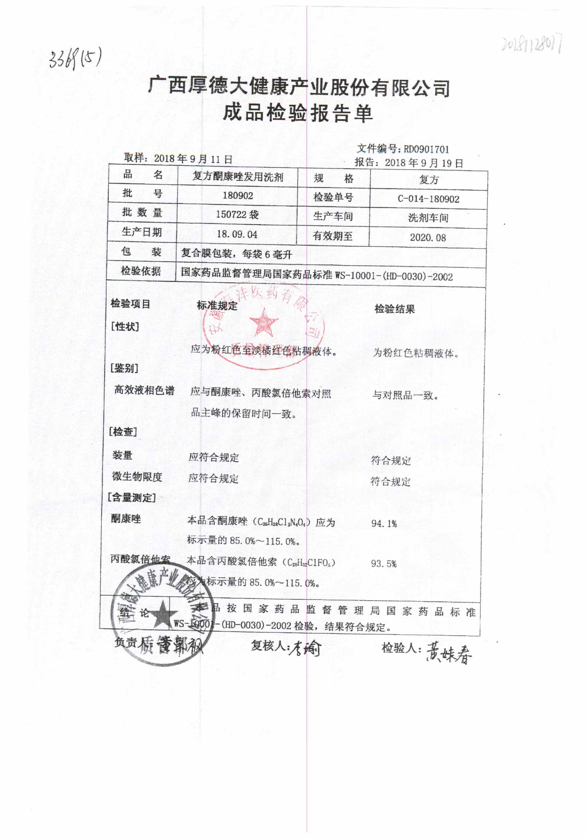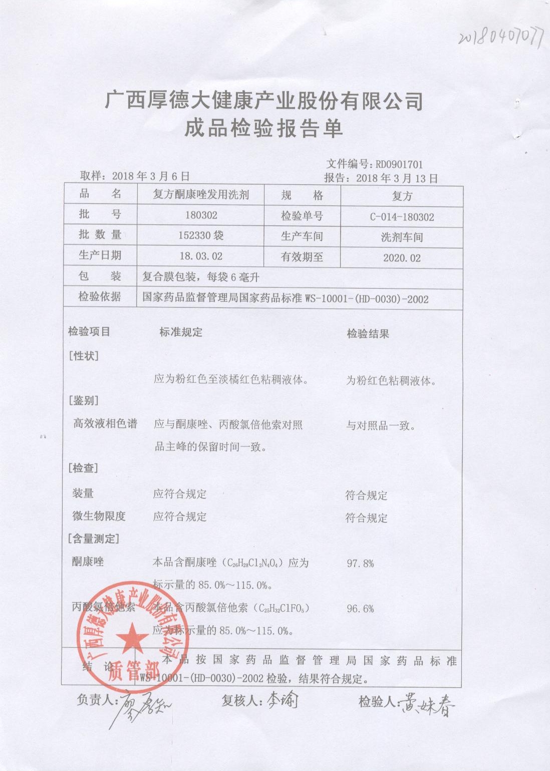 復(fù)方酮康唑發(fā)用洗劑 | 復(fù)方 | 180405 | 查看詳情 |