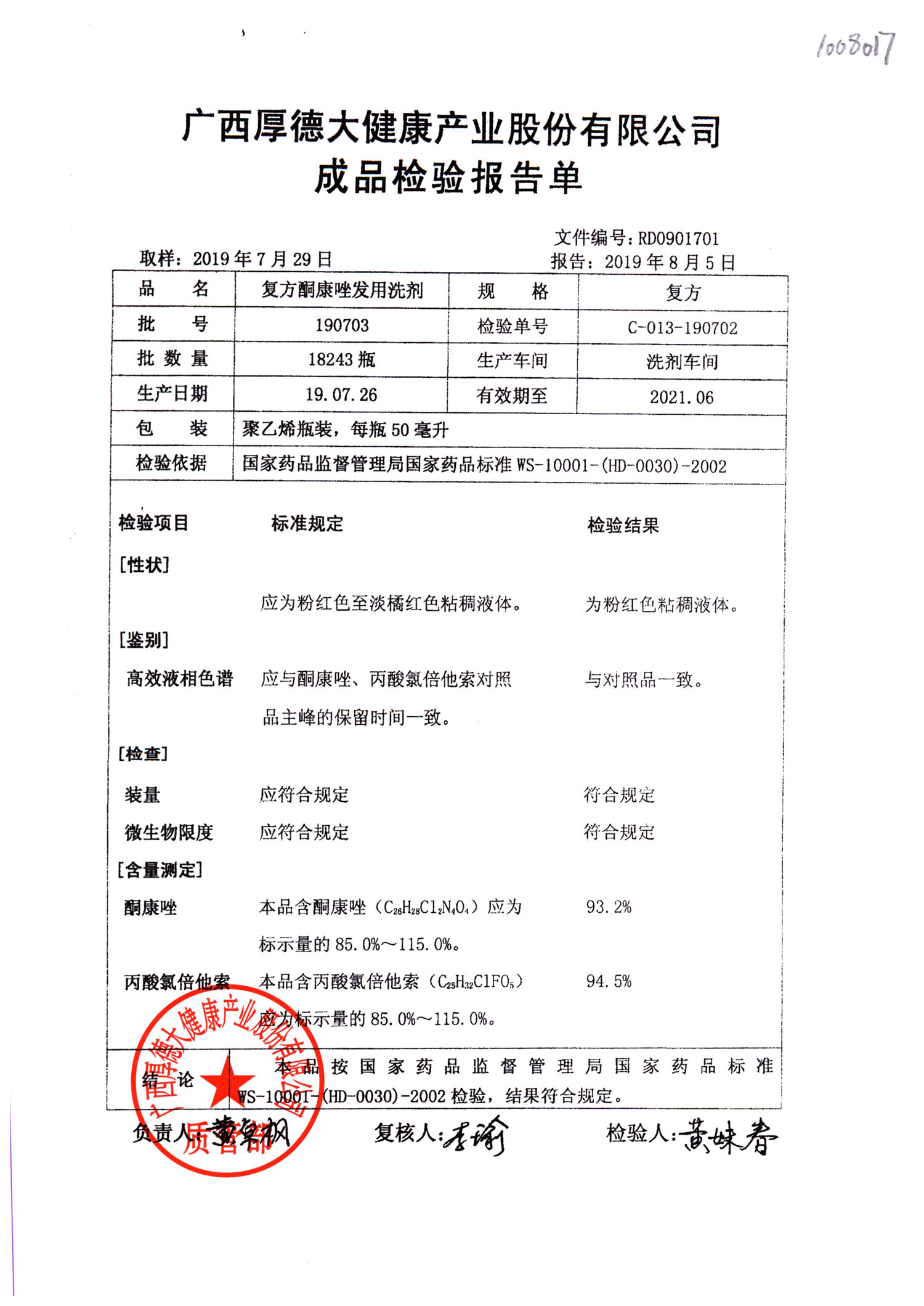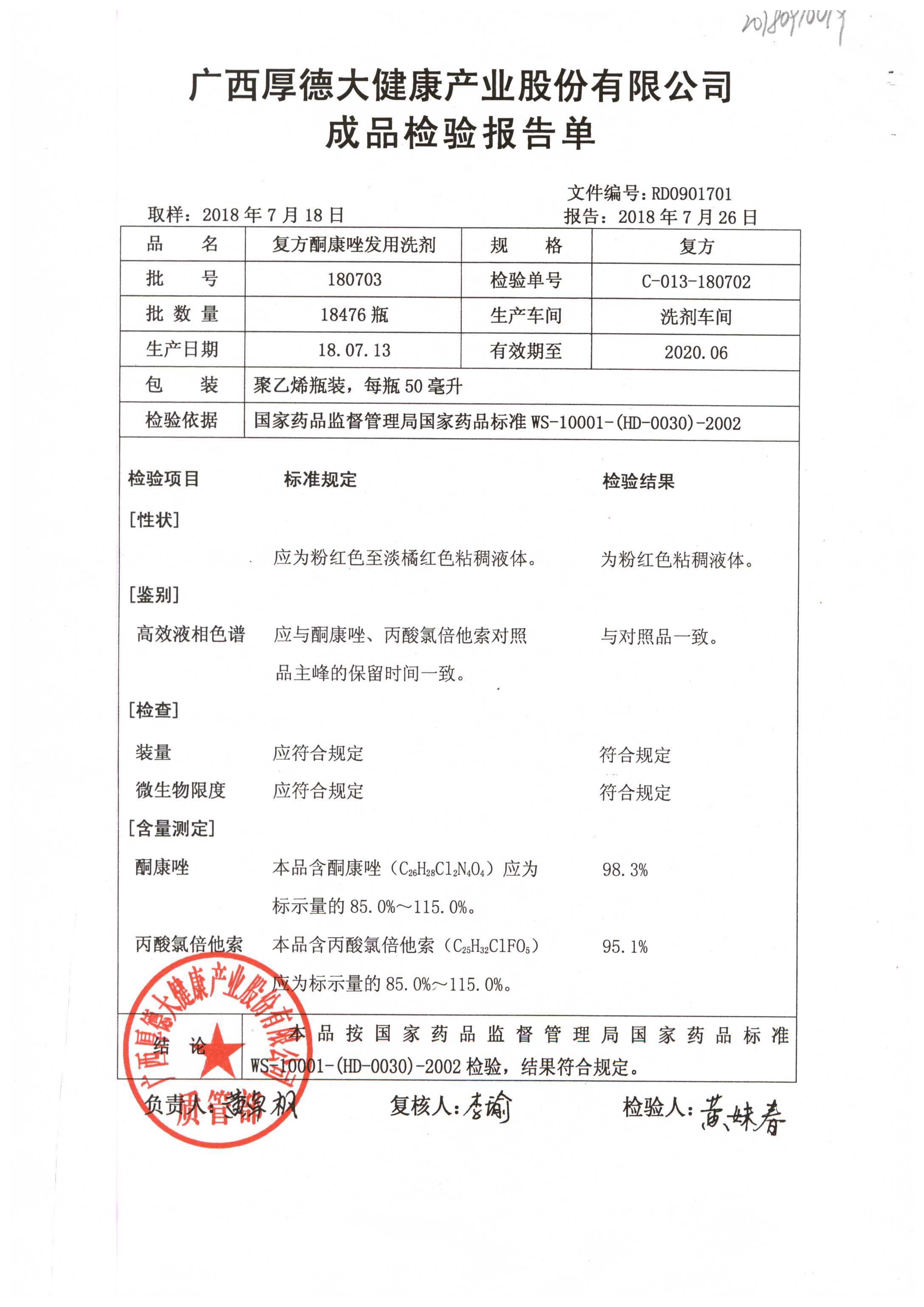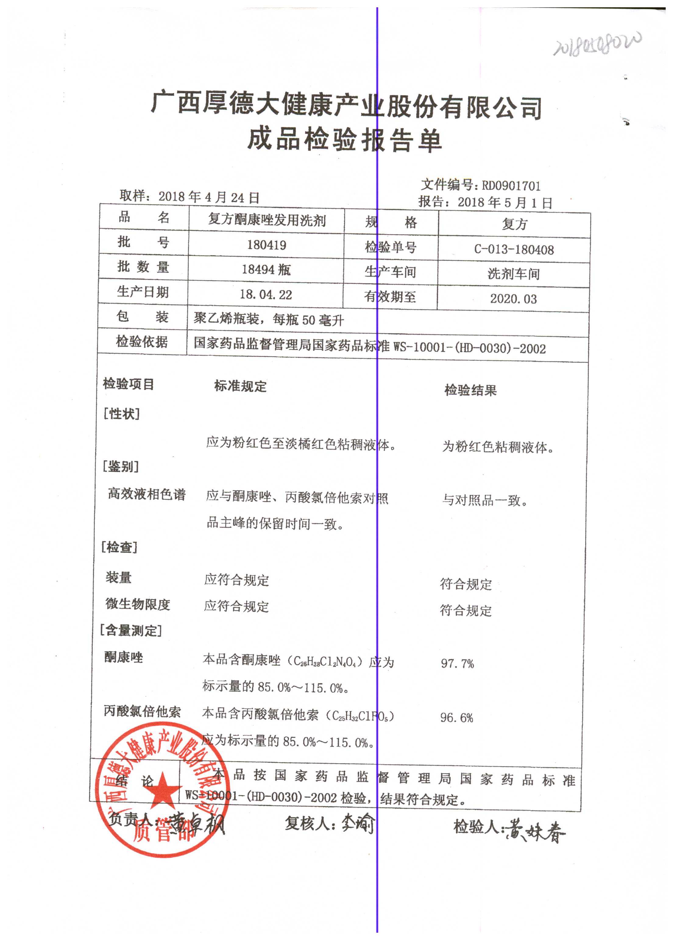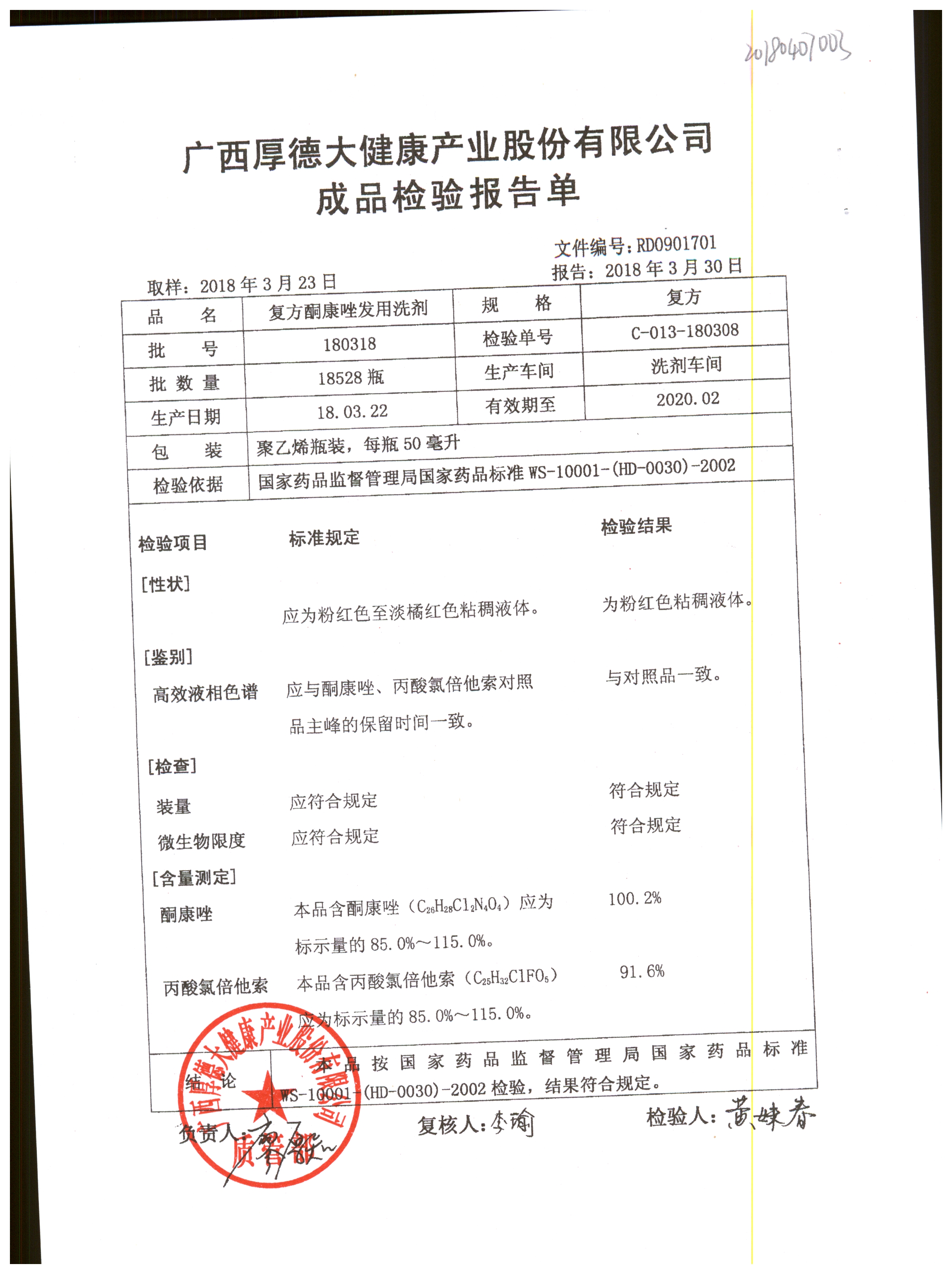 復(fù)方酮康唑發(fā)用洗劑 | 復(fù)方 | 180405 | 查看詳情 |