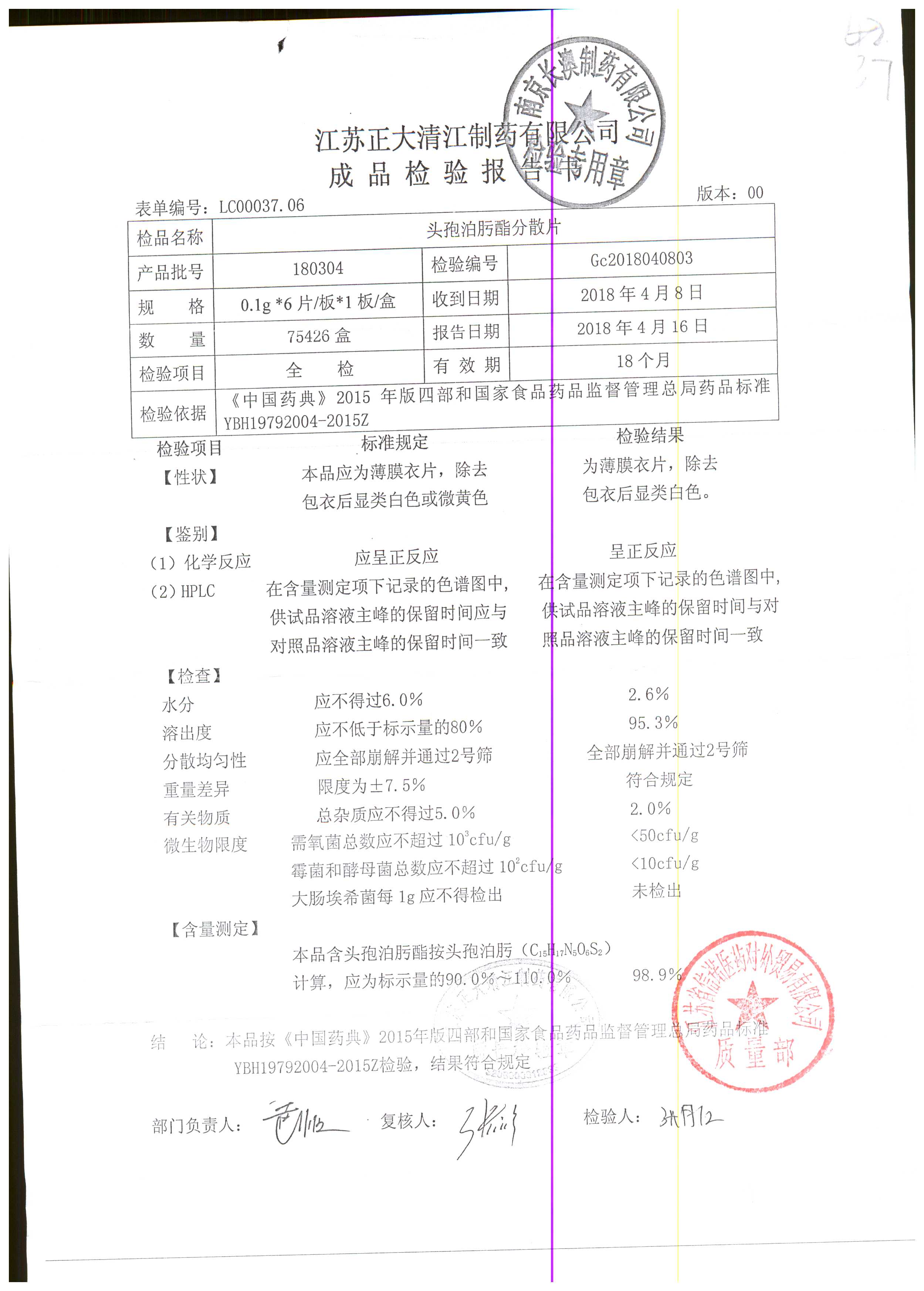 頭孢泊肟酯分散片 | 0.1g*6s | 190804 | 查看詳情 |