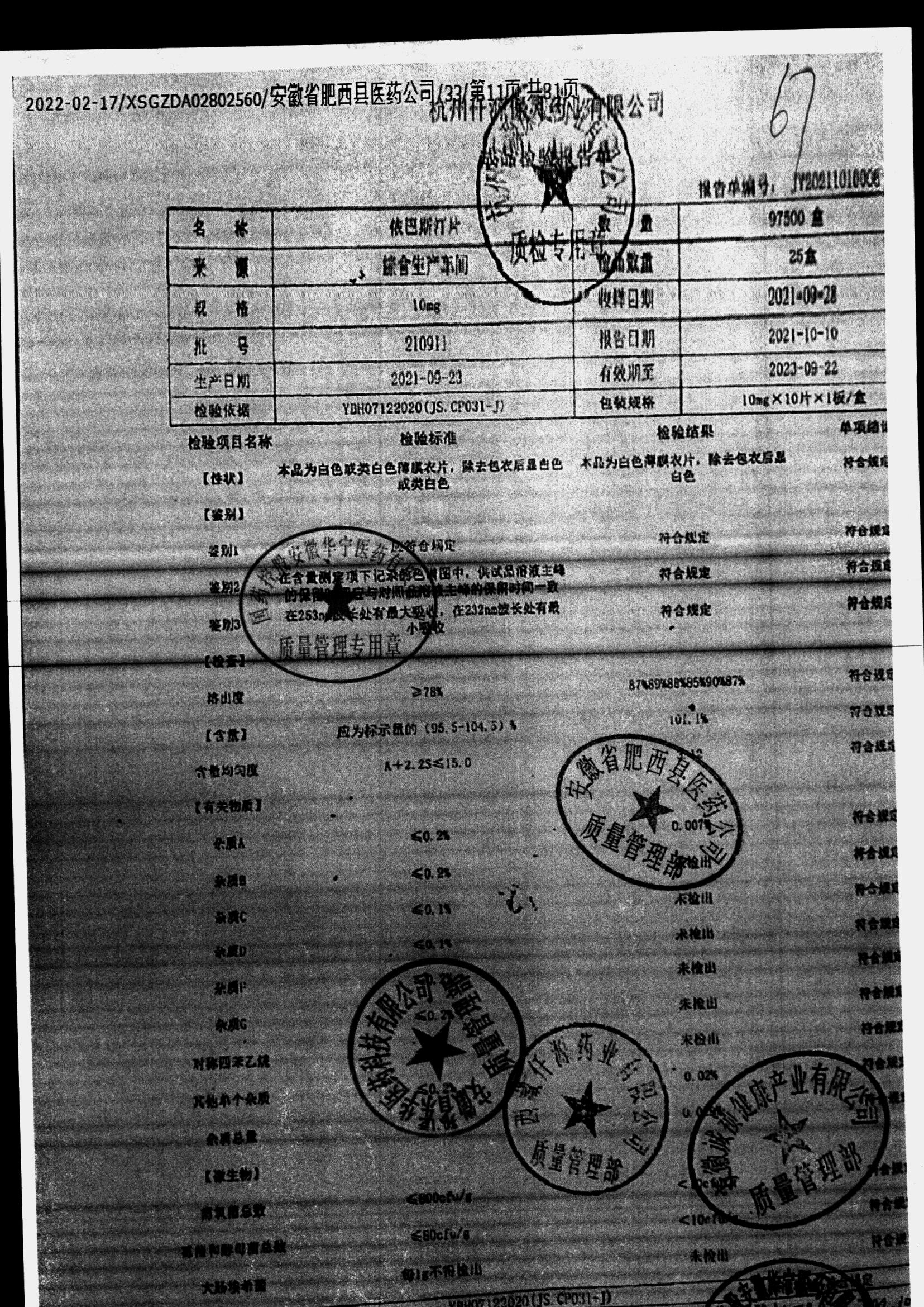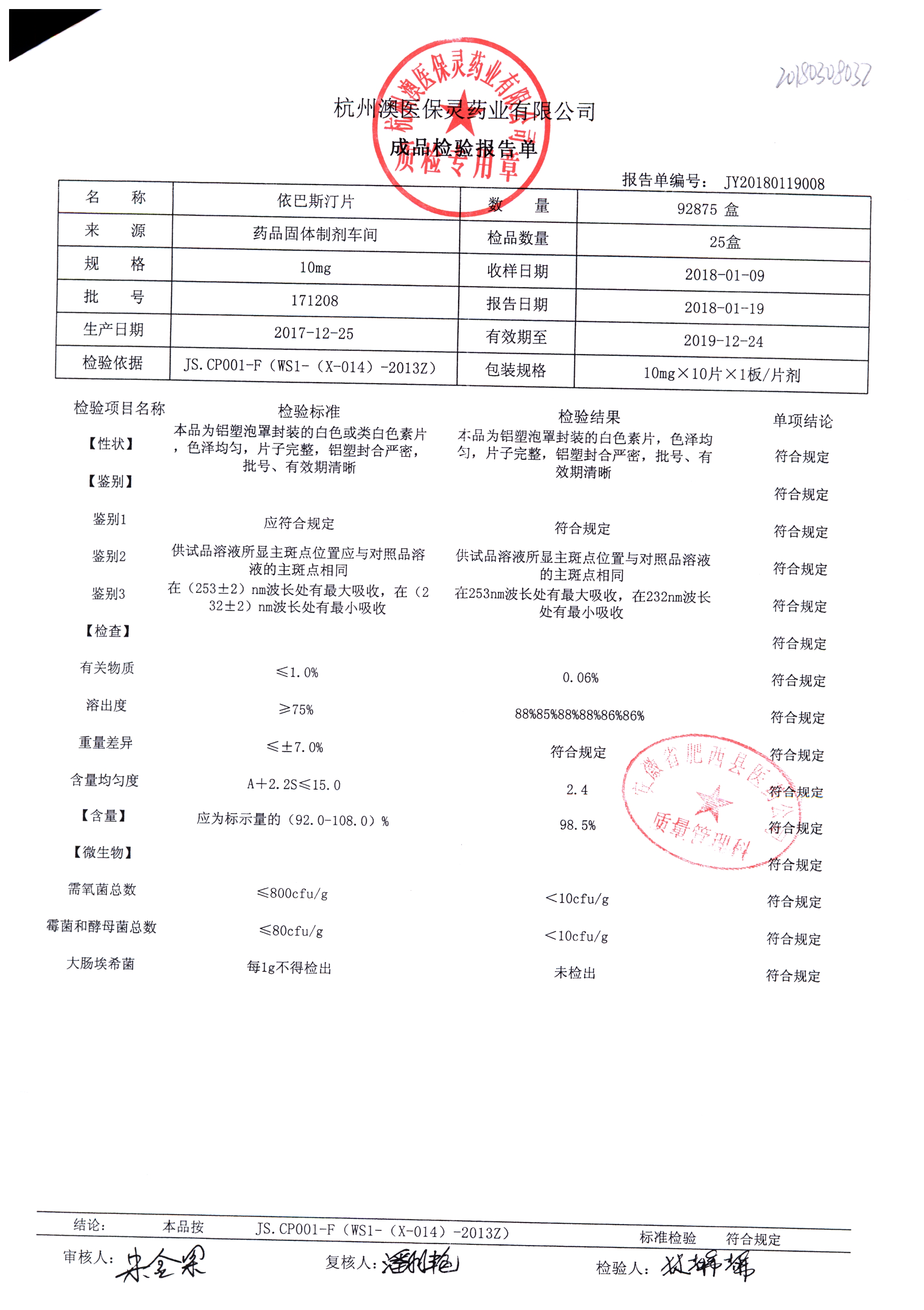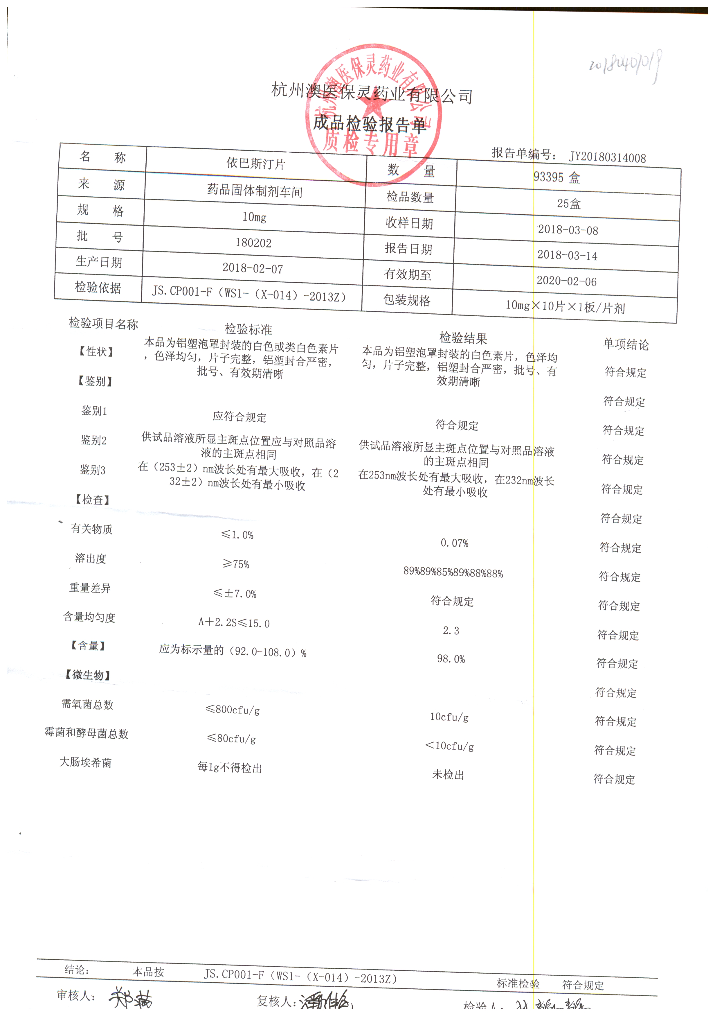 名稱(chēng) | 規(guī)格 | 批號(hào) | 藥檢報(bào)告 |