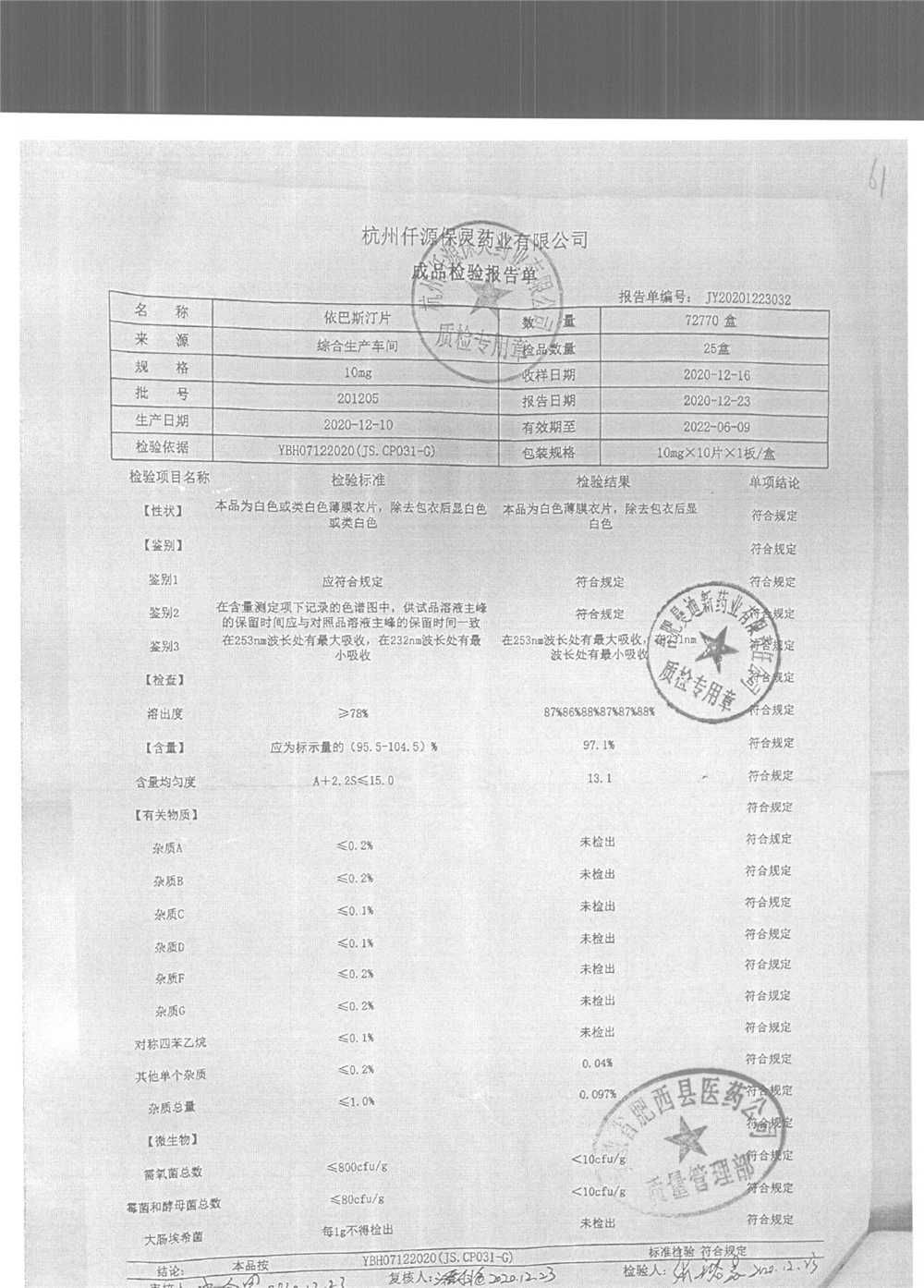 依巴斯汀片 | 10mg*10s | 201205 | 查看詳情 |