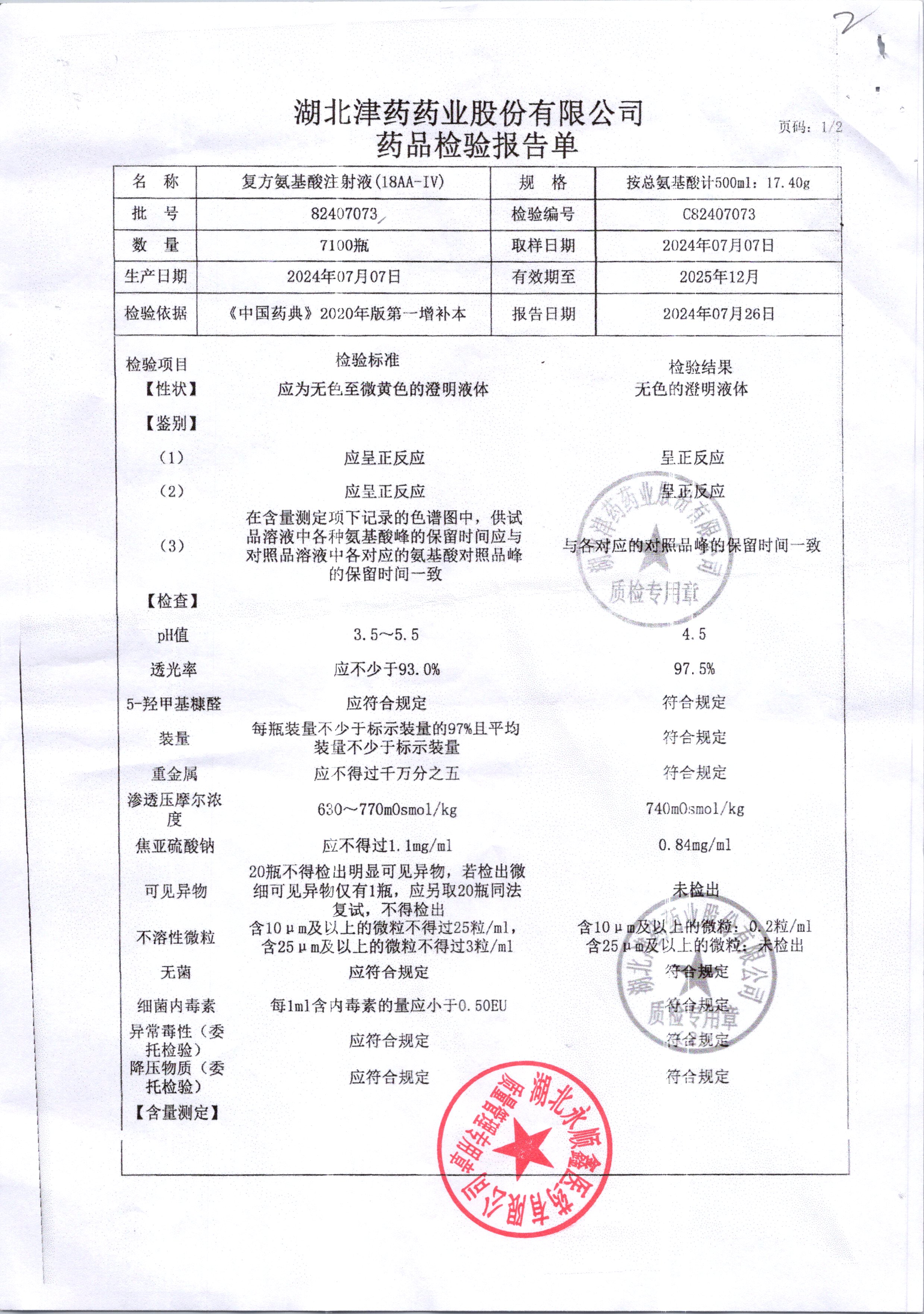 復(fù)方氨基酸注射液 500ml:17.40 82407072 查看詳情