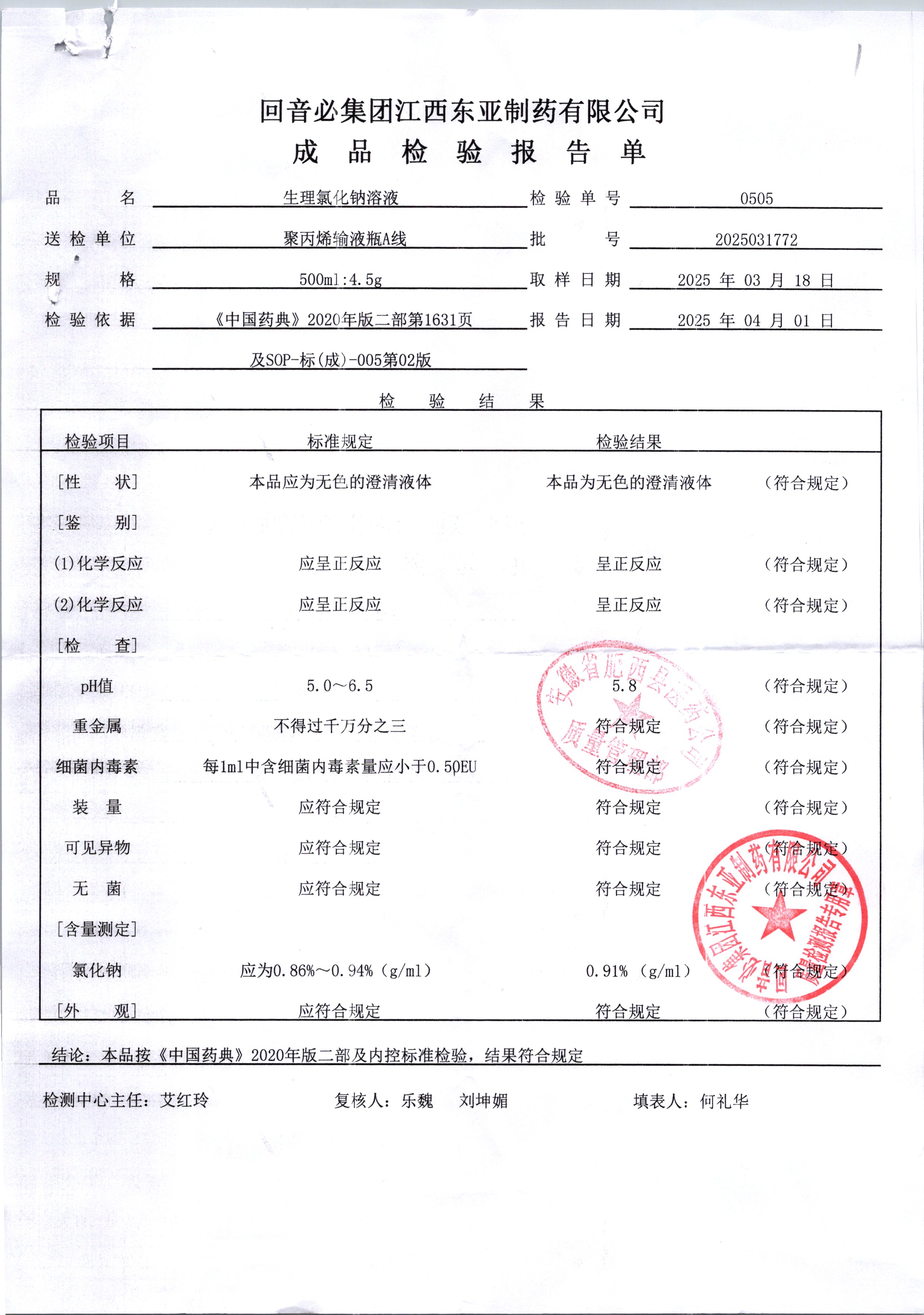 生理氯化鈉溶液 500ml:4.5g 2025031772 查看詳情