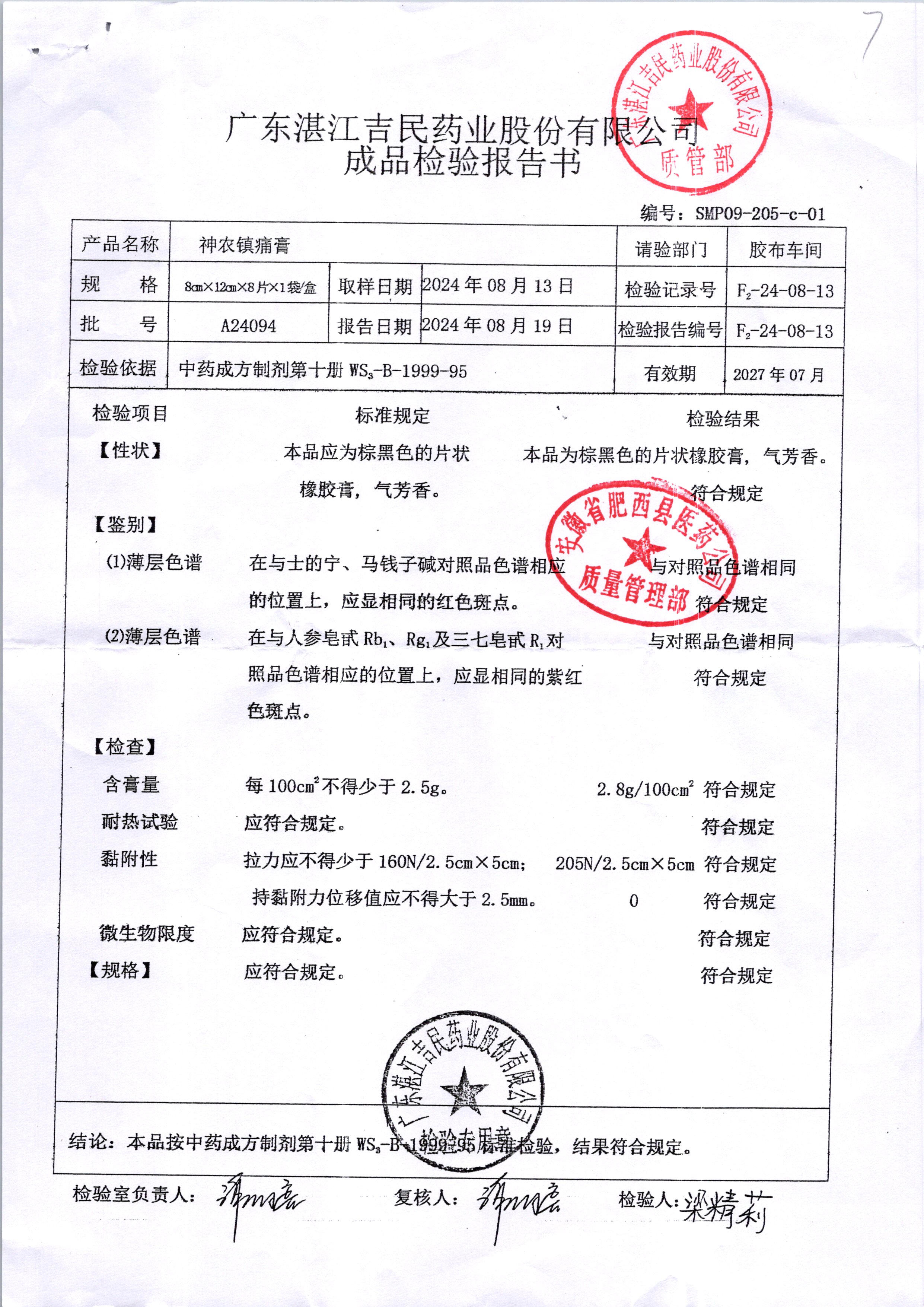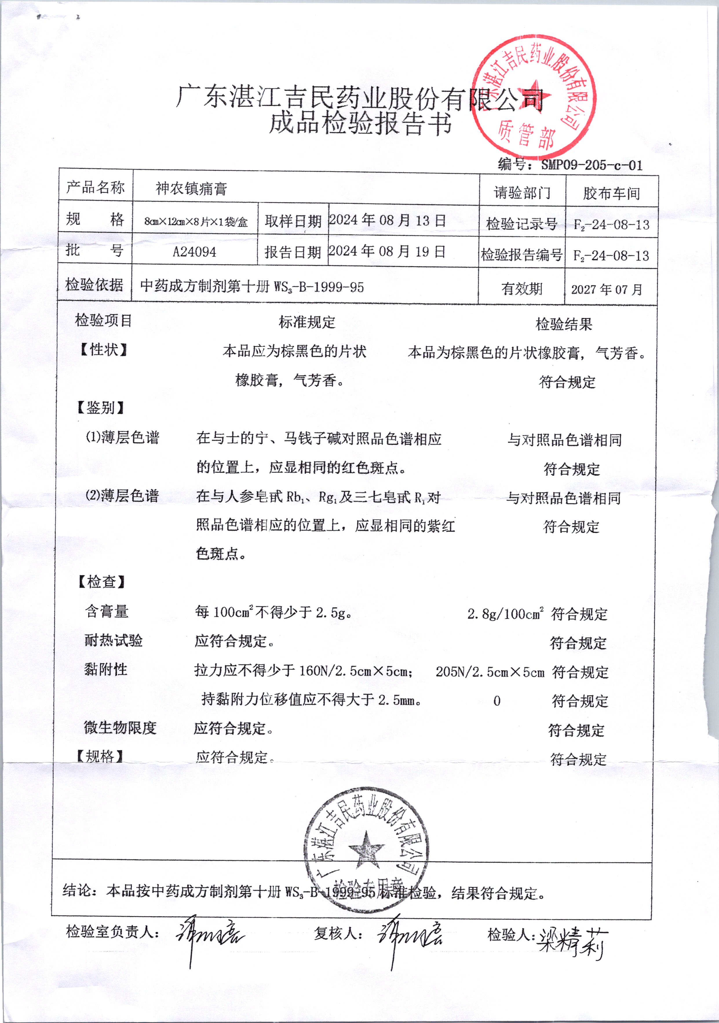 名稱 規(guī)格 批號 藥檢報(bào)告