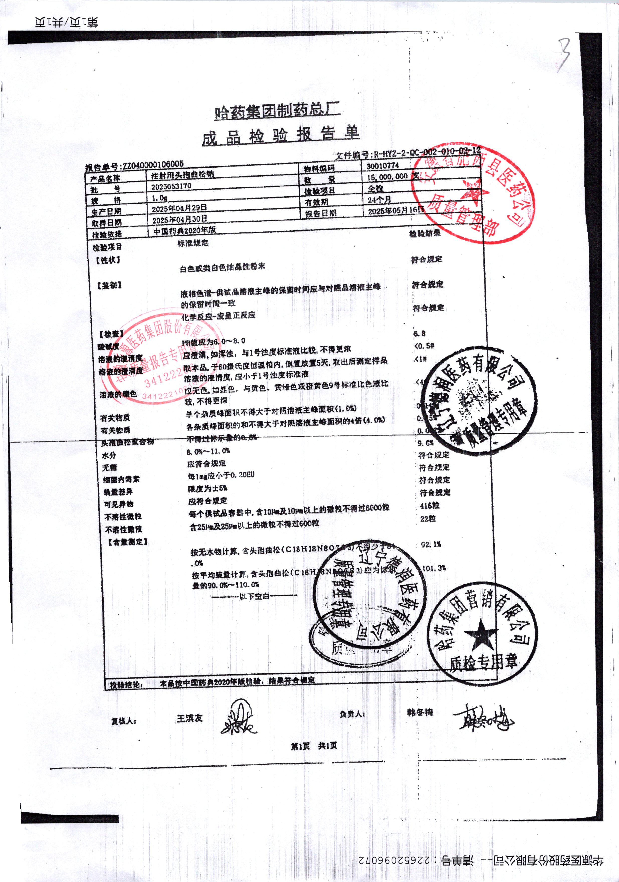 注射用頭孢曲松鈉 1.0g 2025053170 查看詳情