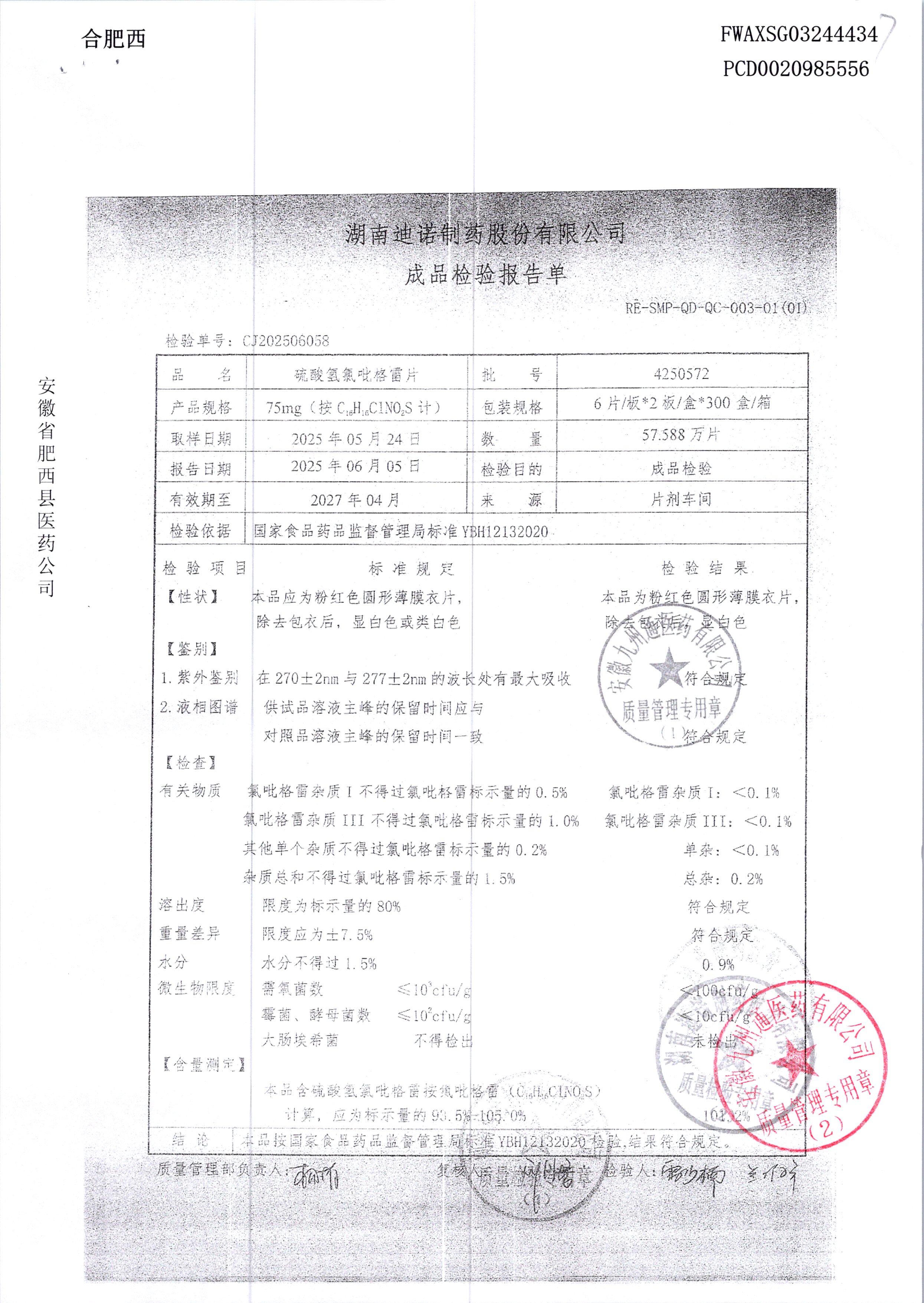名稱 規(guī)格 批號 藥檢報告