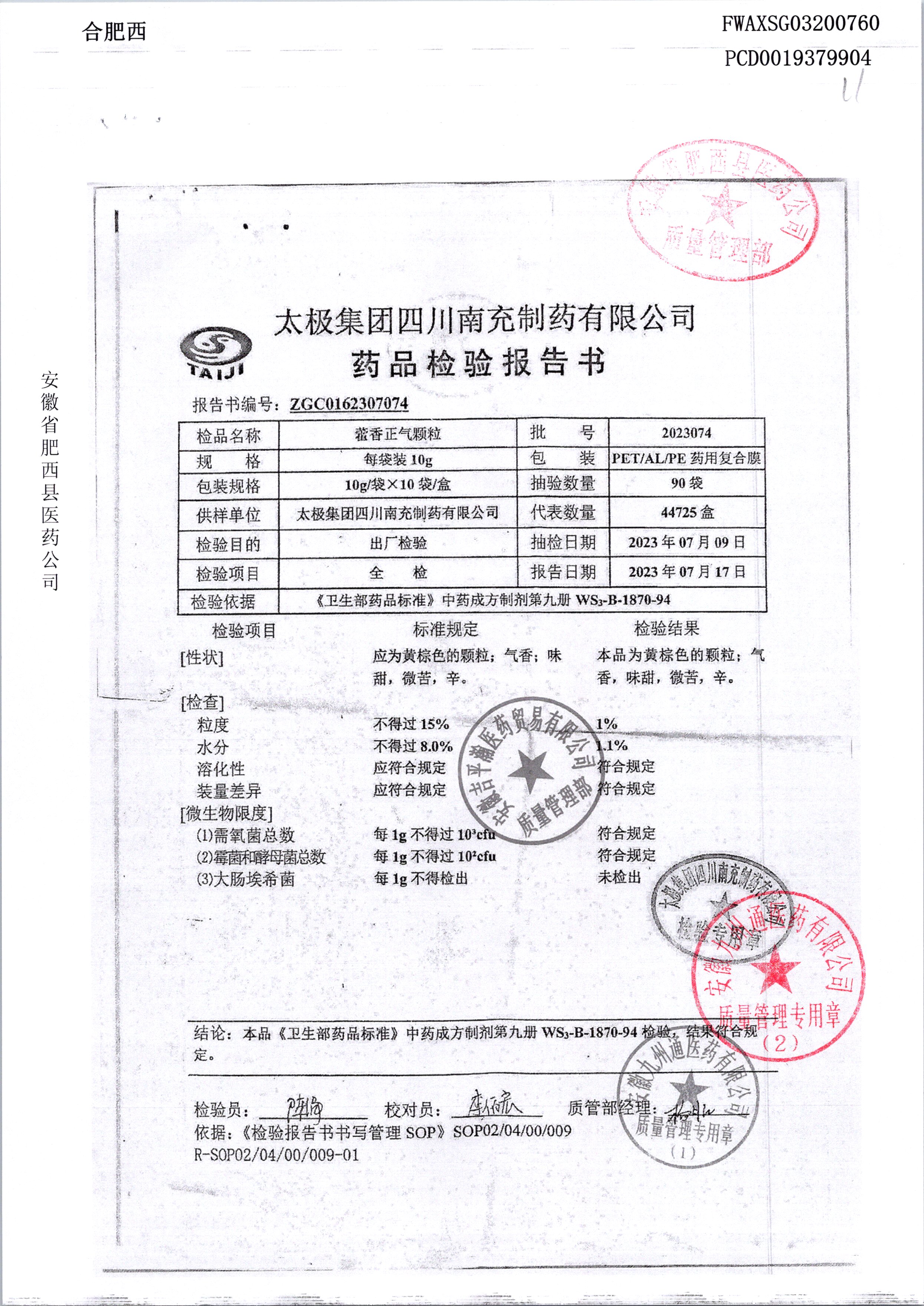 藿香正氣顆粒 10ml*10袋 2023074 查看詳情