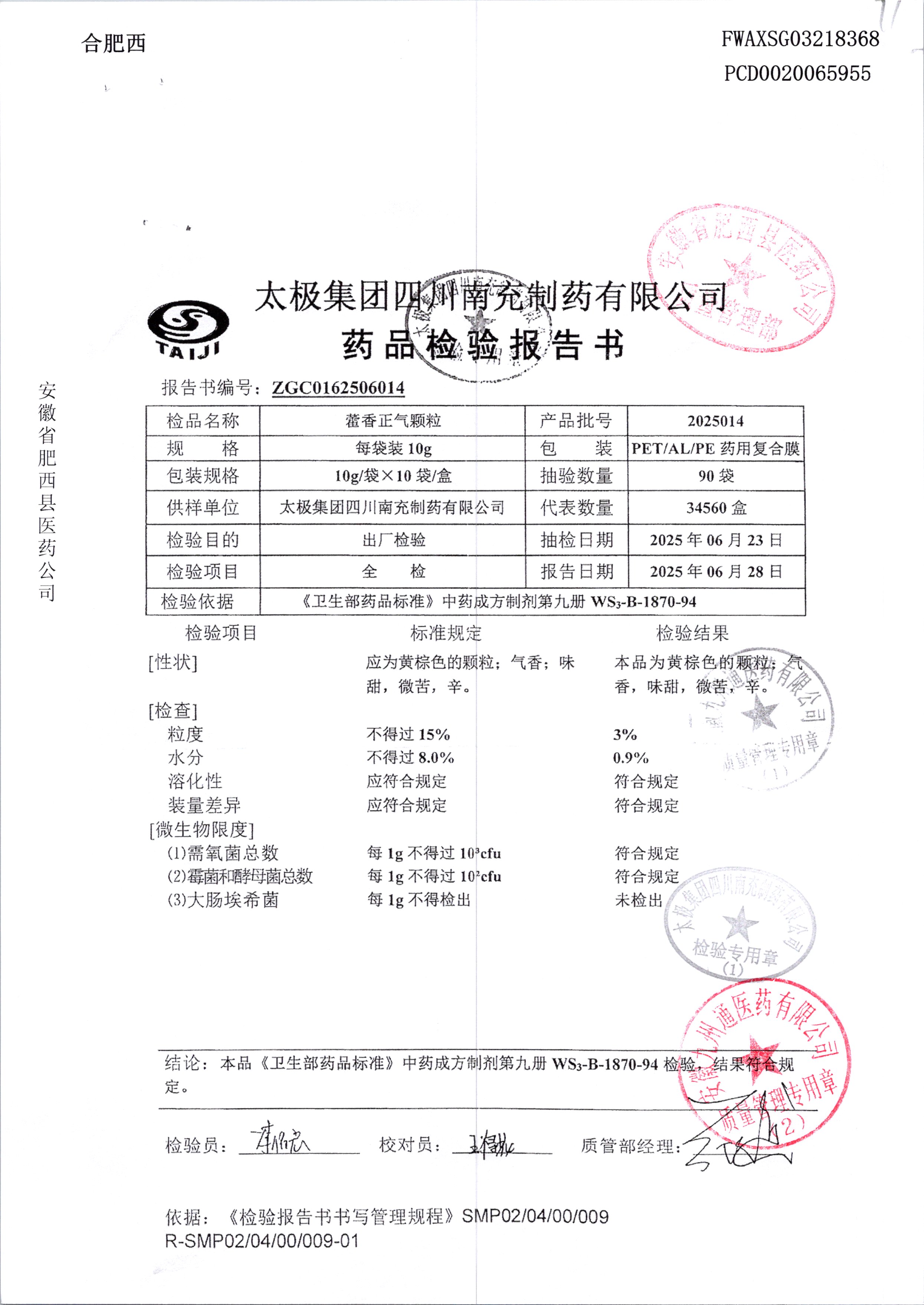 名稱 規(guī)格 批號(hào) 藥檢報(bào)告