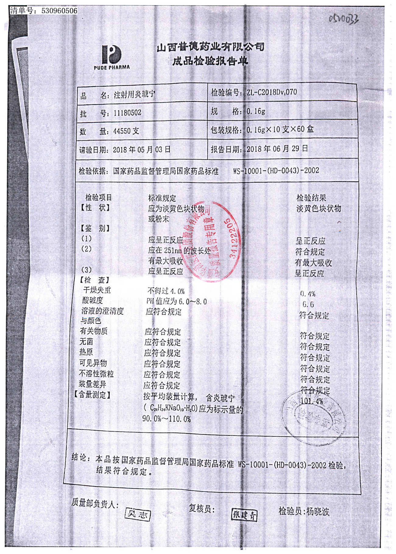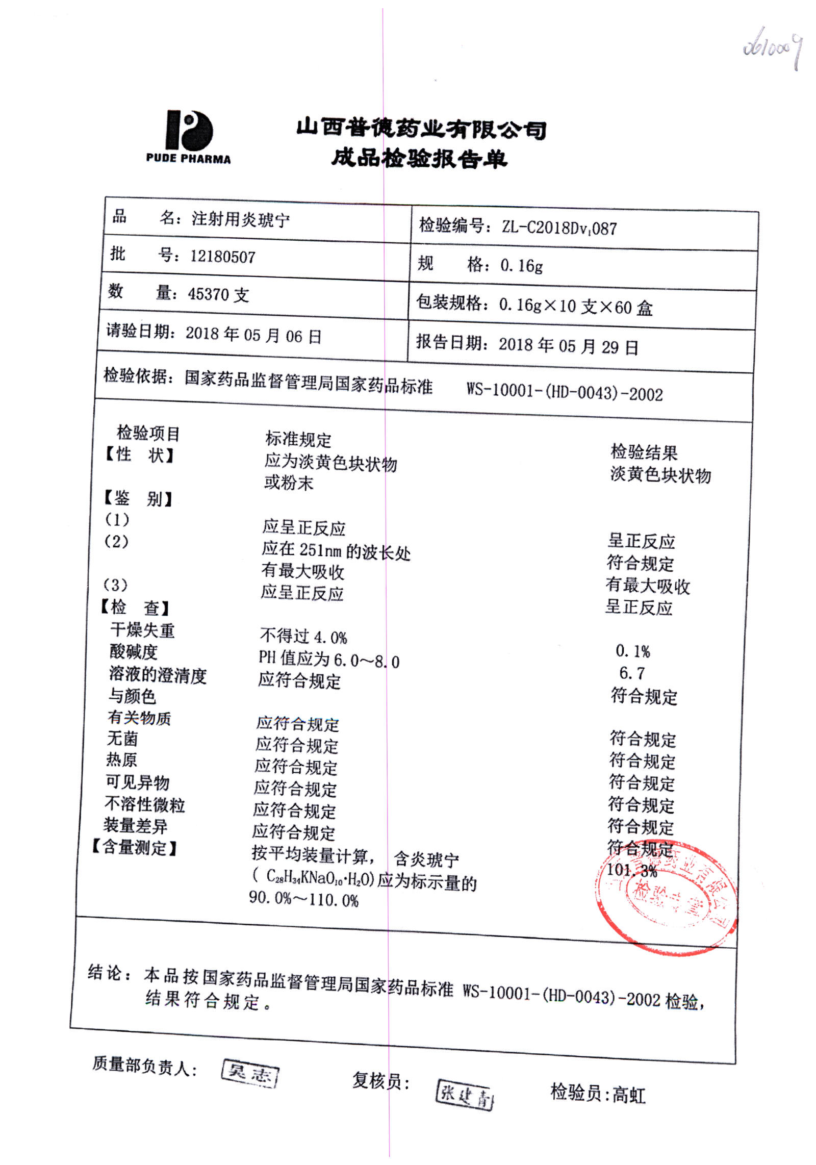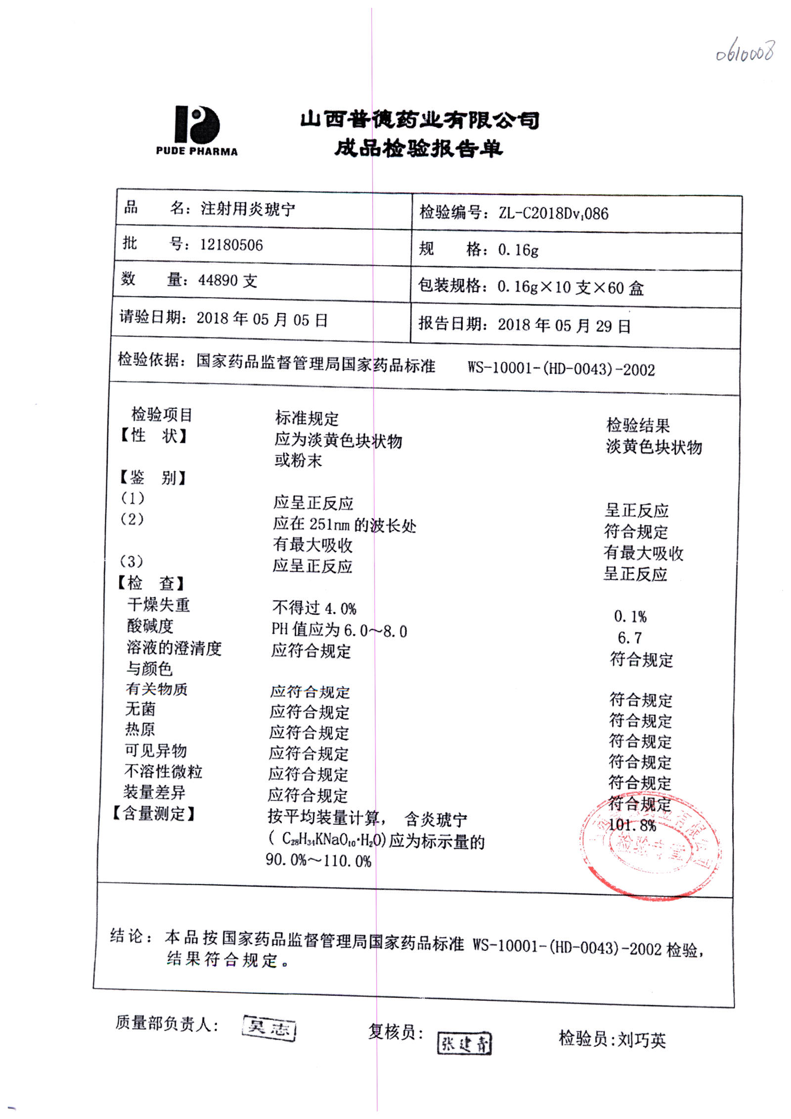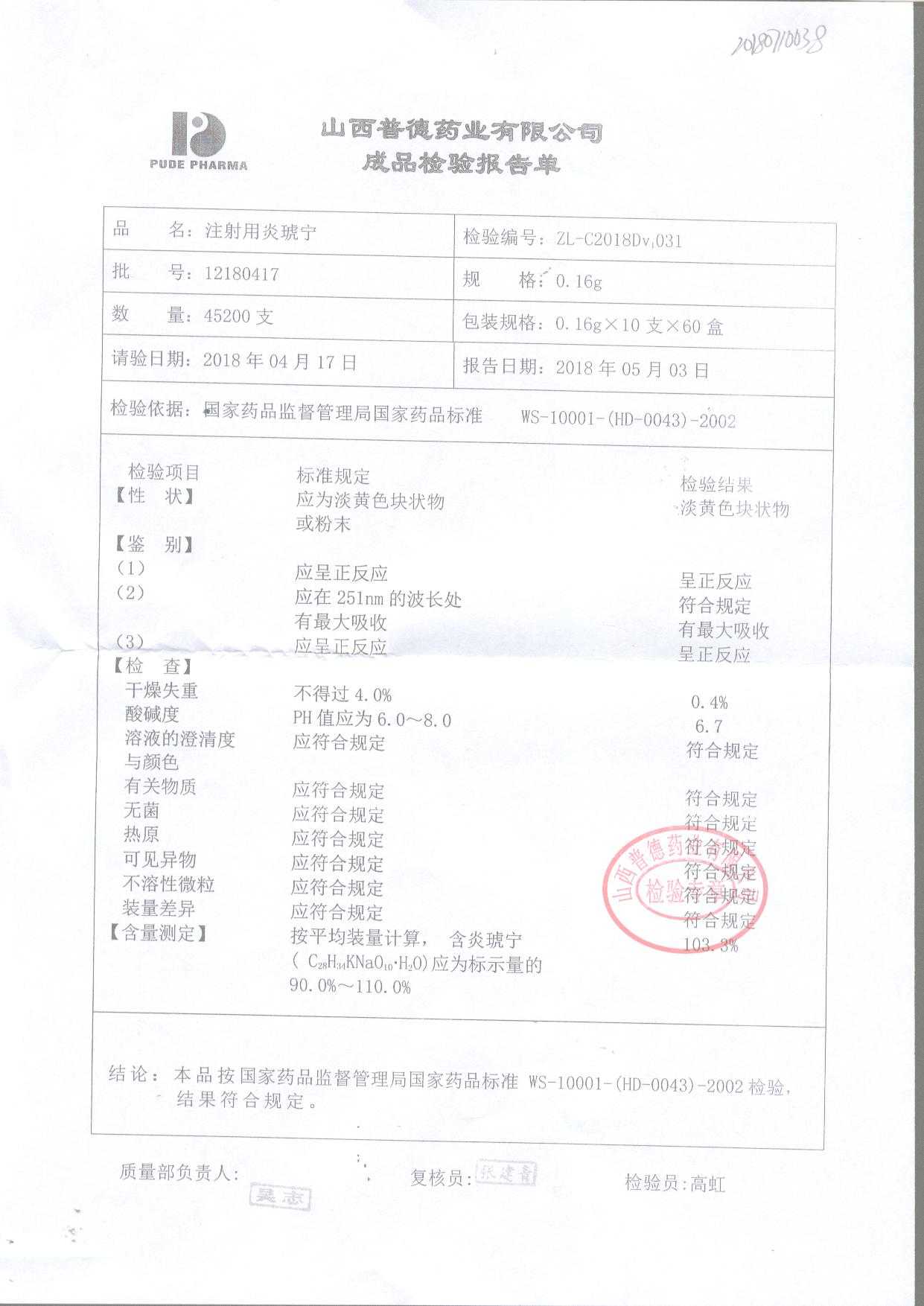 名稱 | 規(guī)格 | 批號 | 藥檢報告 |