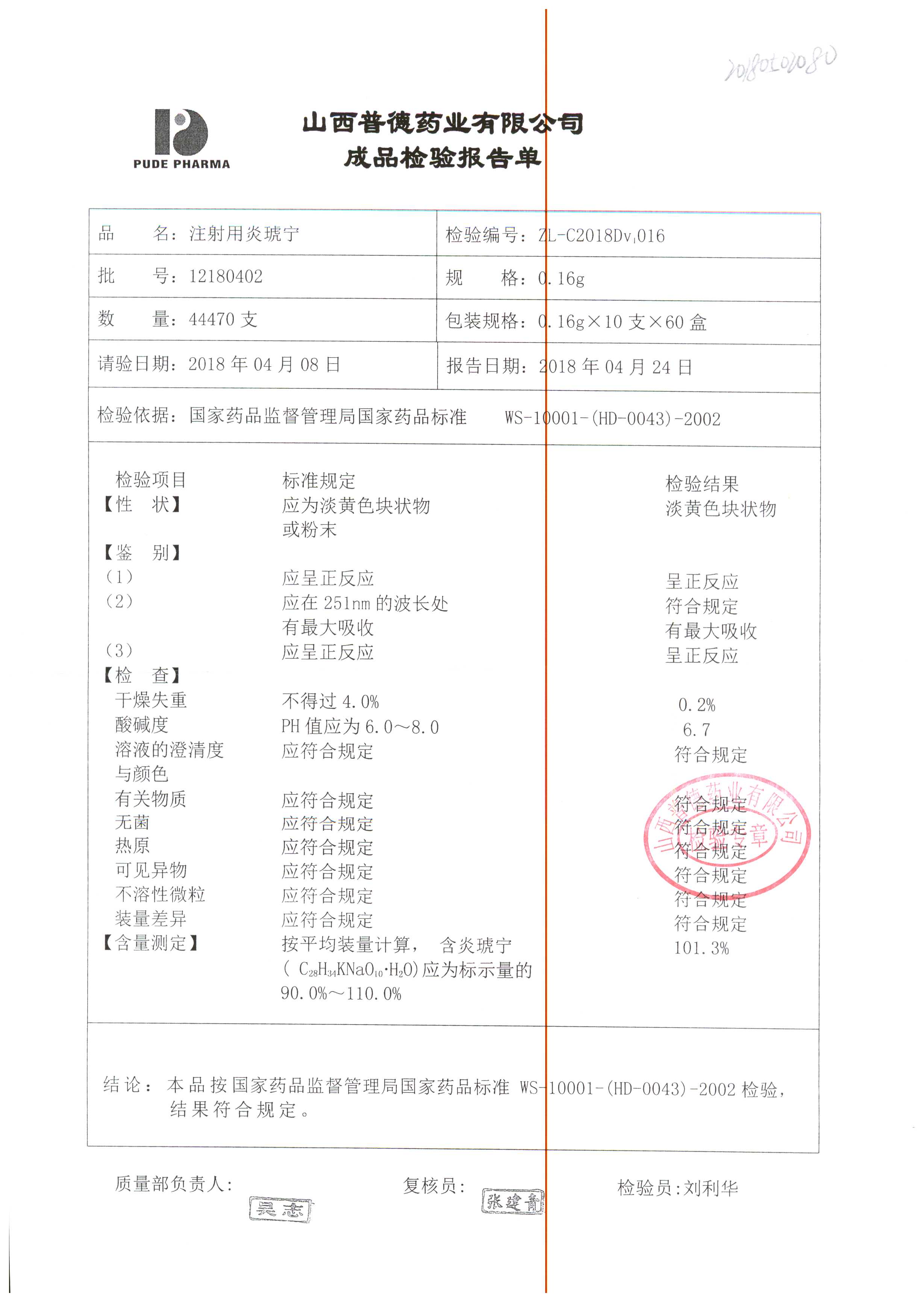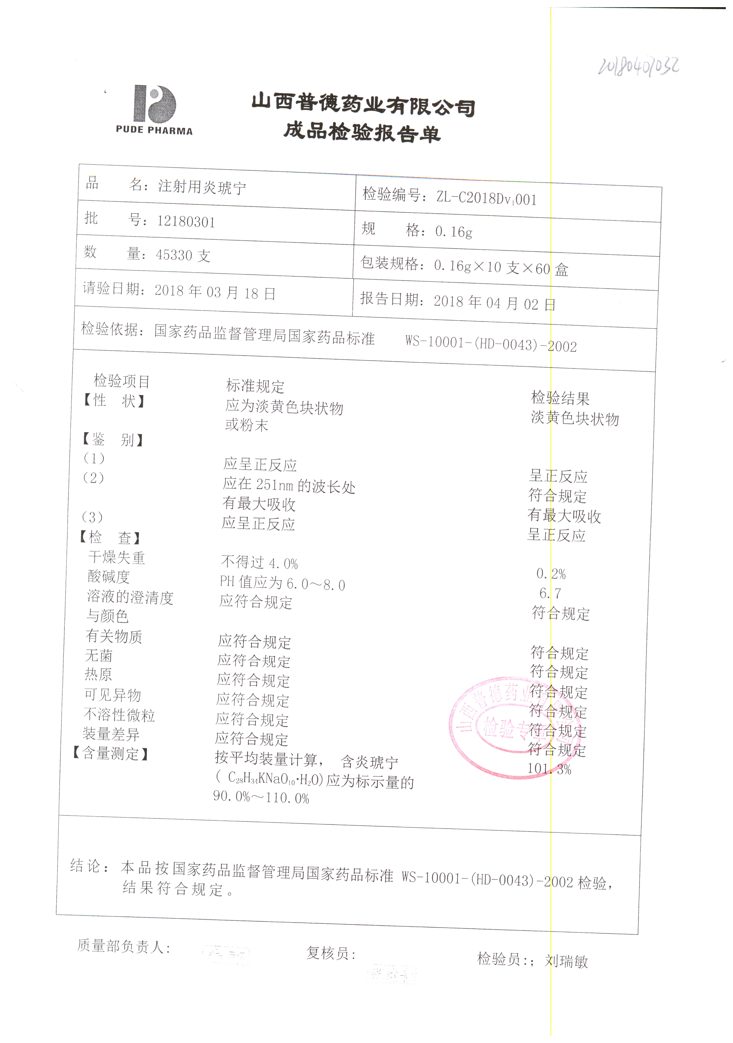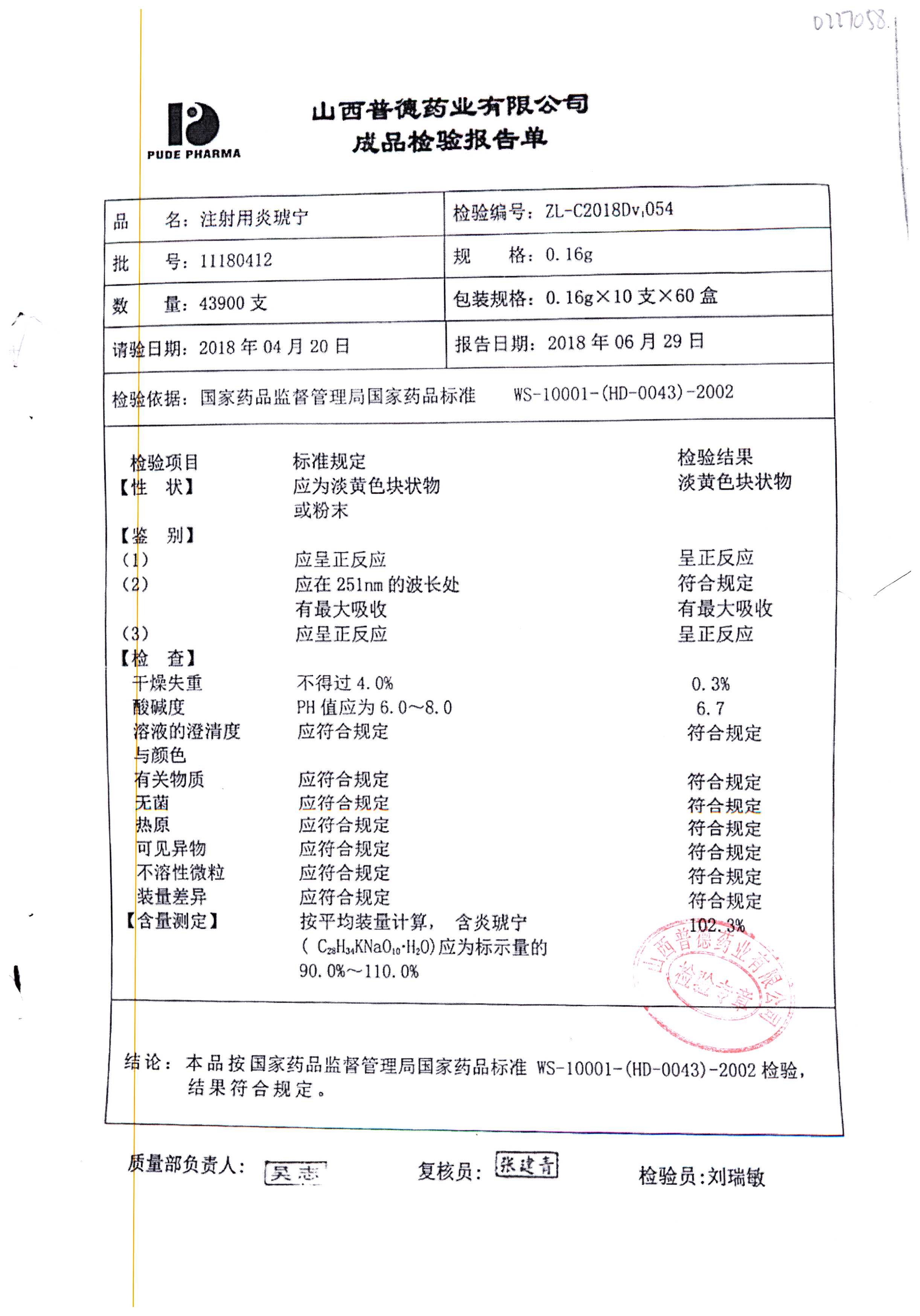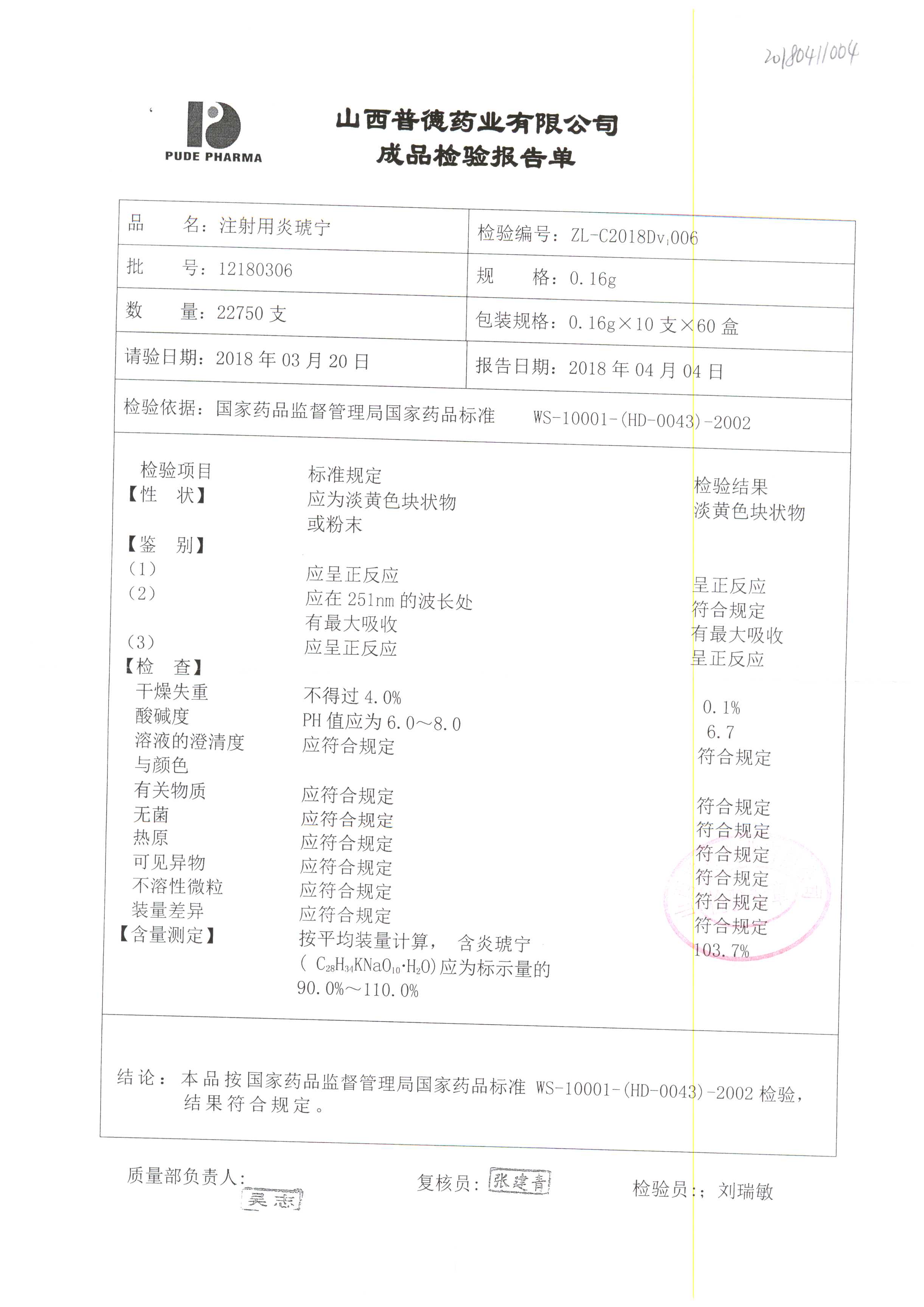 名稱 | 規(guī)格 | 批號 | 藥檢報告 |