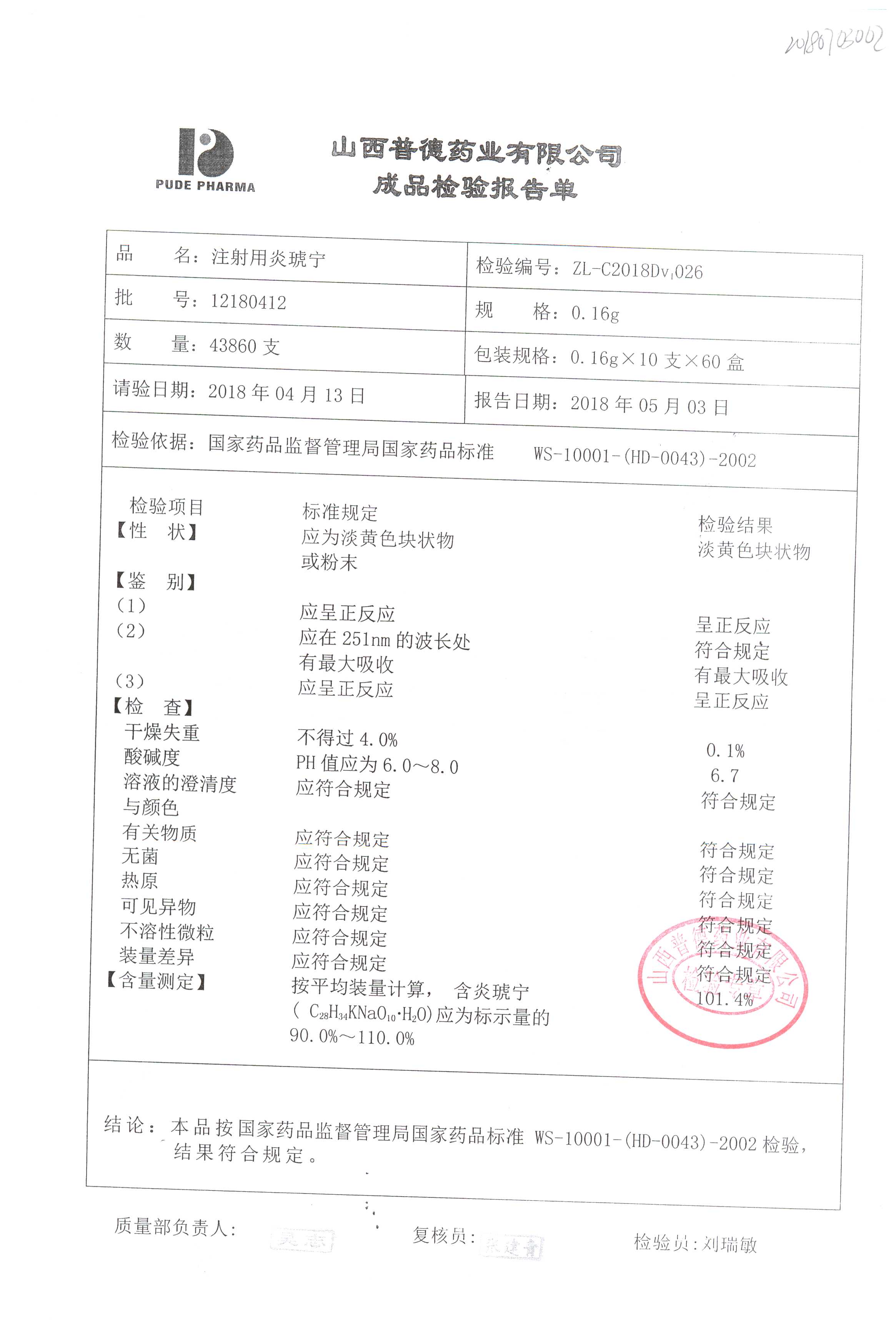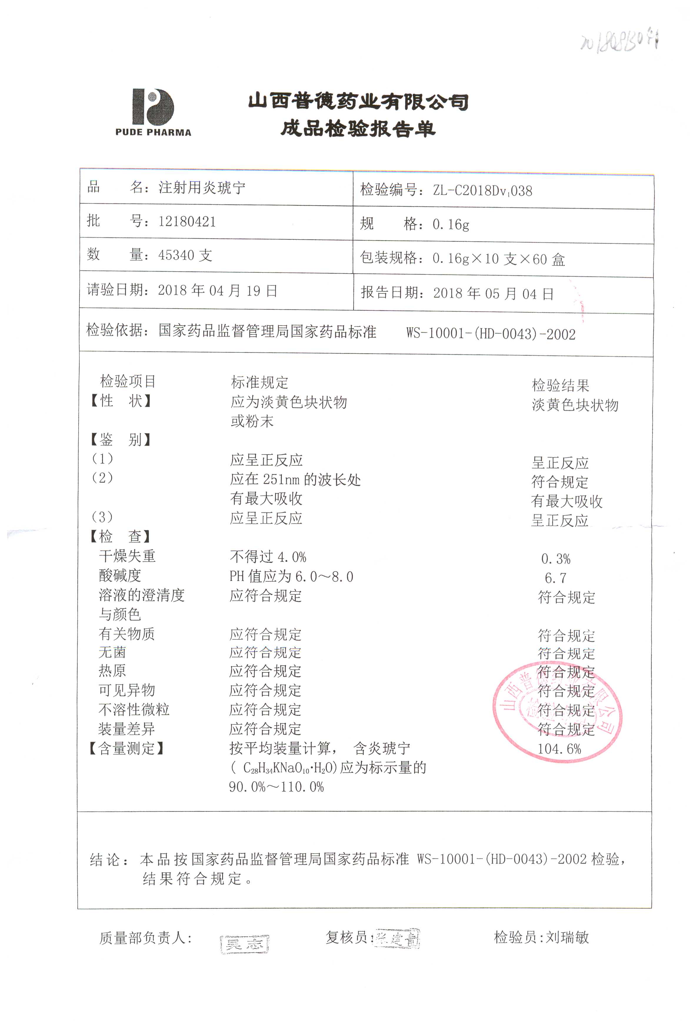 注射用炎琥寧 | 0.16g*10支 | 12180412 | 查看詳情 |