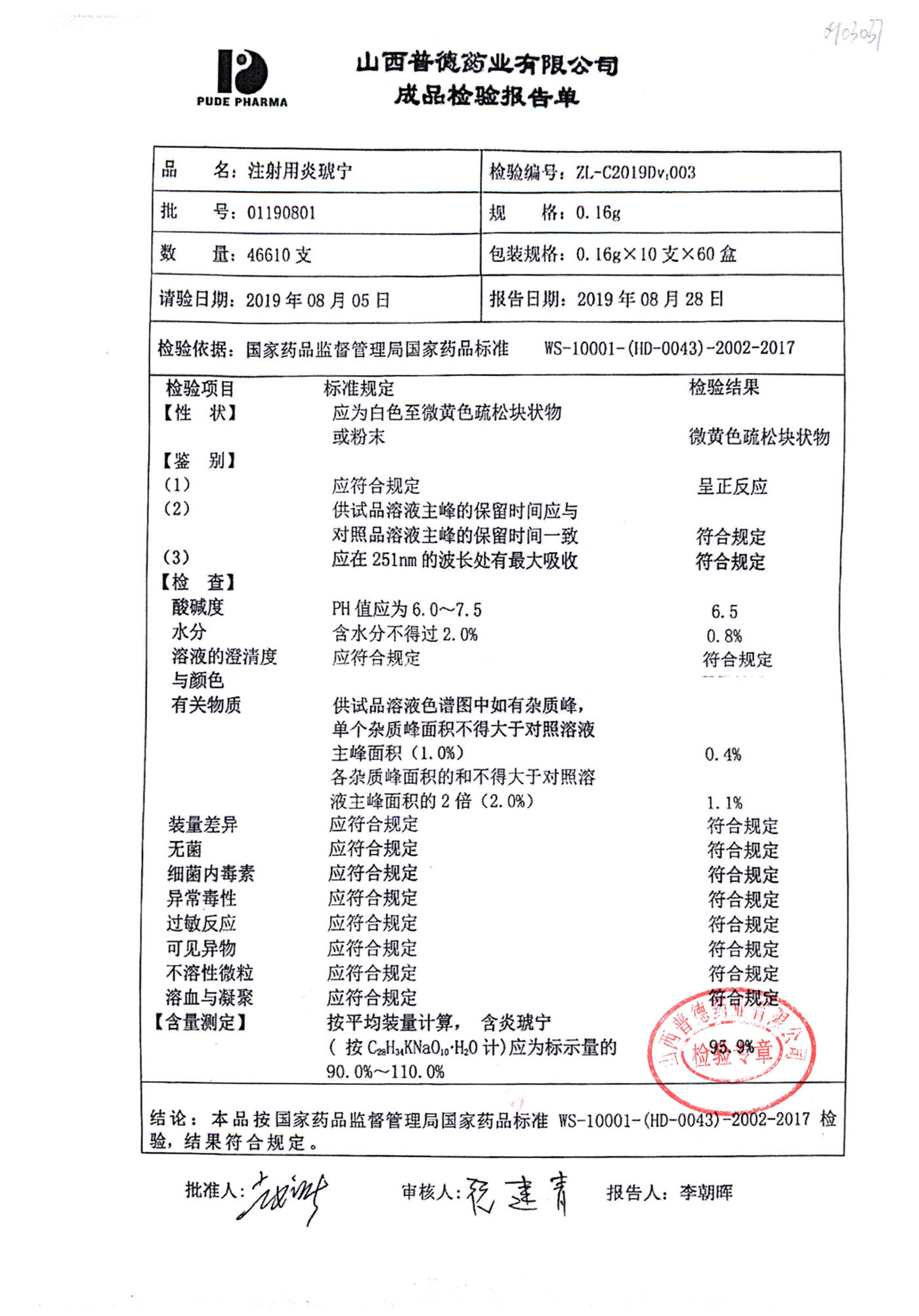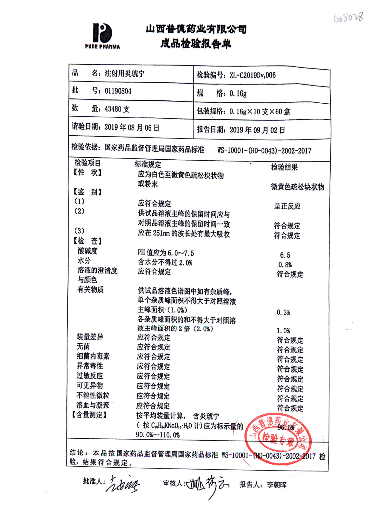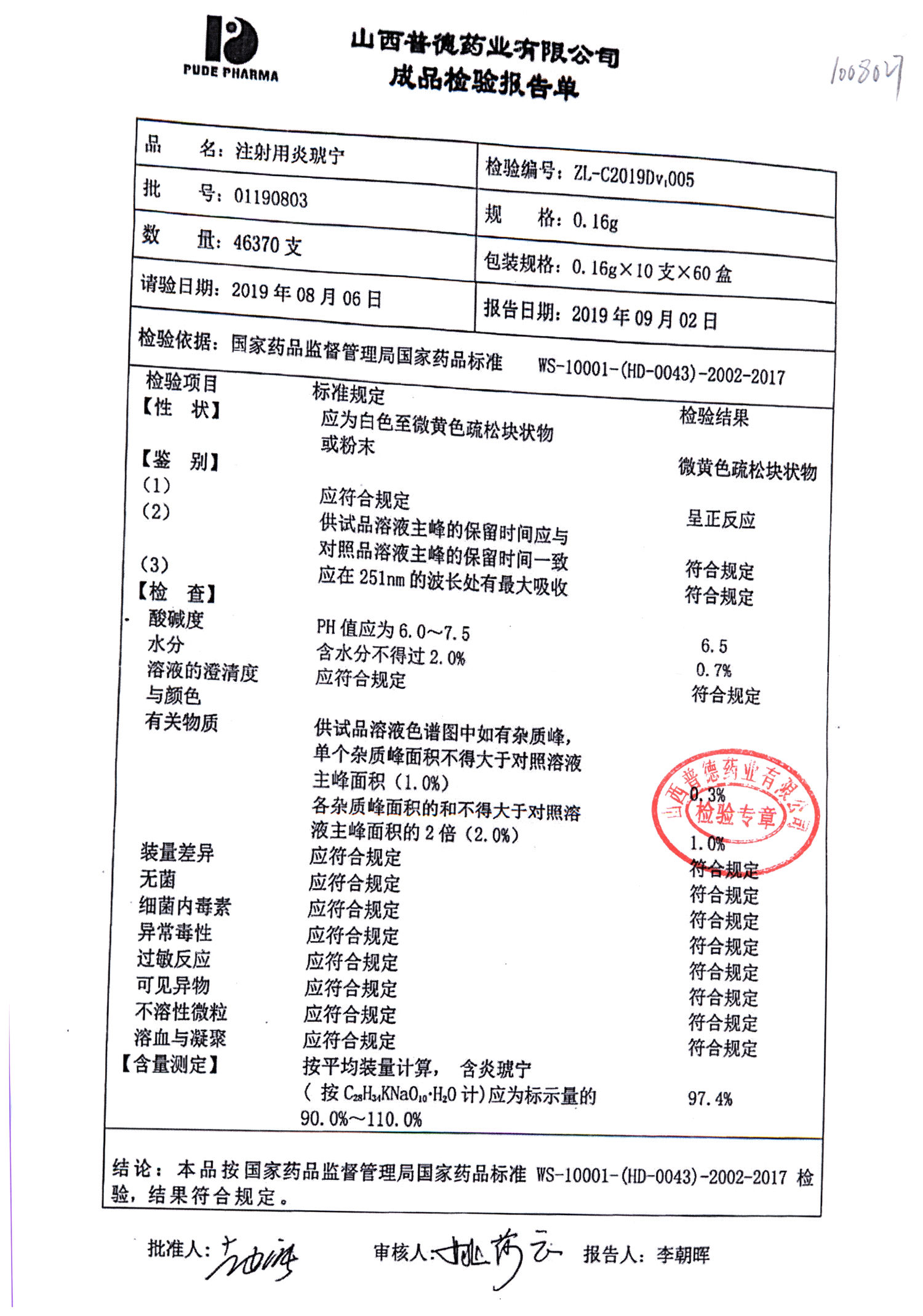 注射用炎琥寧 | 0.16g*10支 | 01191102 | 查看詳情 |