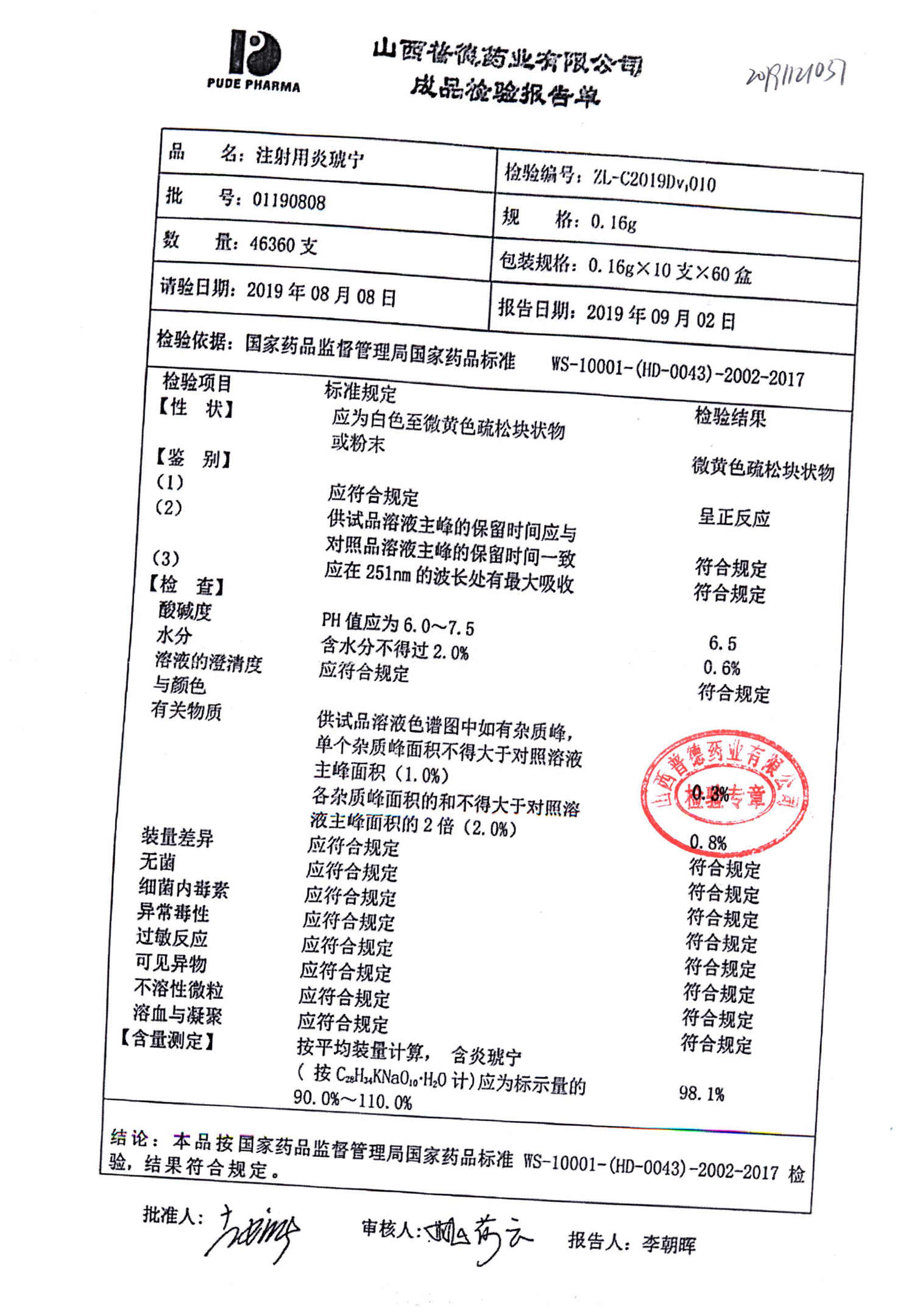 注射用炎琥寧 | 0.16g*10支 | 01190801 | 查看詳情 |