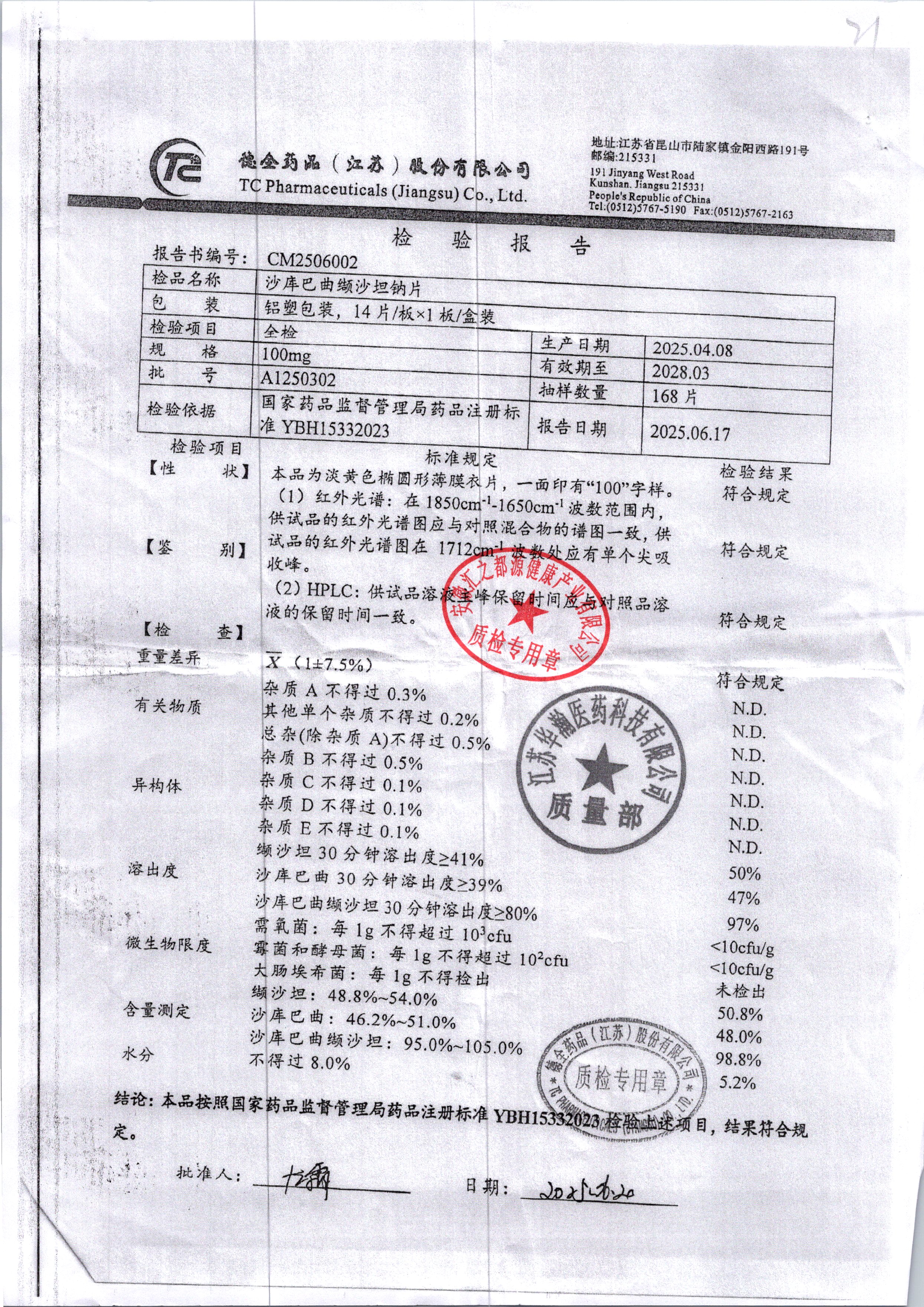 沙庫巴曲纈沙坦鈉片 100mg A1250302 查看詳情
