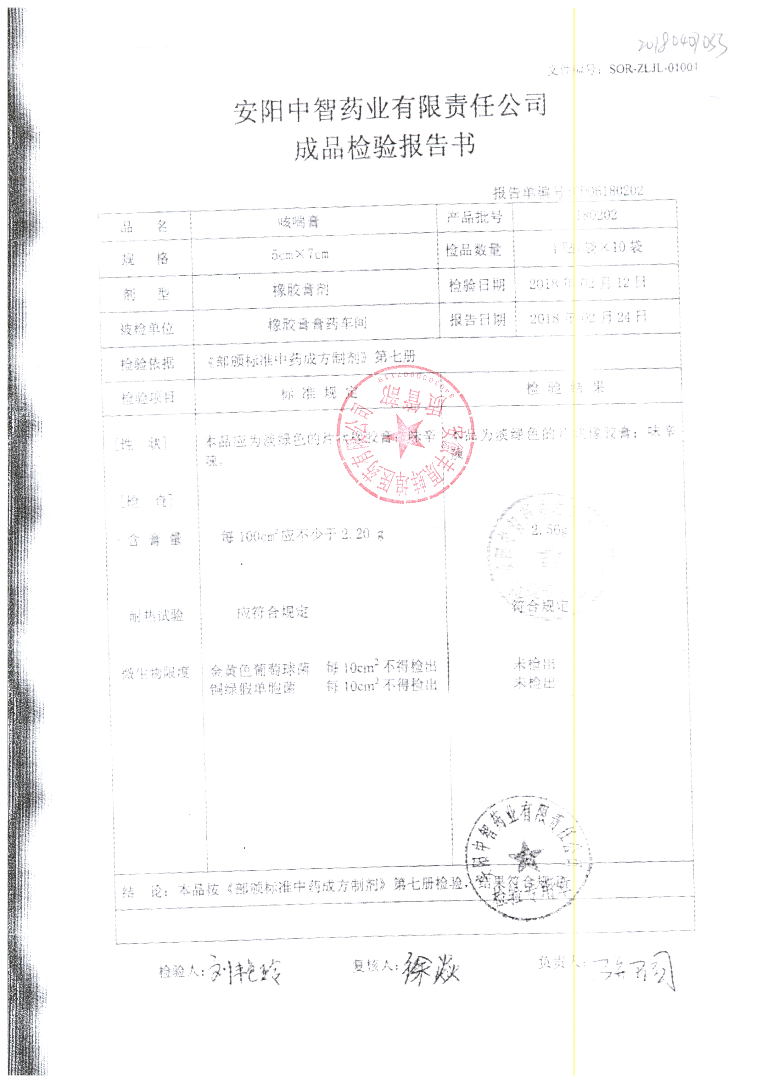 名稱 規(guī)格 批號 藥檢報告