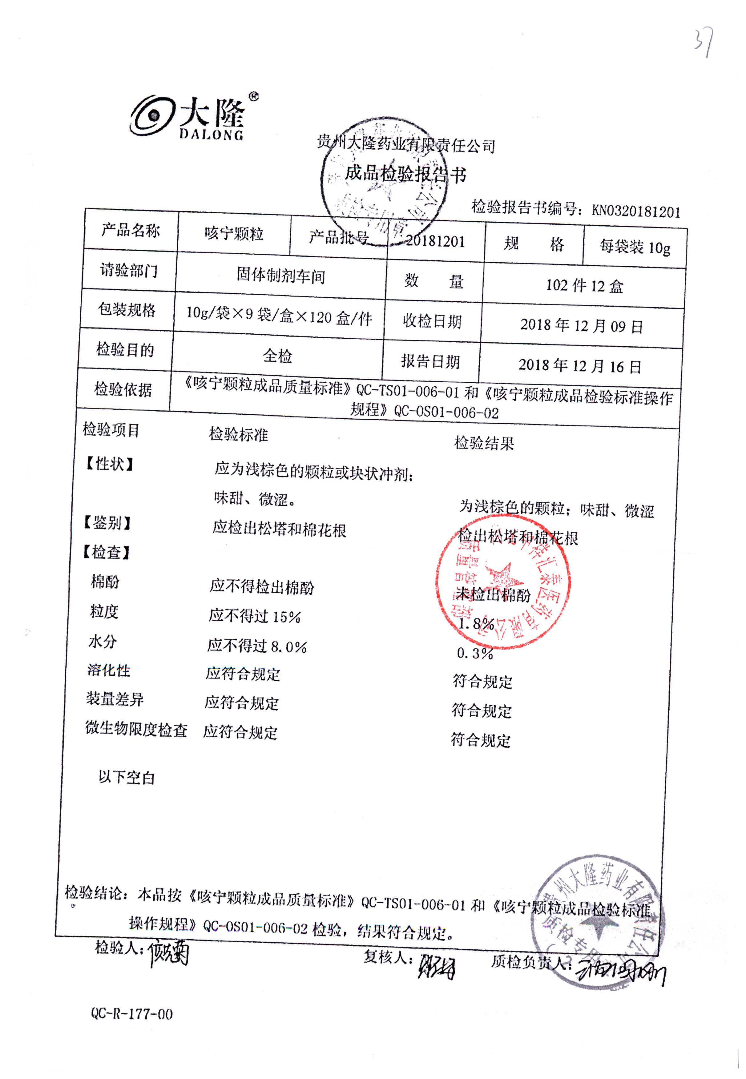 咳寧顆粒 | 10g*9袋 | 20181201 | 查看詳情 |