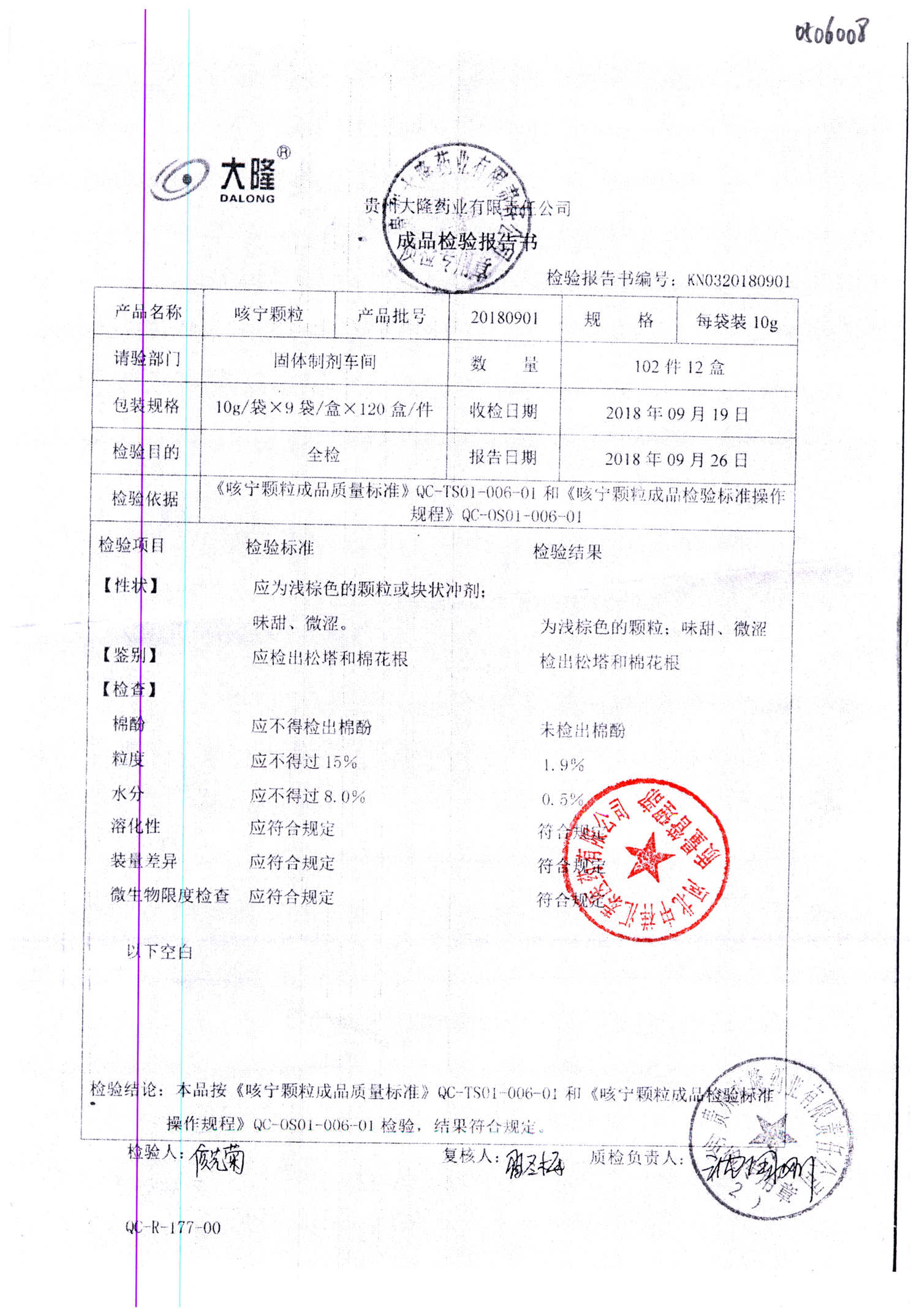 咳寧顆粒 | 10g*9袋 | 20180902 | 查看詳情 |