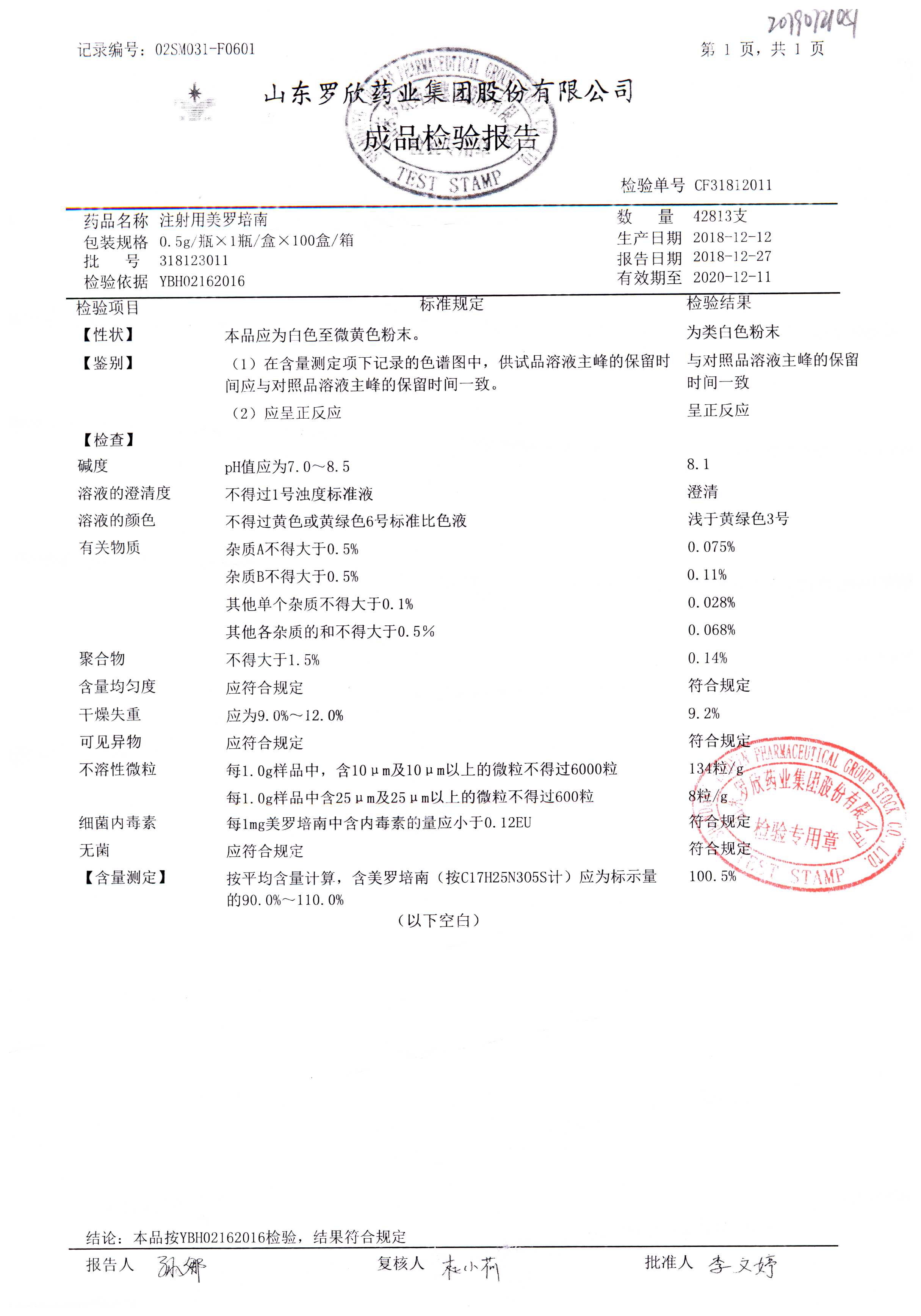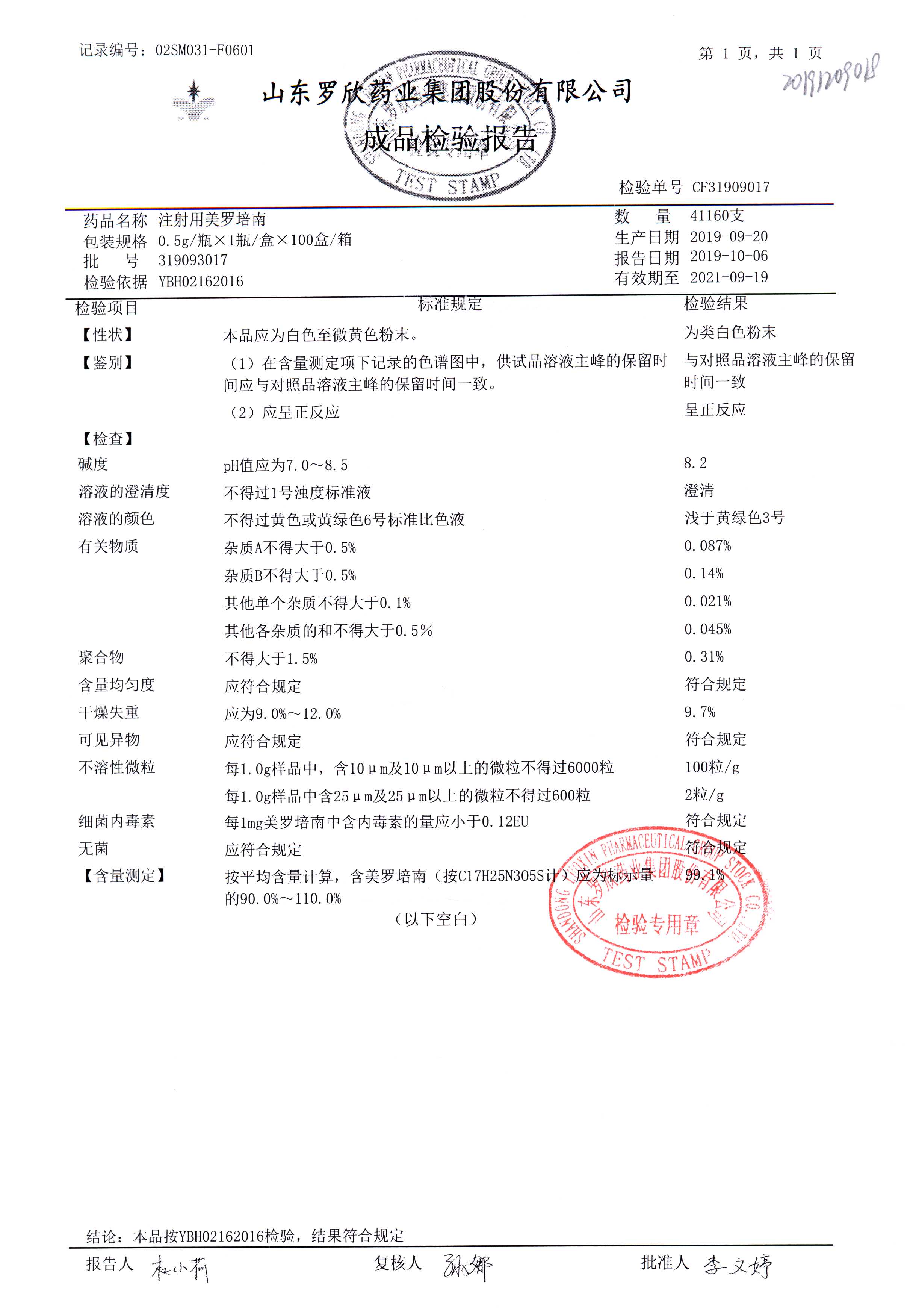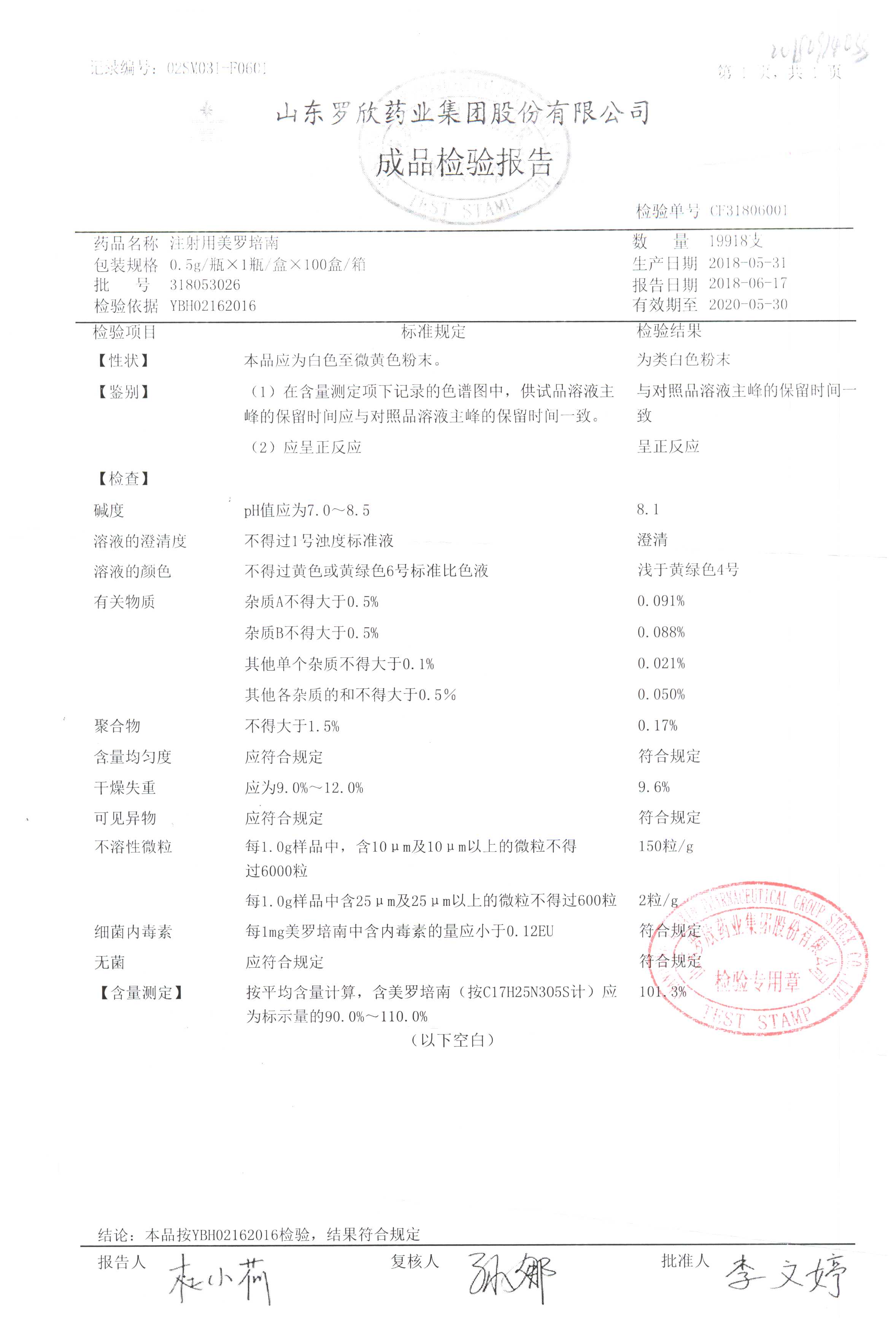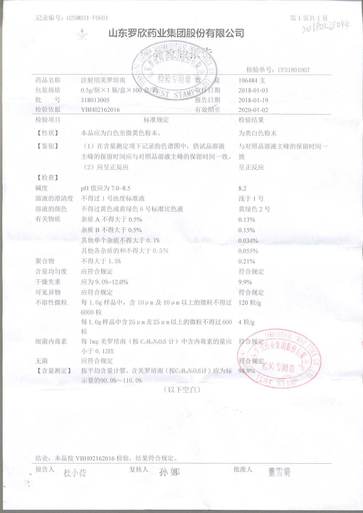 注射用美羅培南 | 0.5g | 318123011 | 查看詳情 |