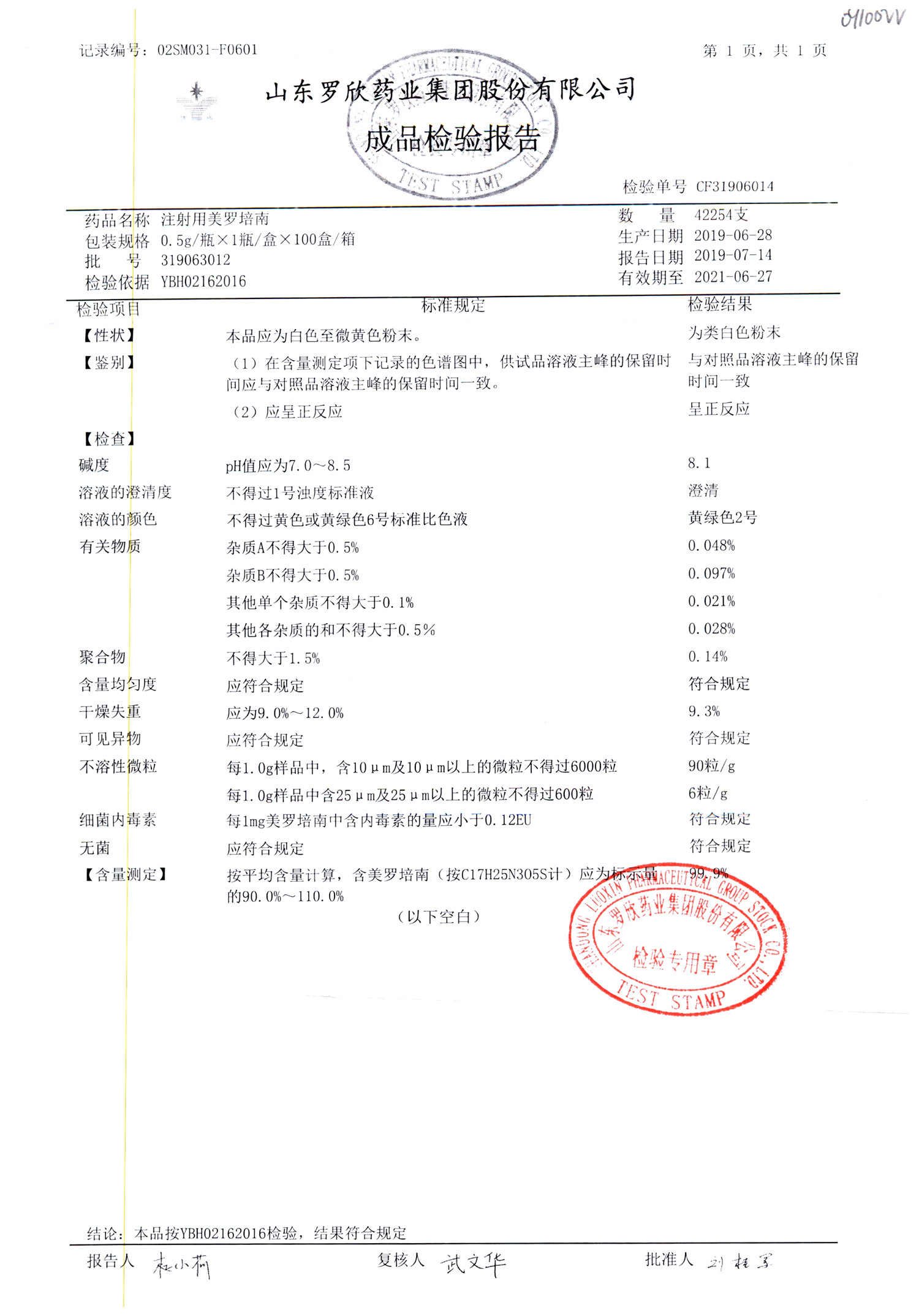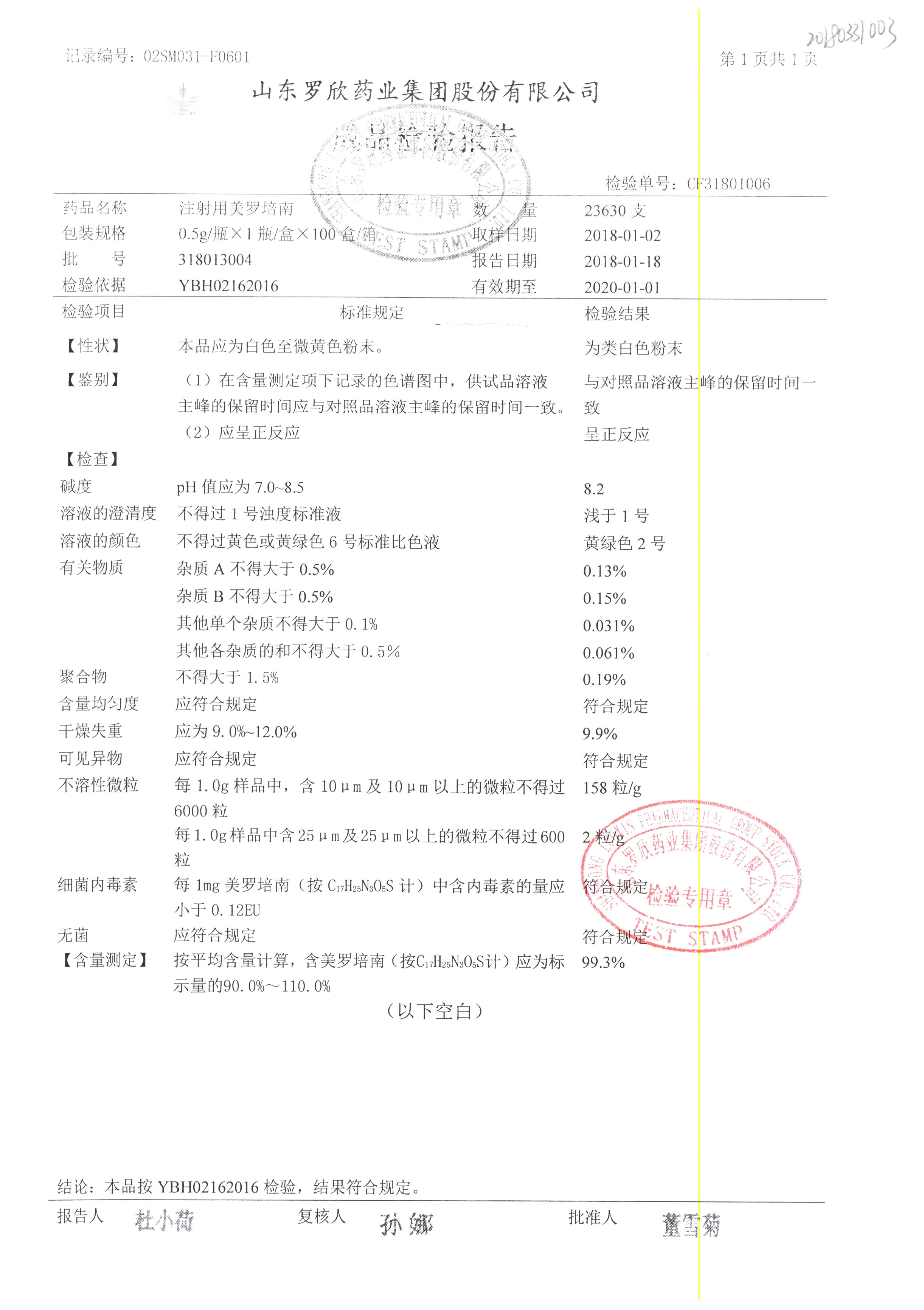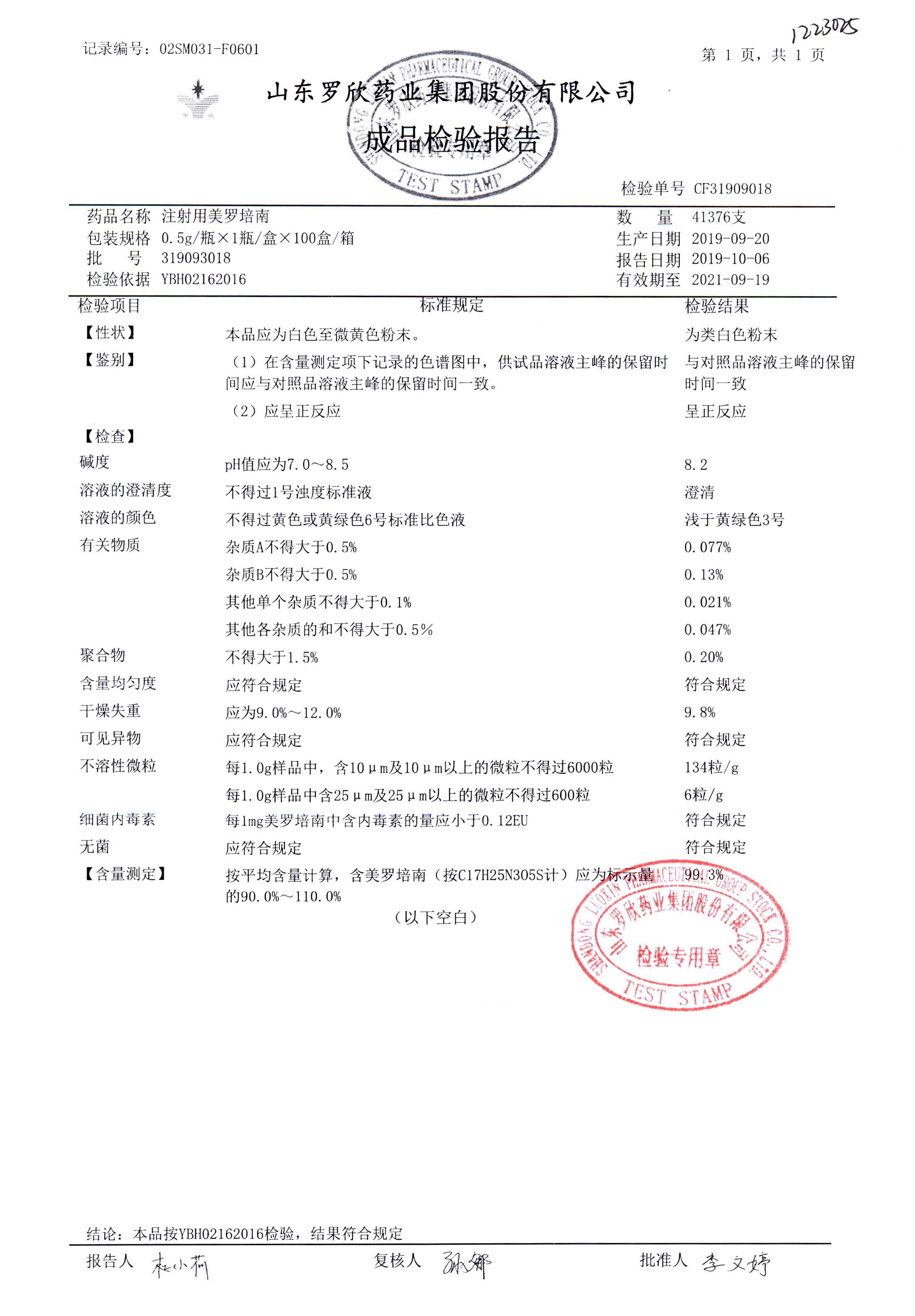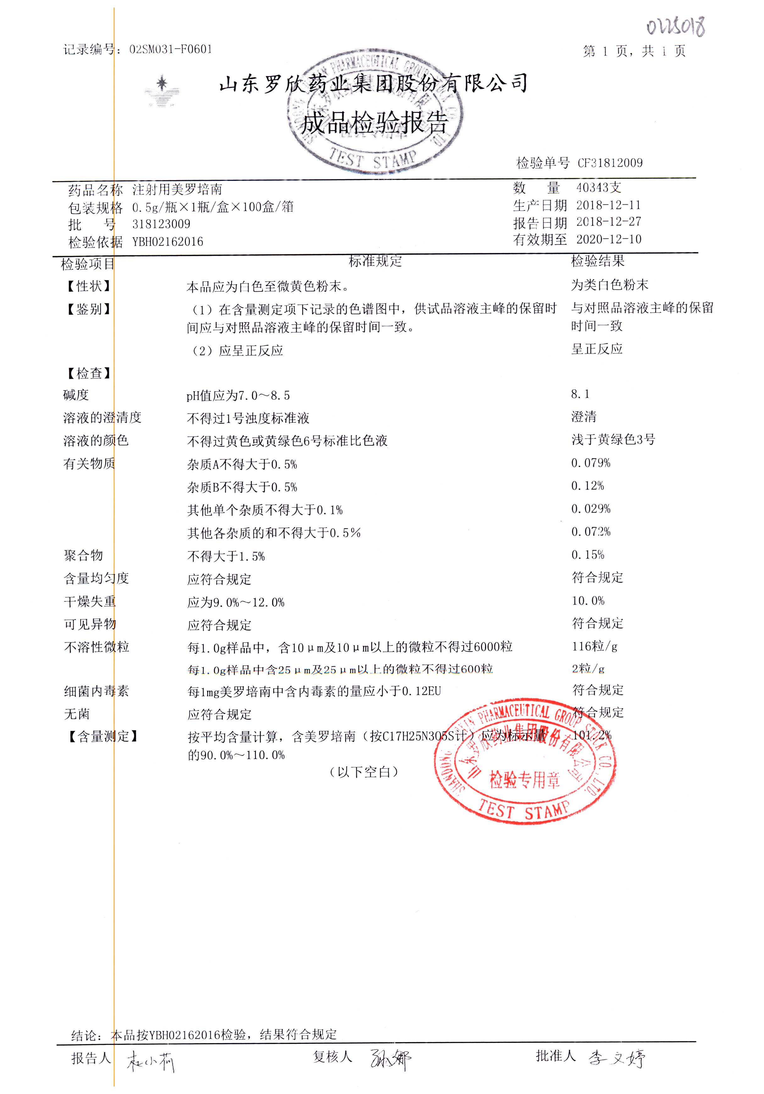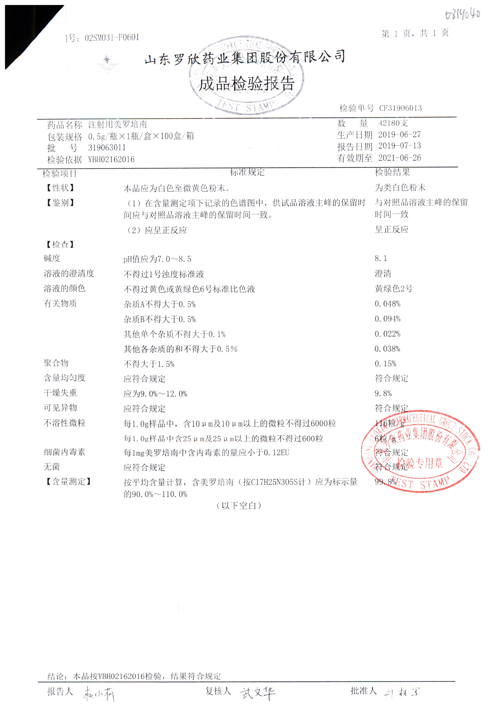 注射用美羅培南 | 0.5g | 318123011 | 查看詳情 |