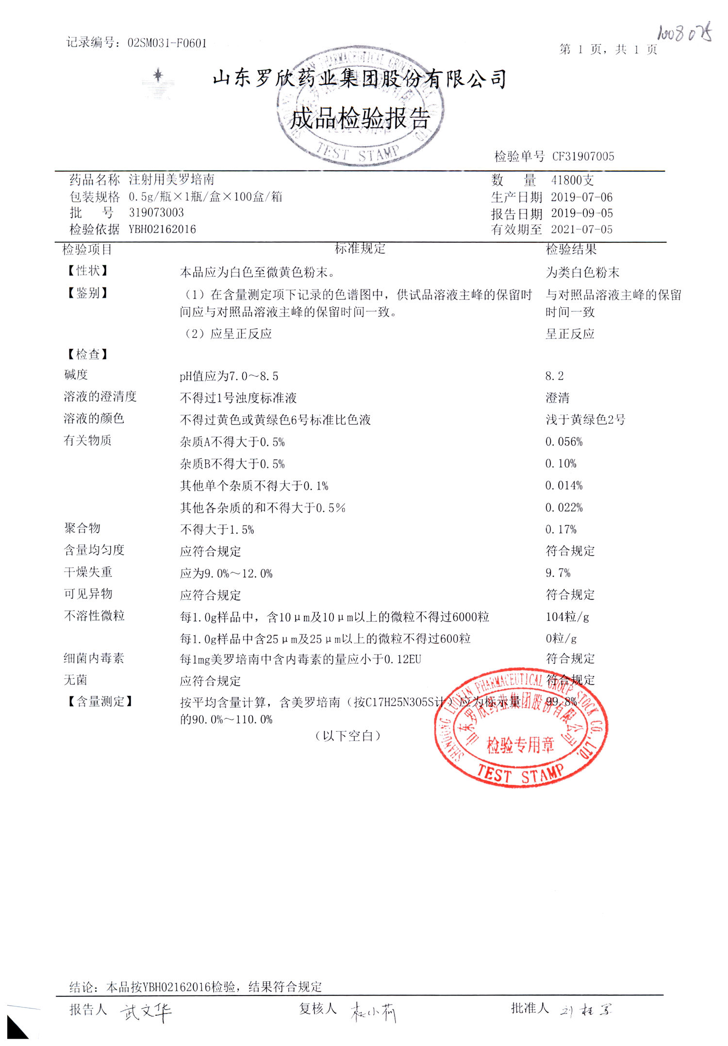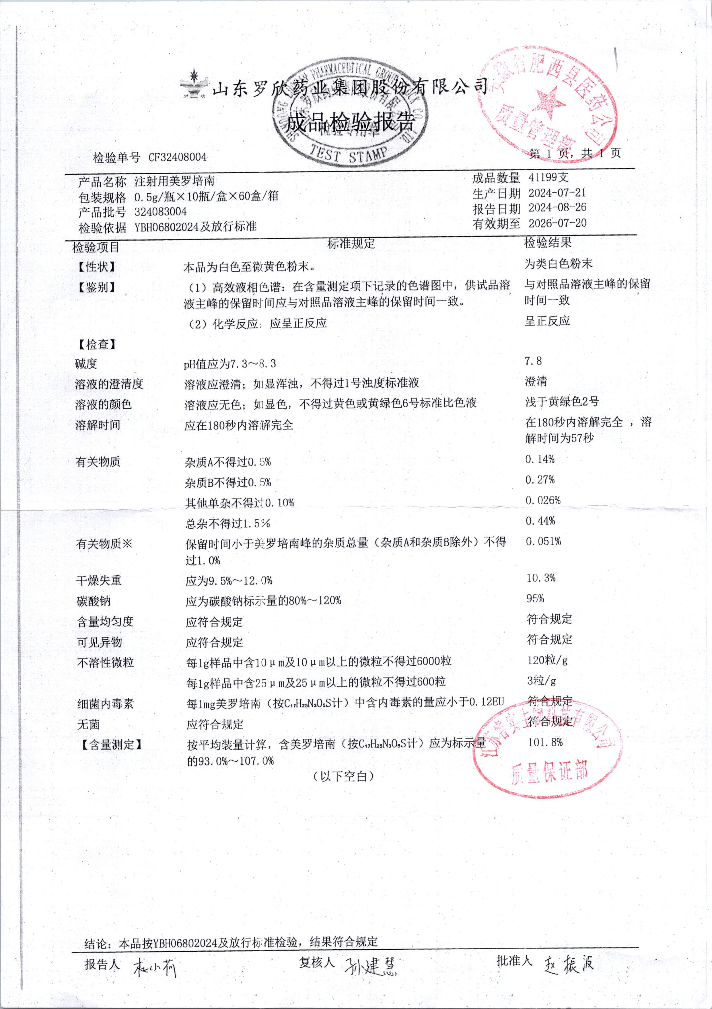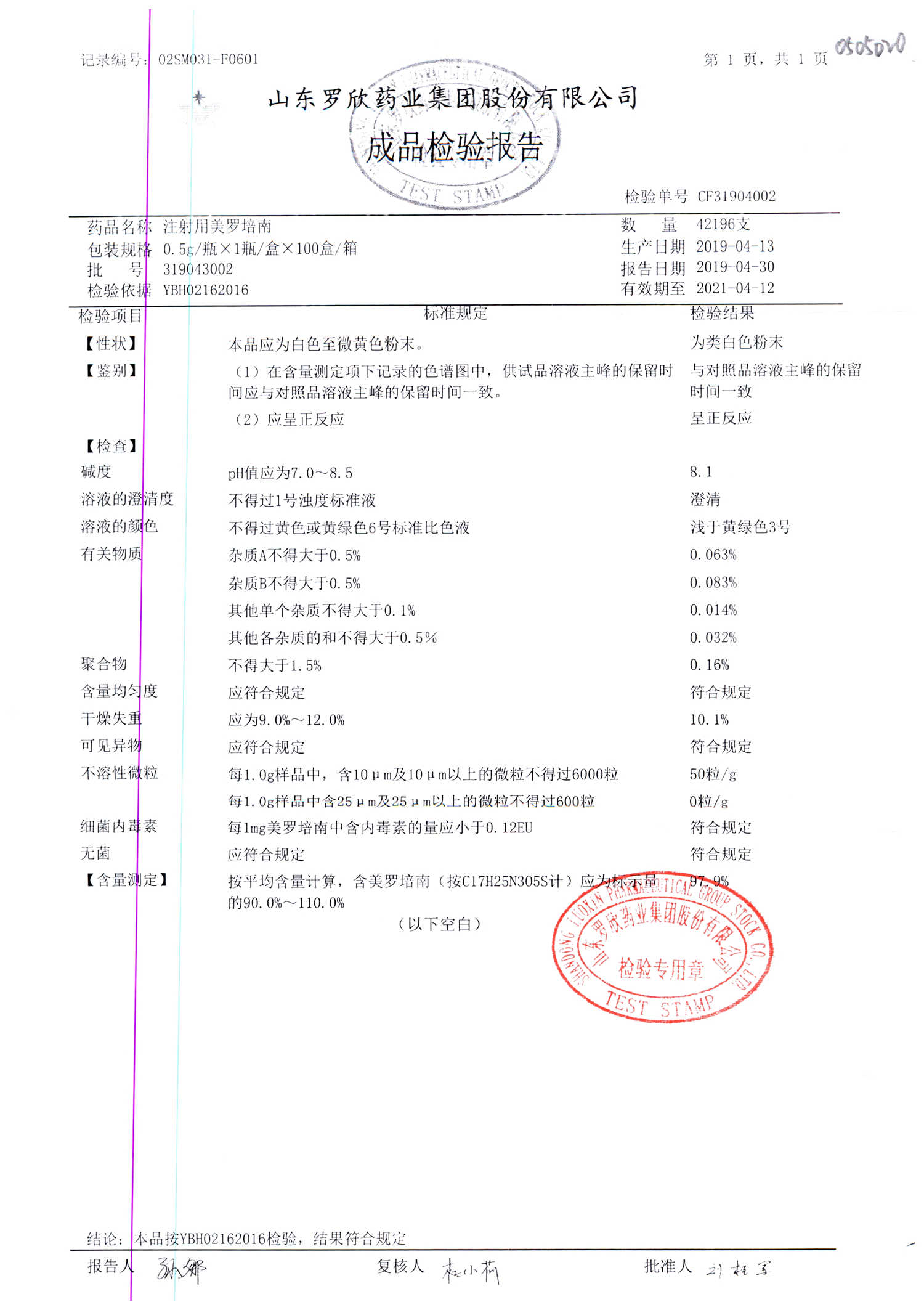 注射用美羅培南 | 0.5g | 318123009 | 查看詳情 |