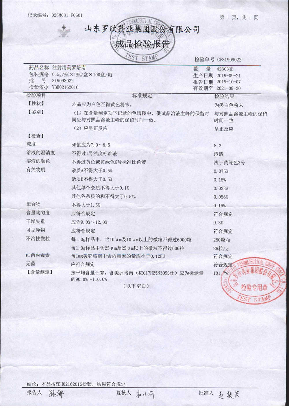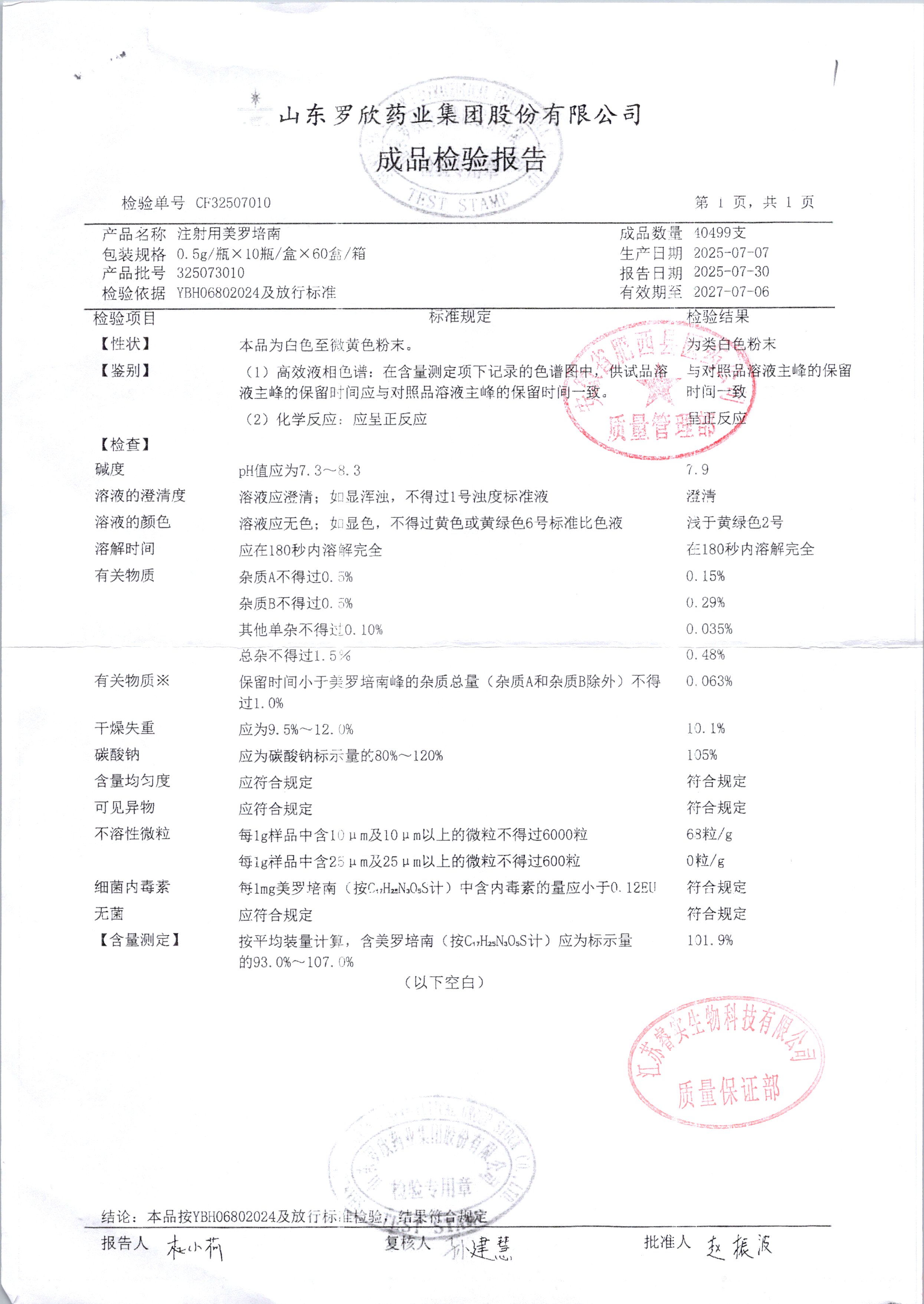 注射用美羅培南 | 0.5g | 325073010 | 查看詳情 |