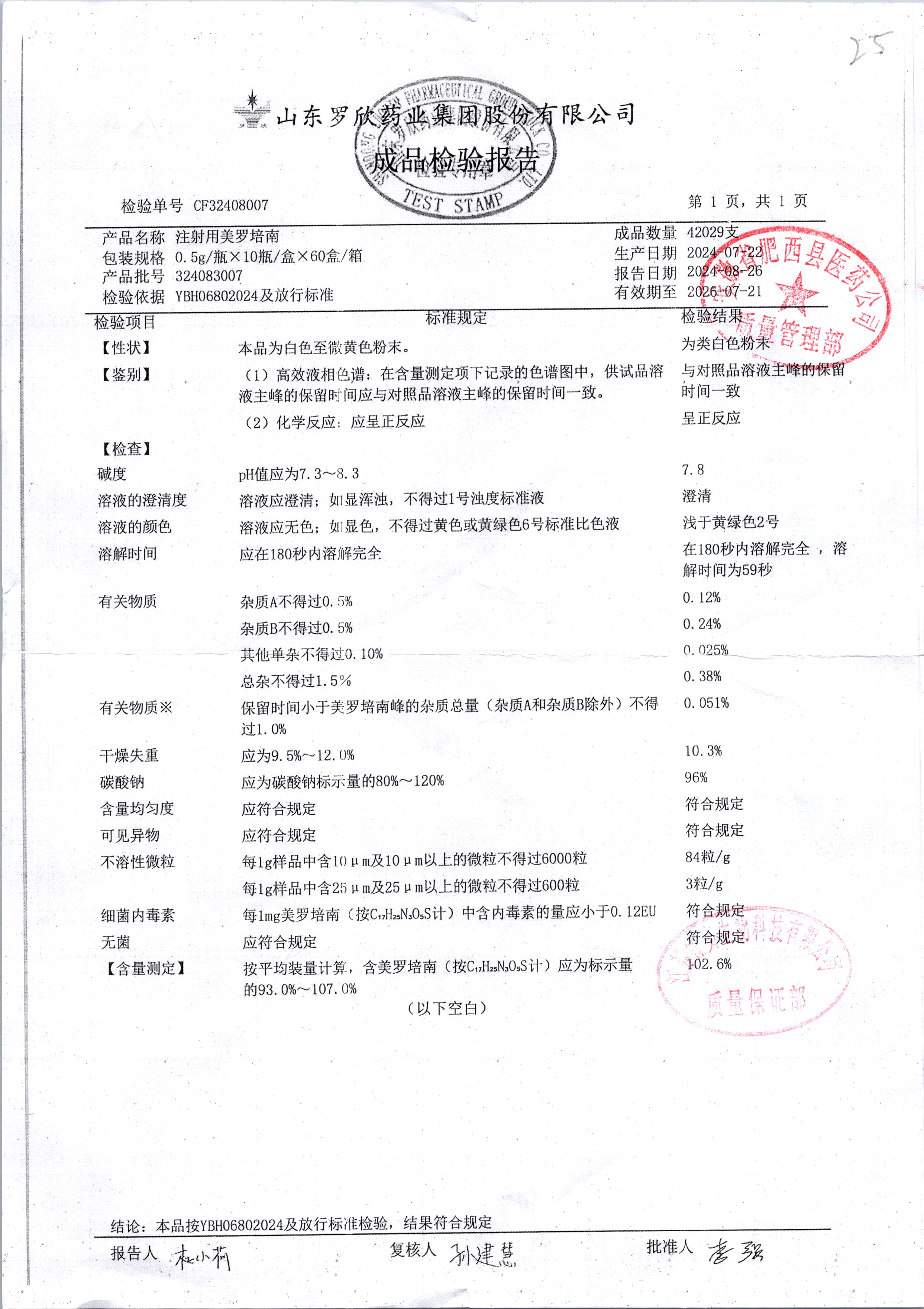 注射用美羅培南 | 0.5g | 324083007 | 查看詳情 |
