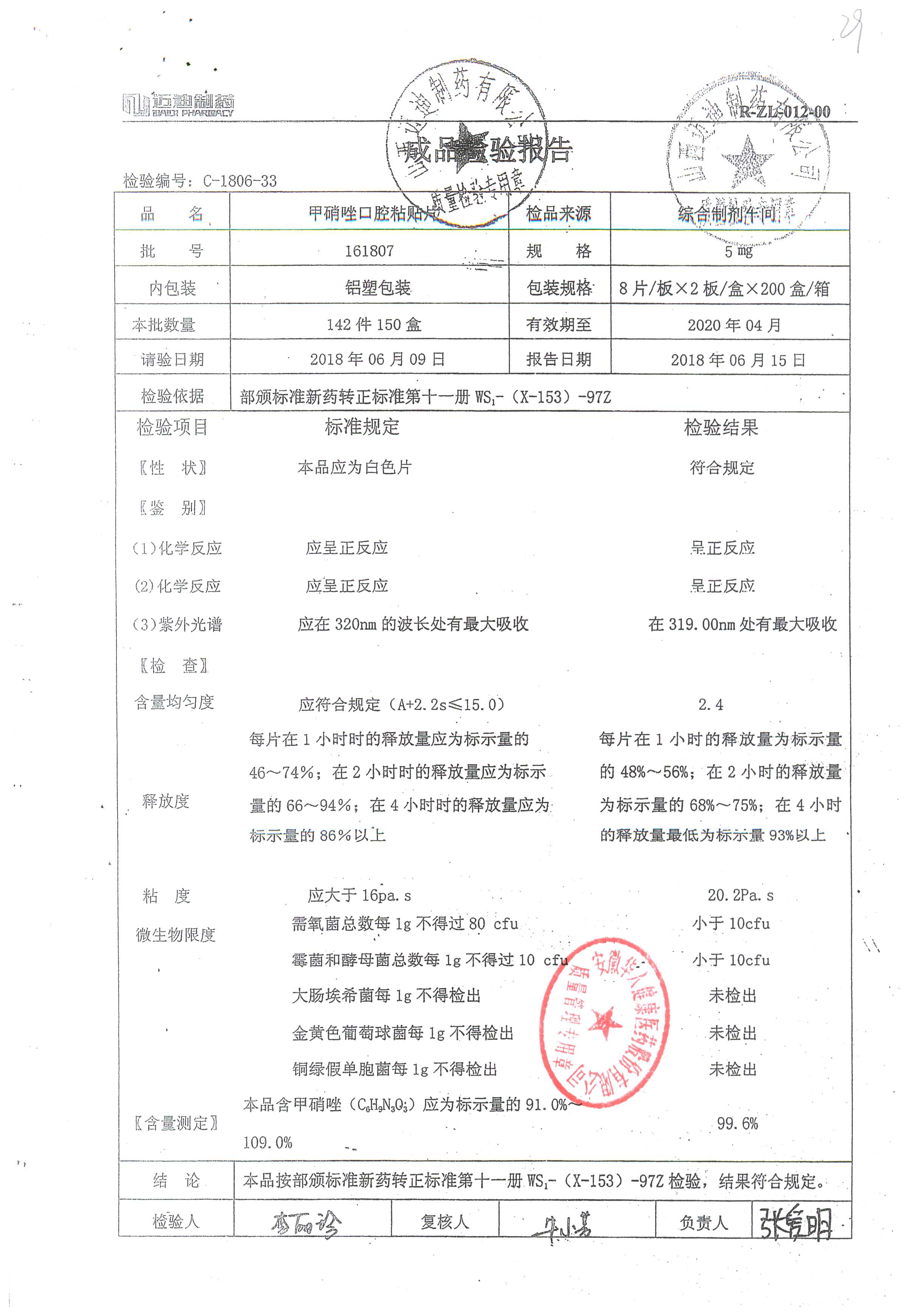名稱 | 規(guī)格 | 批號(hào) | 藥檢報(bào)告 |