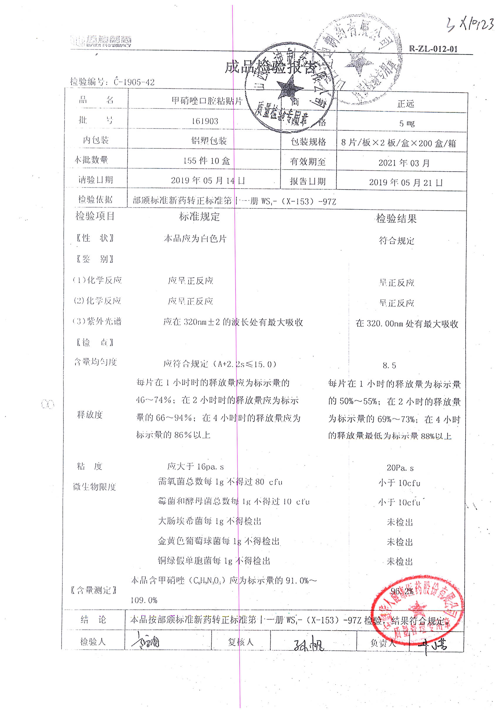 甲硝唑口腔粘貼片 | 5mg*16片 | 161903 | 查看詳情 |