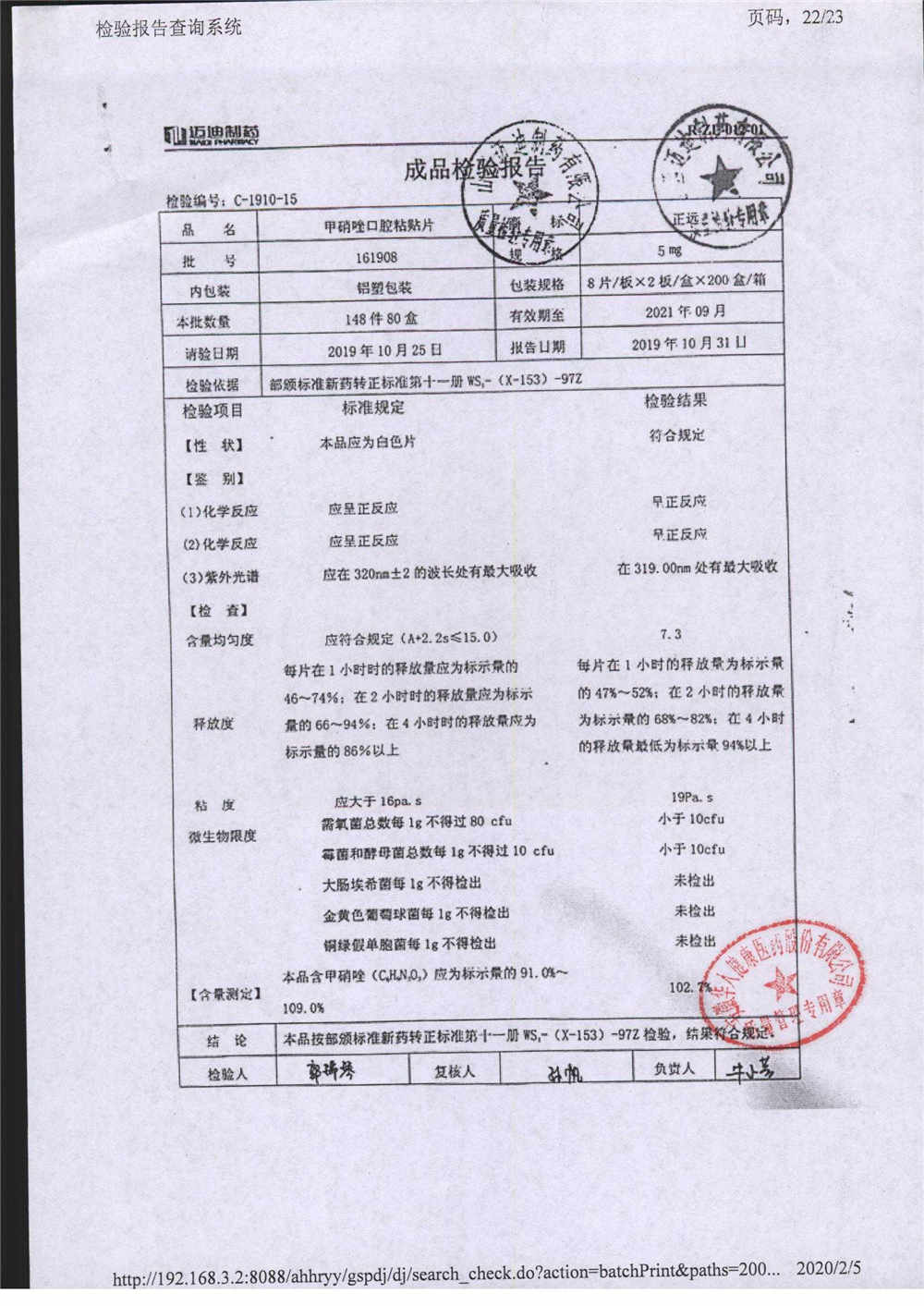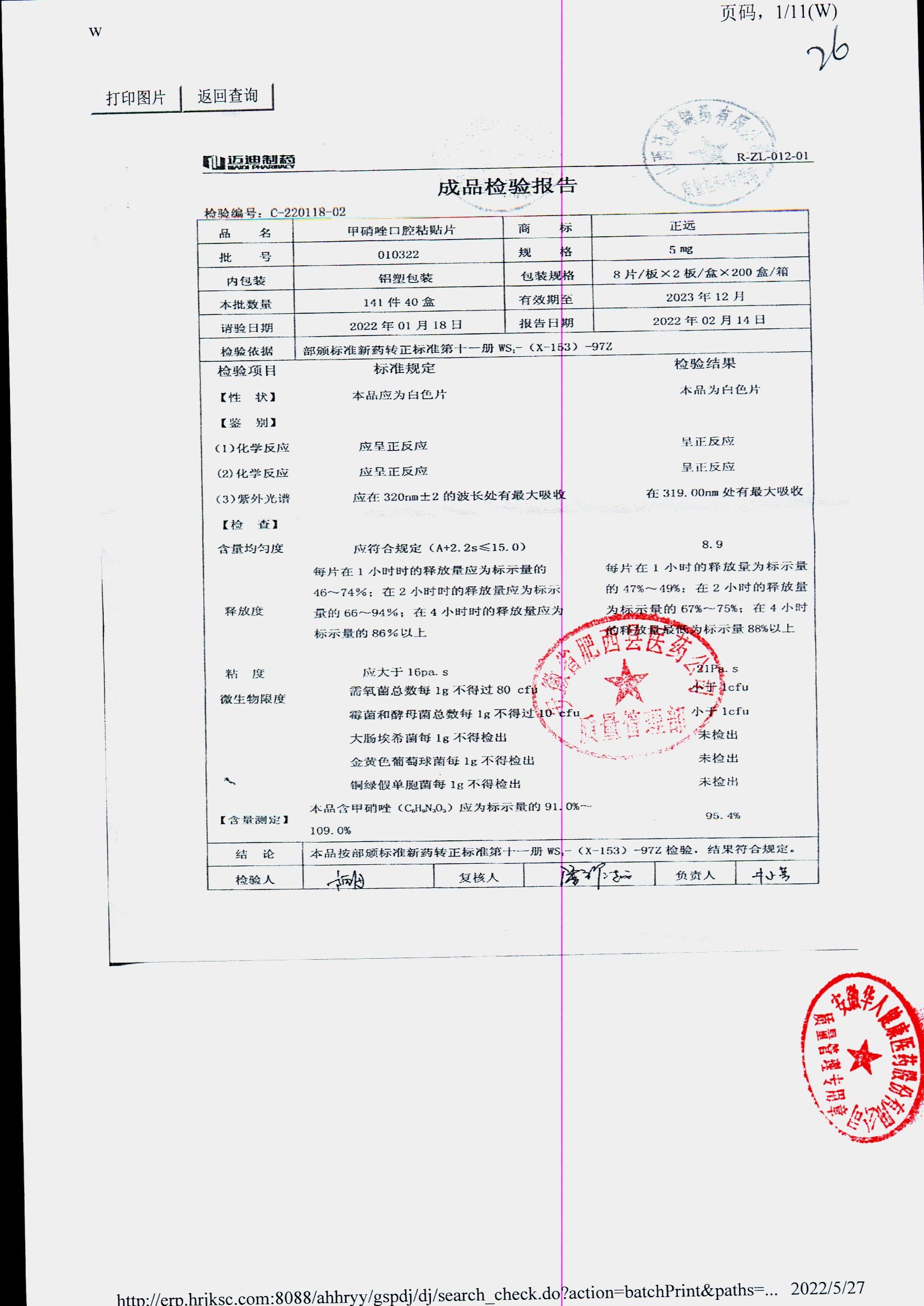 甲硝唑口腔粘貼片 | 5mg*16片 | 161810 | 查看詳情 |
