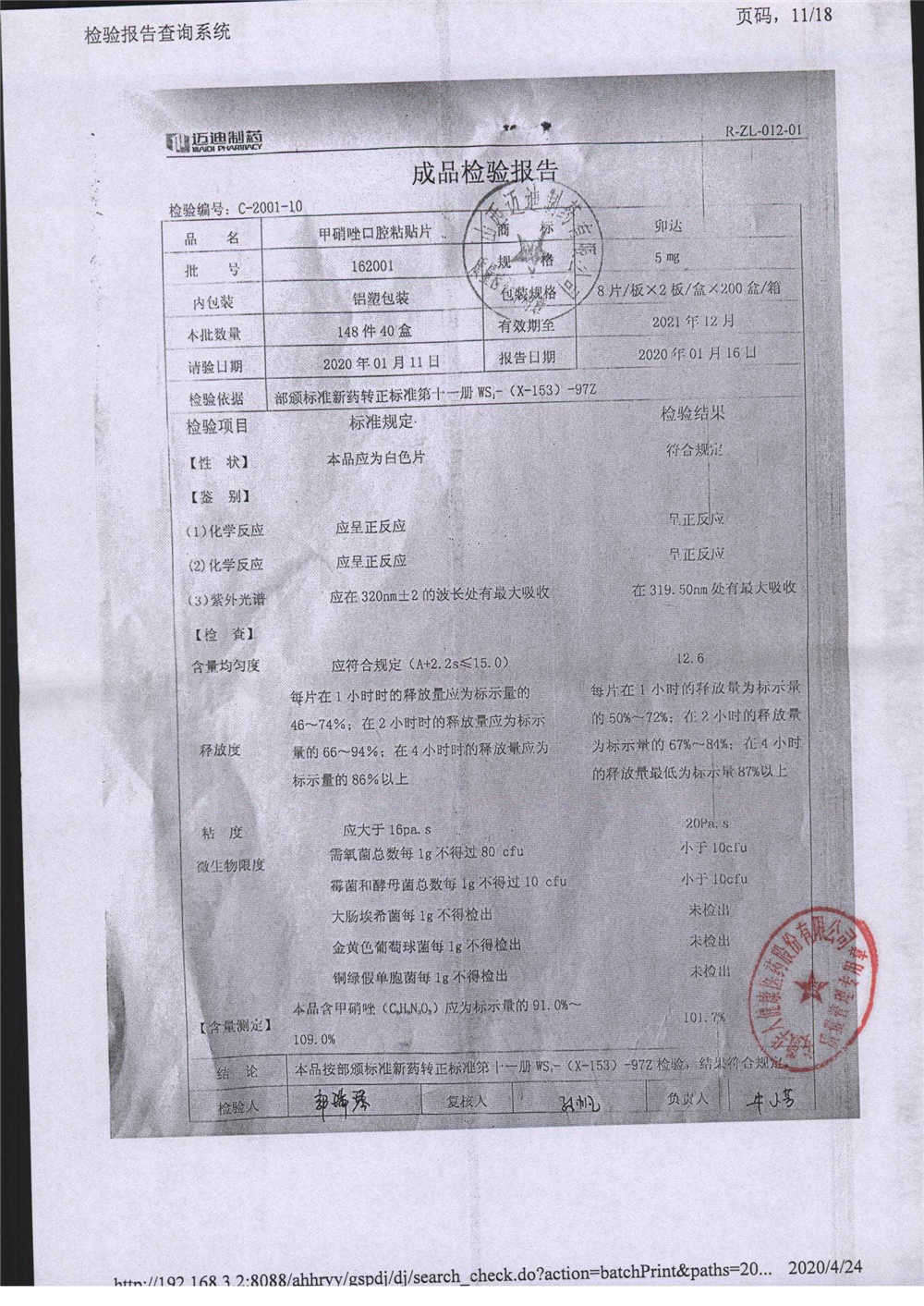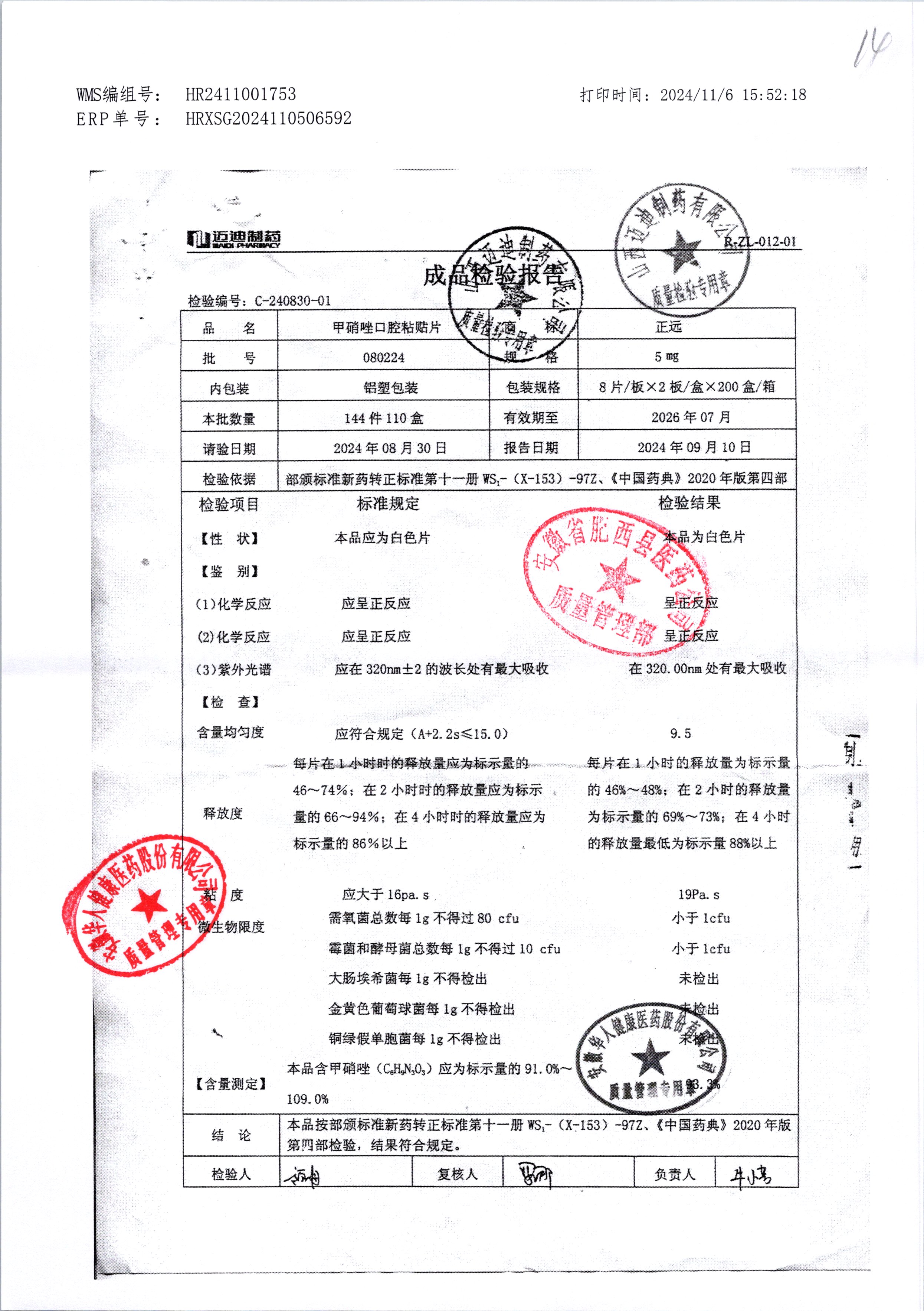 甲硝唑口腔粘貼片 | 5mg*16片 | 080224 | 查看詳情 |