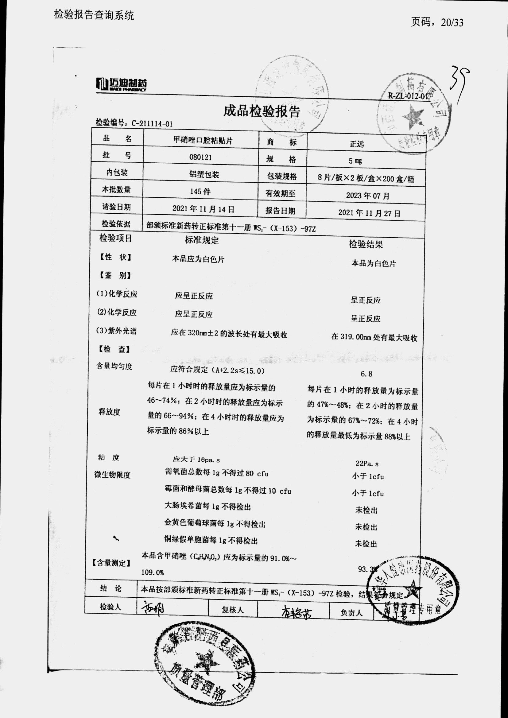 甲硝唑口腔粘貼片 | 5mg*16片 | 080121 | 查看詳情 |