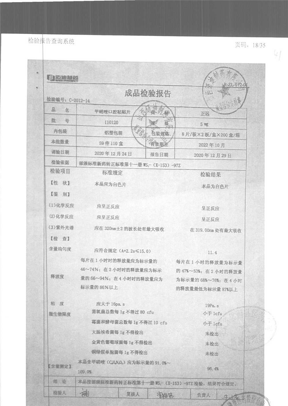 甲硝唑口腔粘貼片 | 5mg*16片 | 110321 | 查看詳情 |