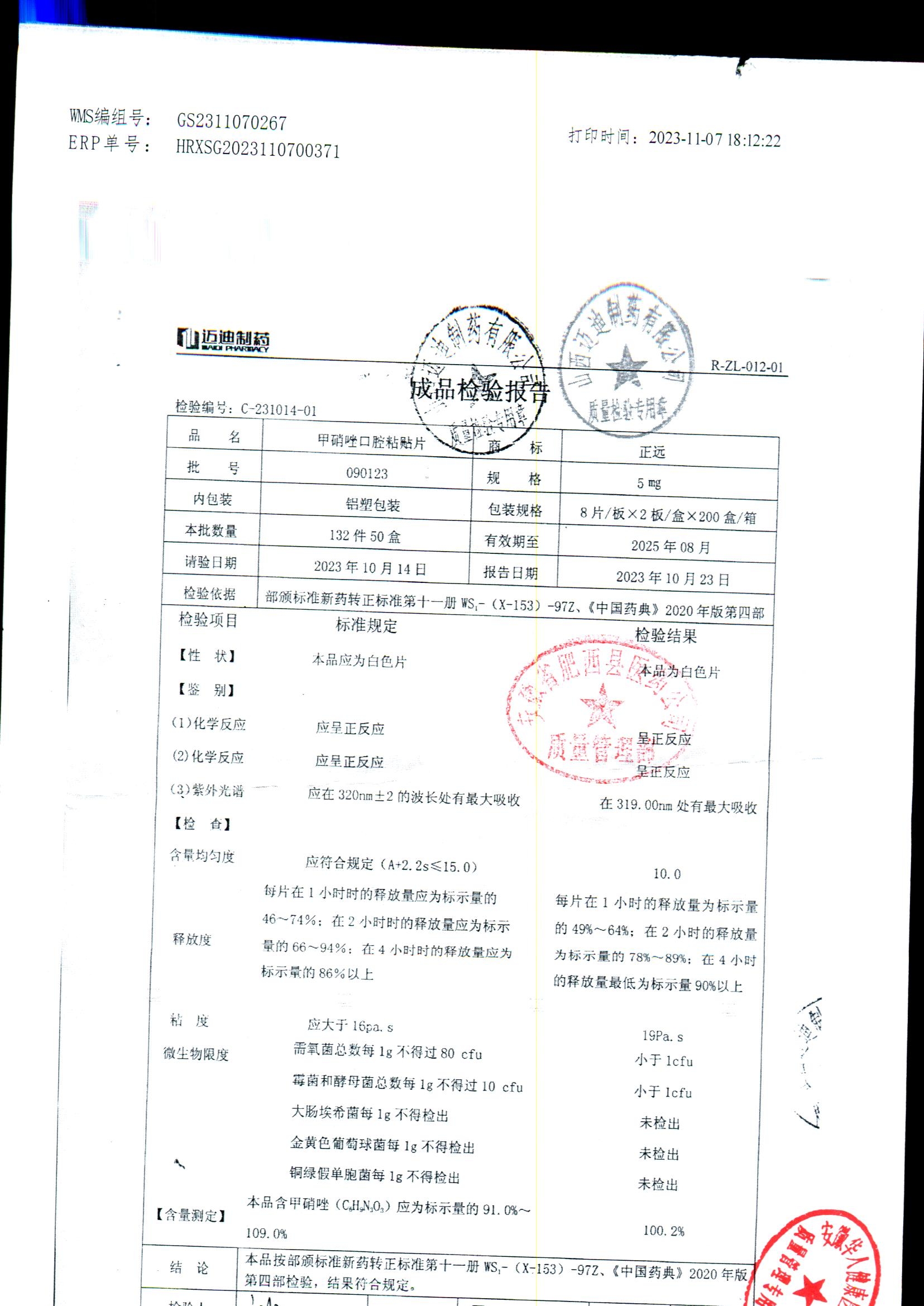 甲硝唑口腔粘貼片 | 5mg*16片 | 090123 | 查看詳情 |