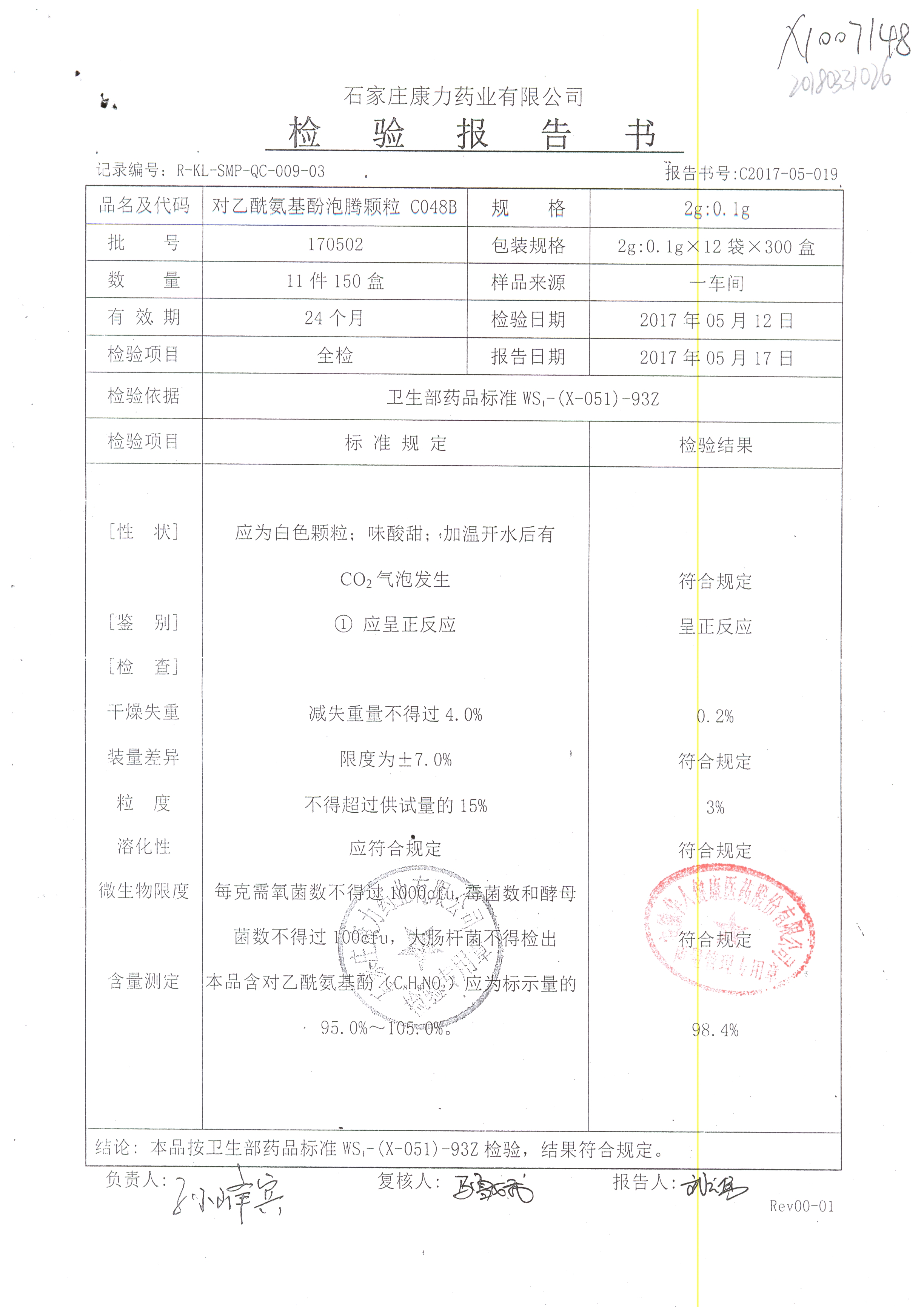 對(duì)乙醯氨基酚泡騰顆粒 2g:0.1g 170502 查看詳情