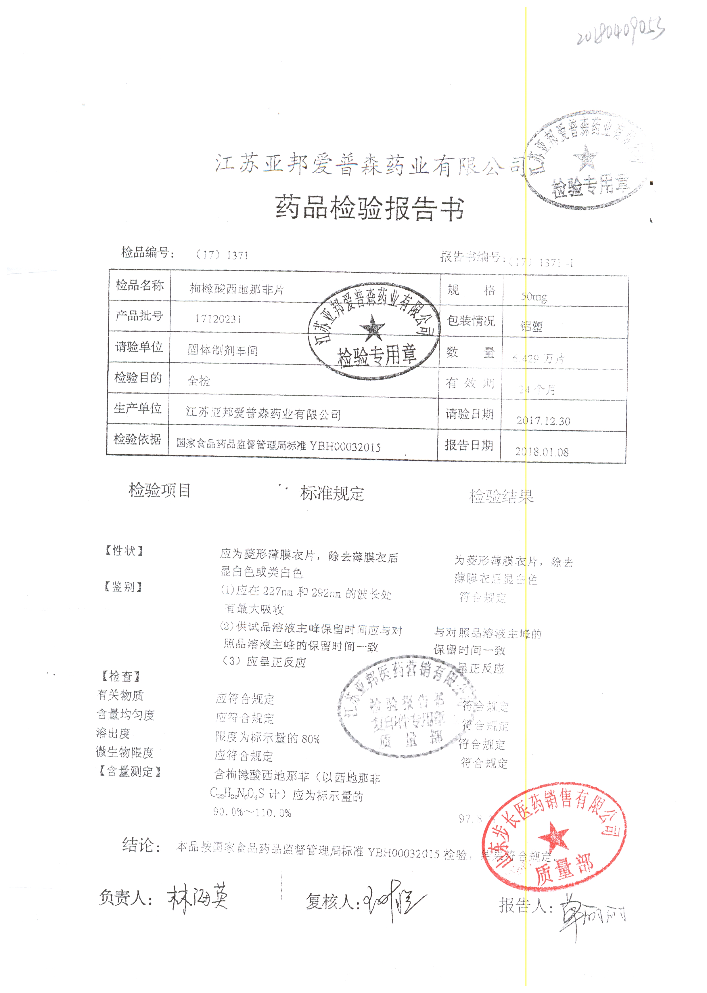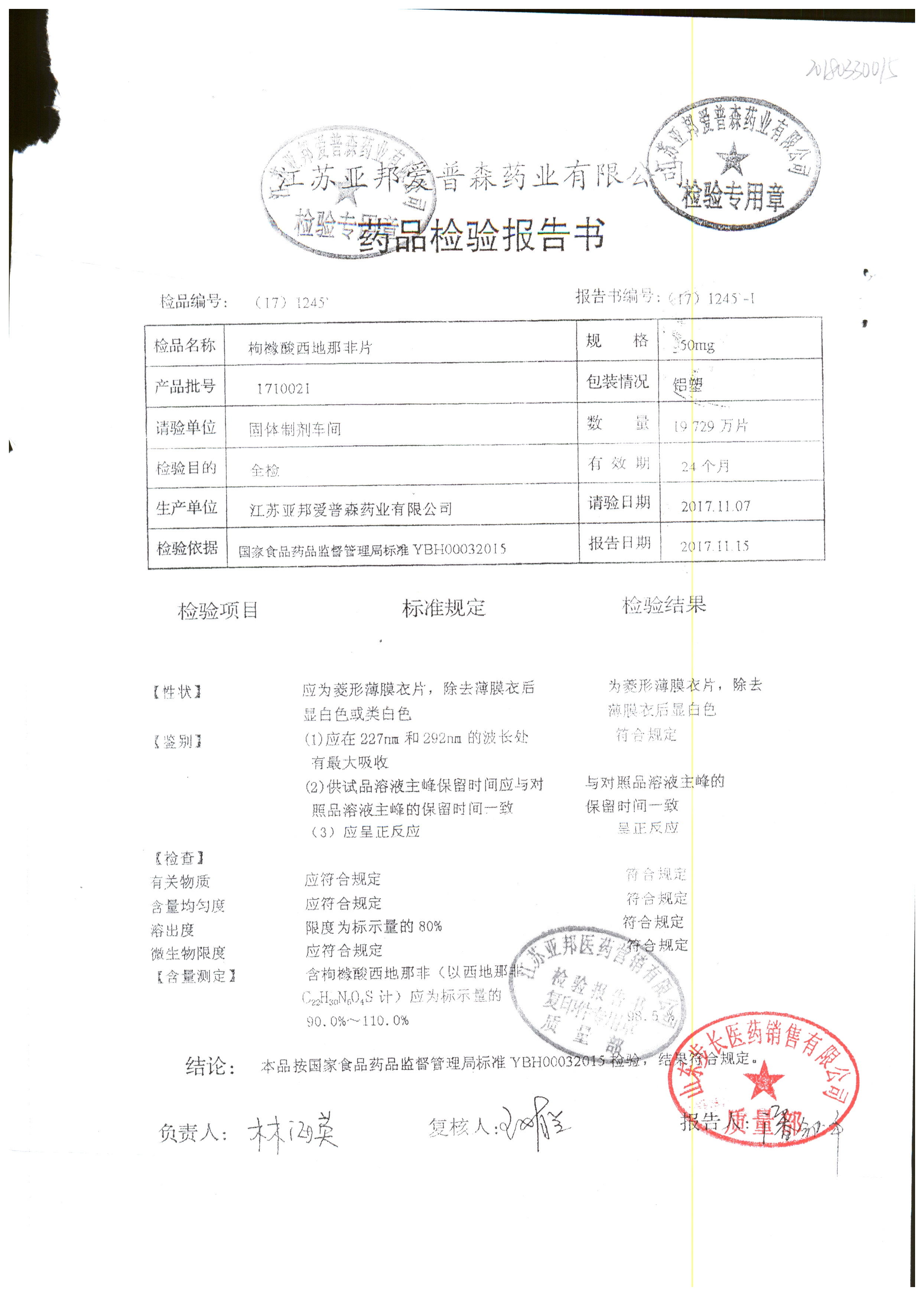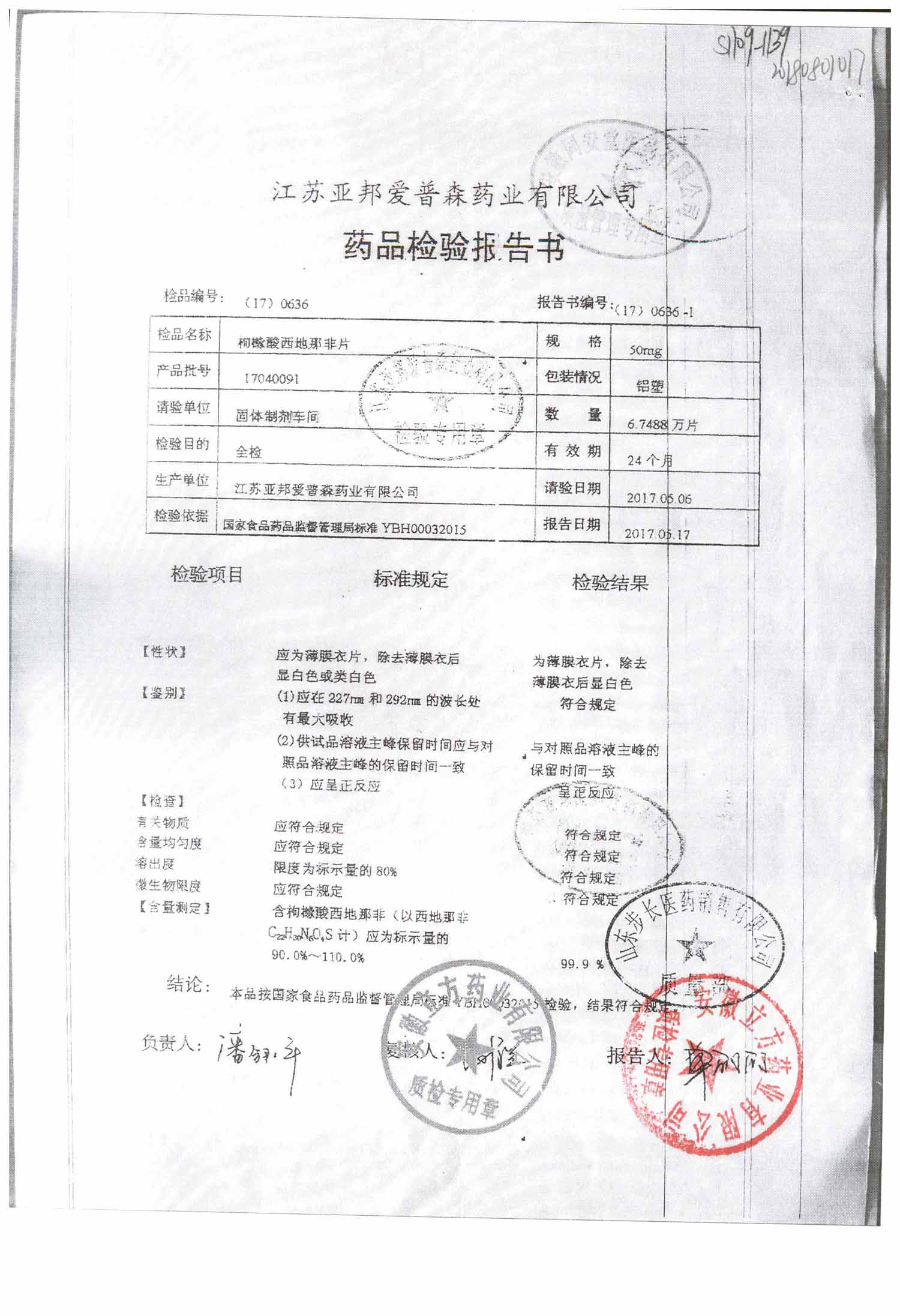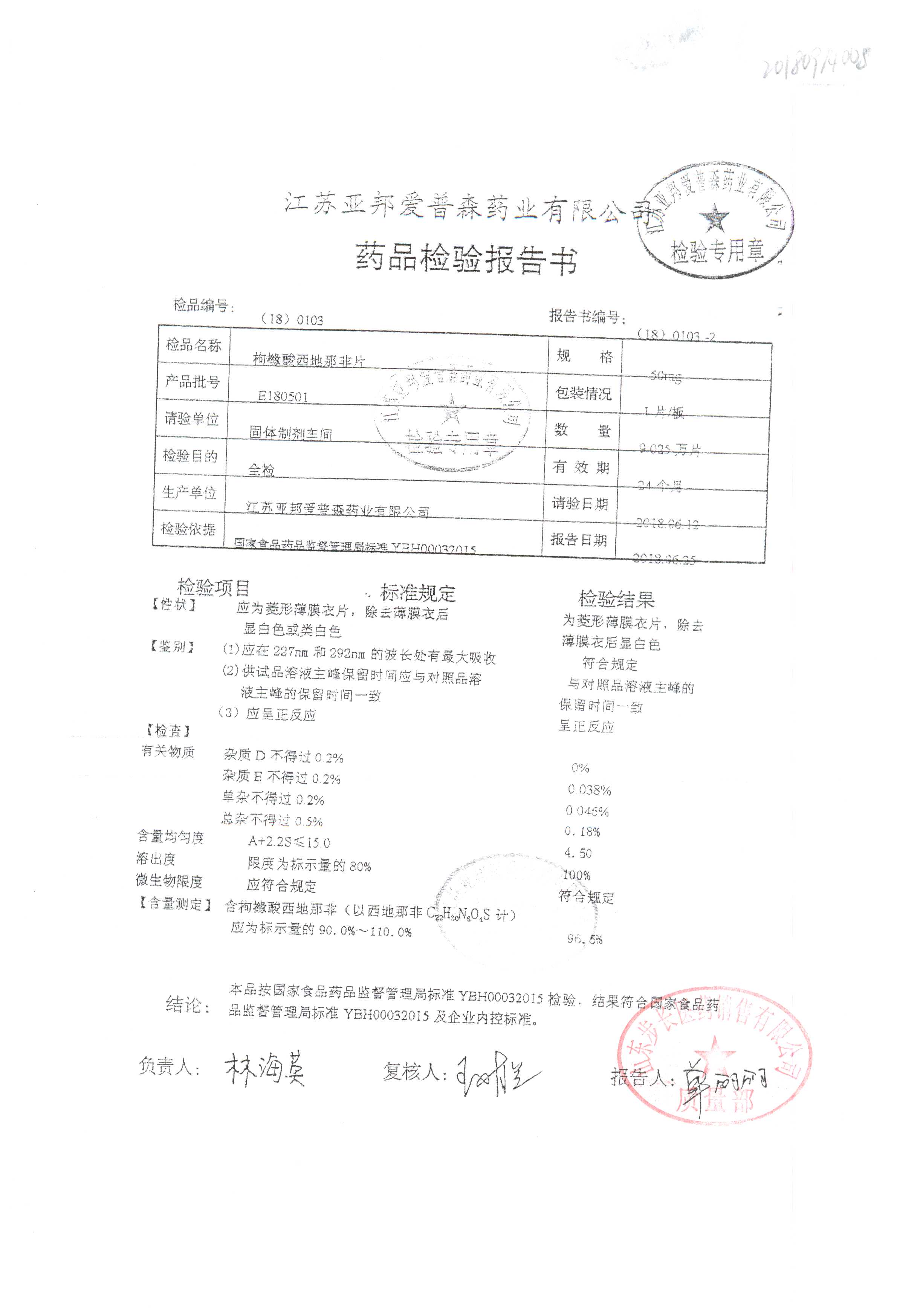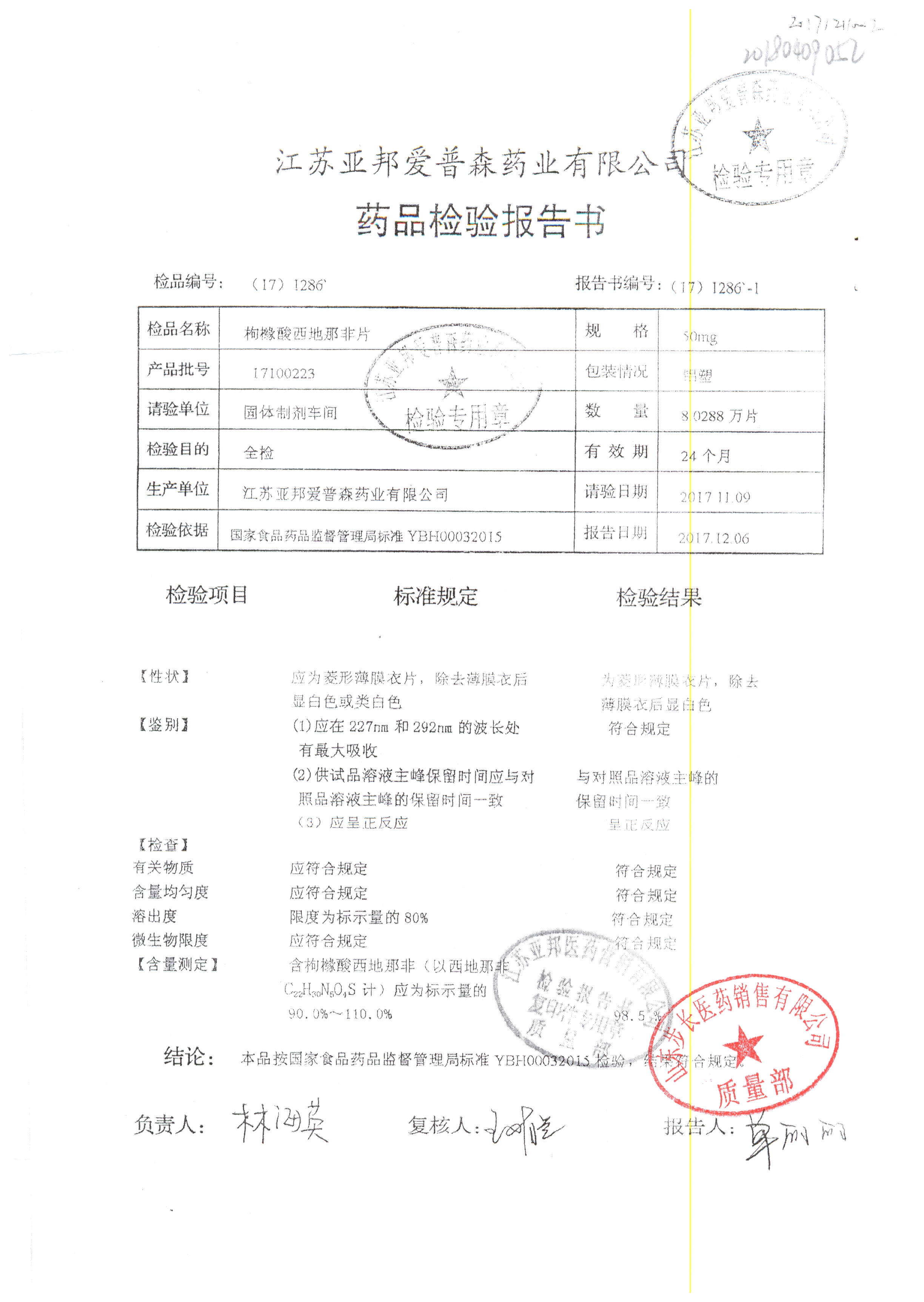| 枸櫞酸西地那非片 | 50mg | E1809012 | 查看詳情 |