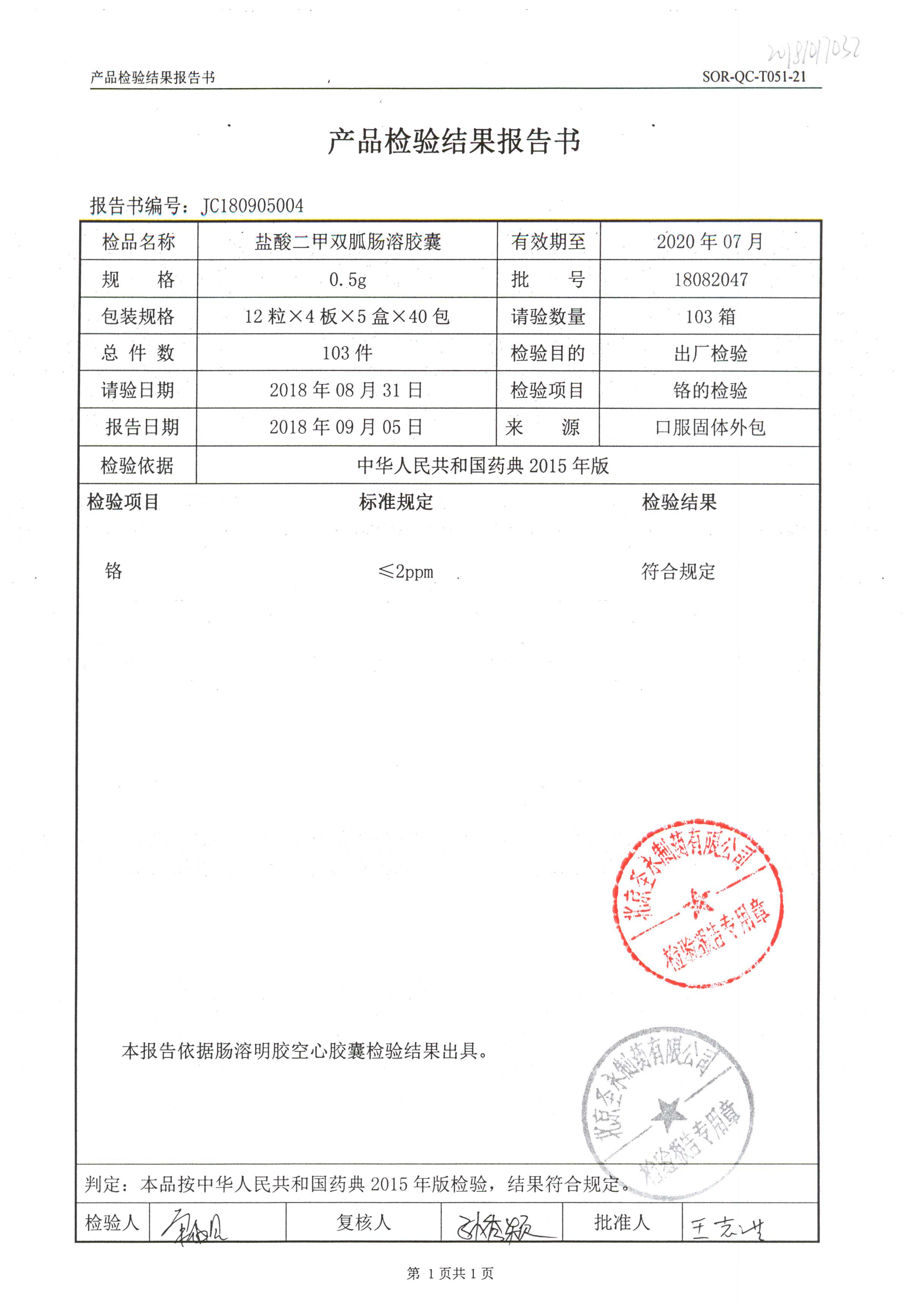 | 鹽酸二甲雙胍腸溶膠囊 | 0.5g*48s | 18042007(1/2) | 查看詳情 |