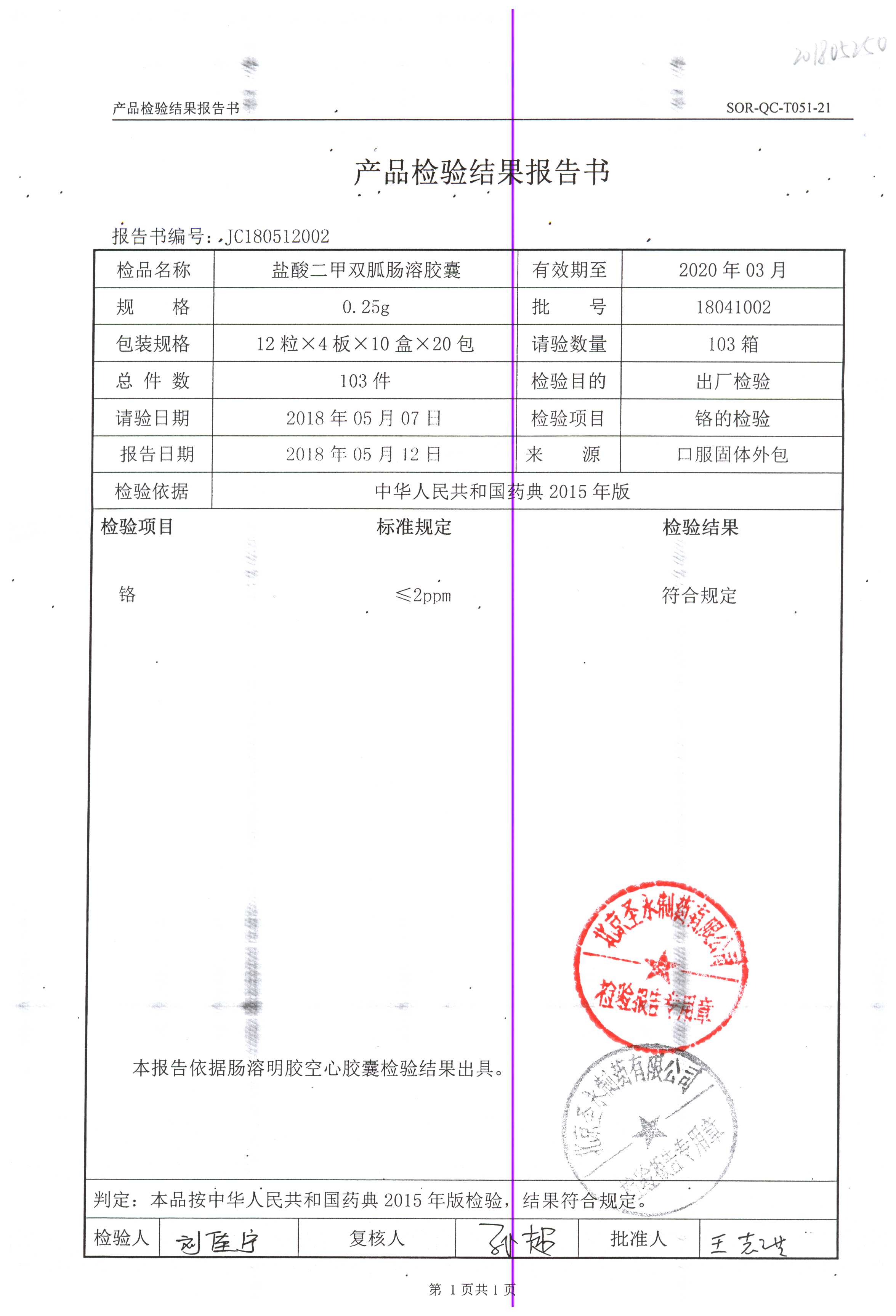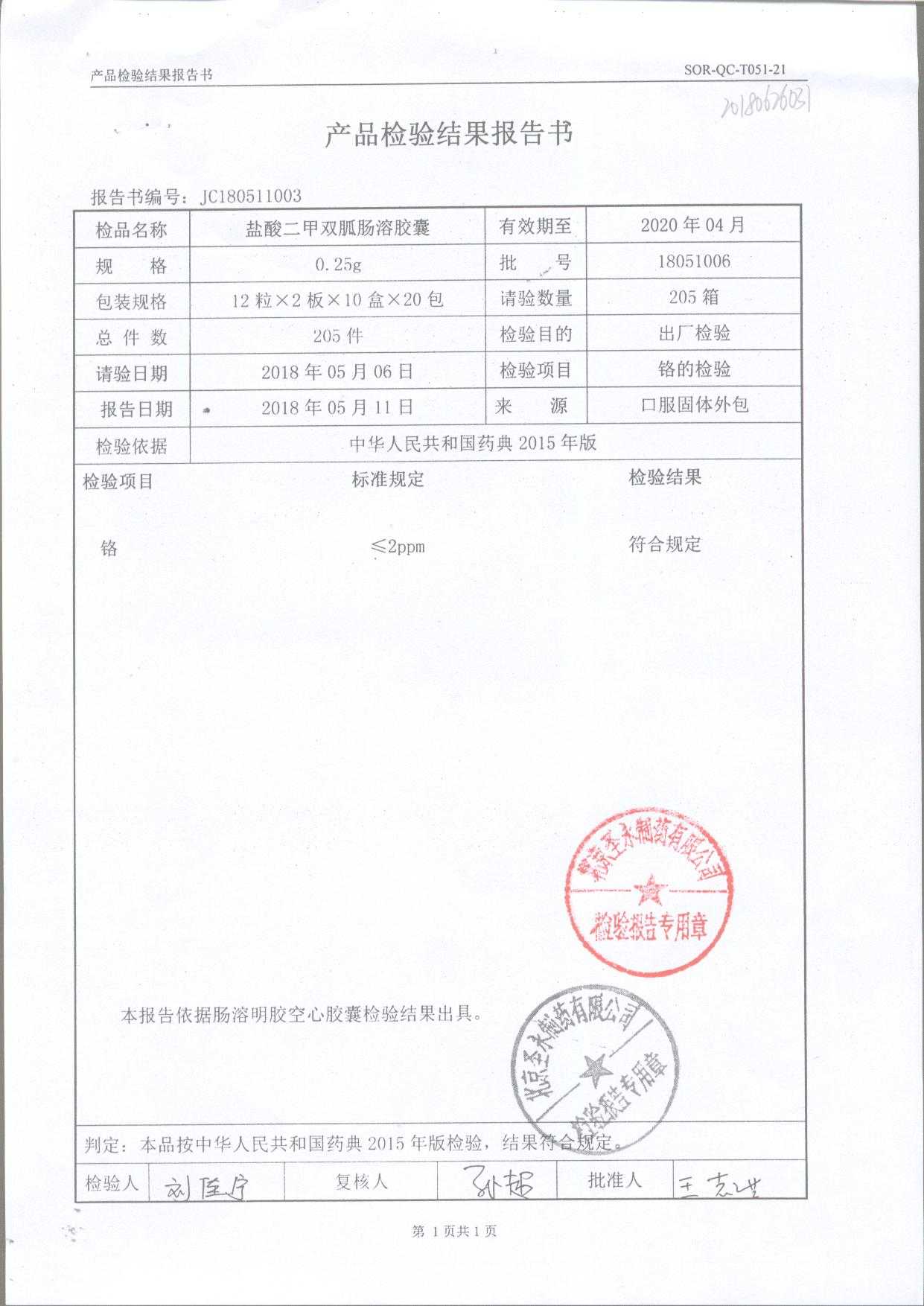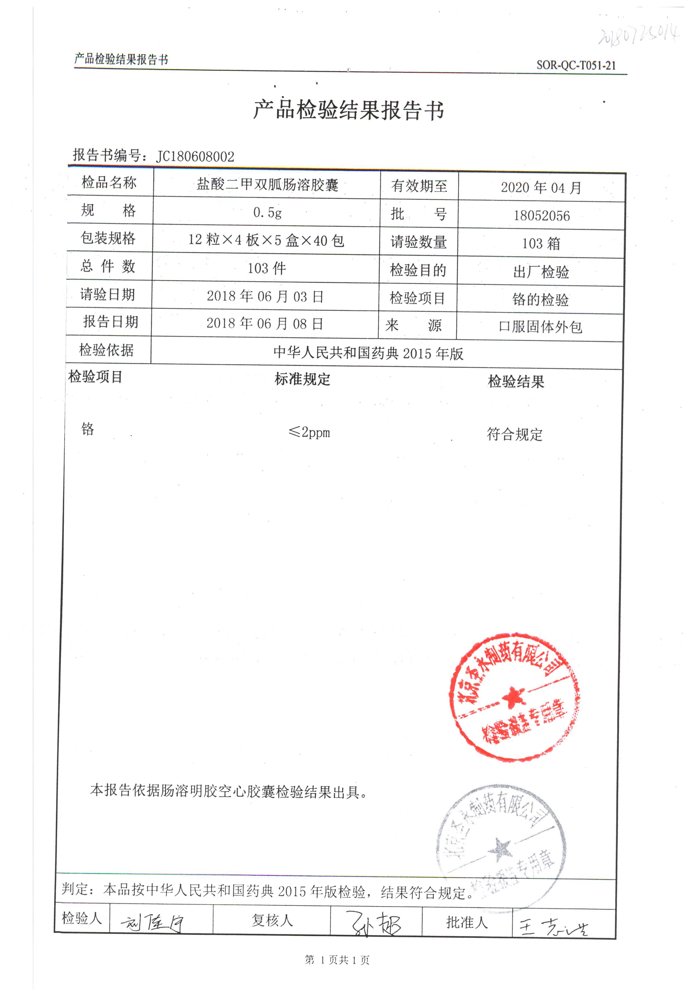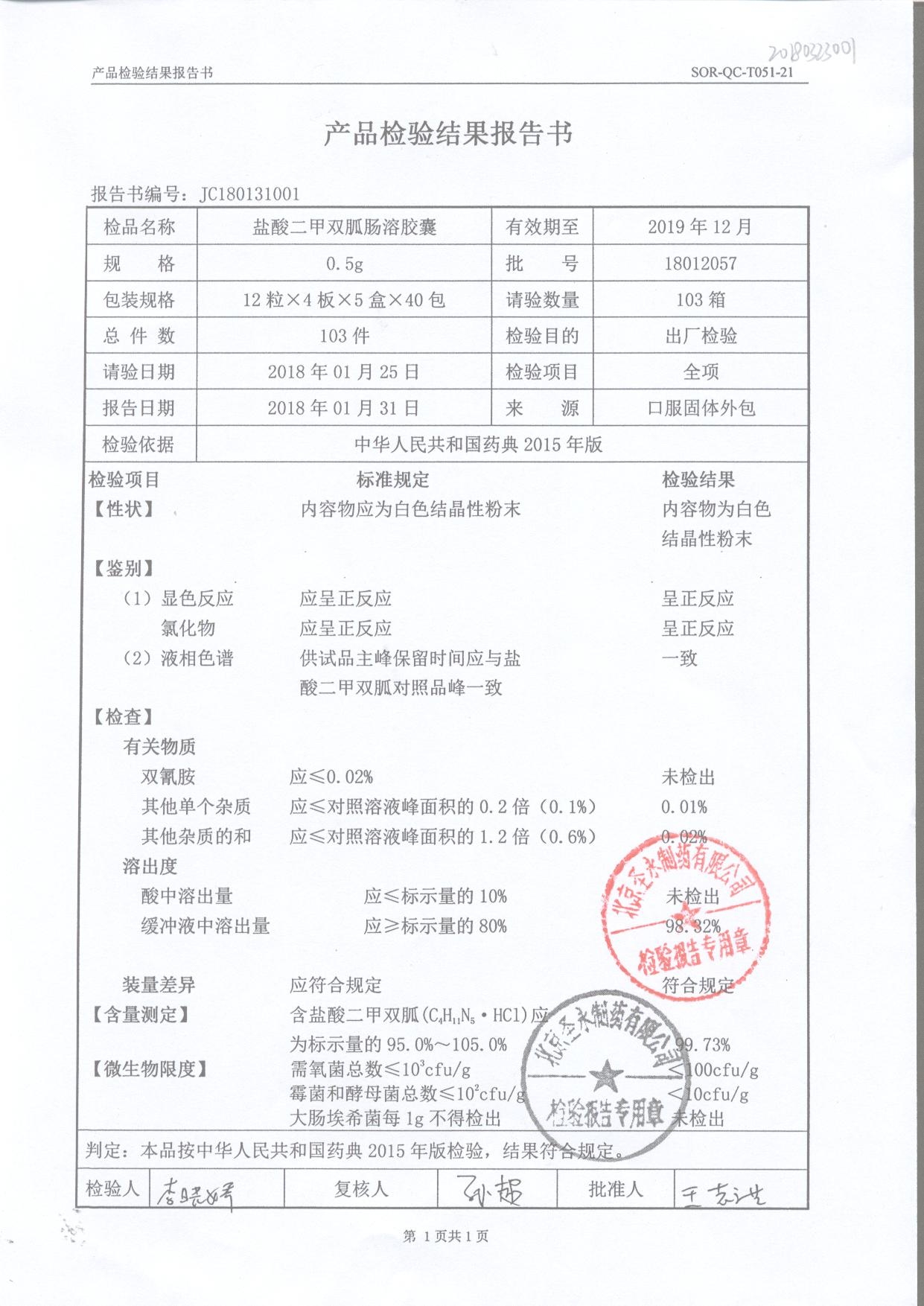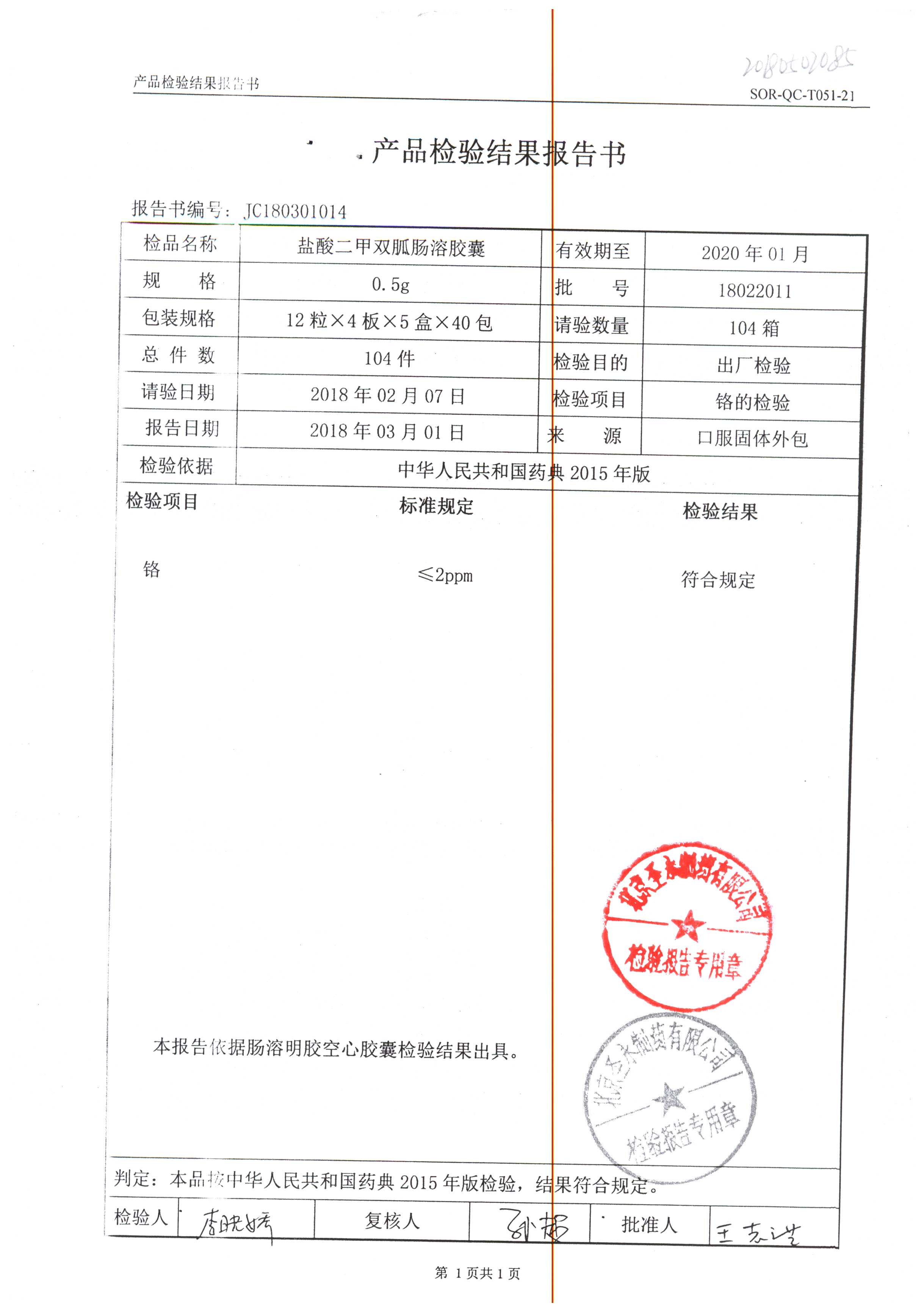 | 鹽酸二甲雙胍腸溶膠囊 | 0.5g*48s | 18042007(2/2) | 查看詳情 |
