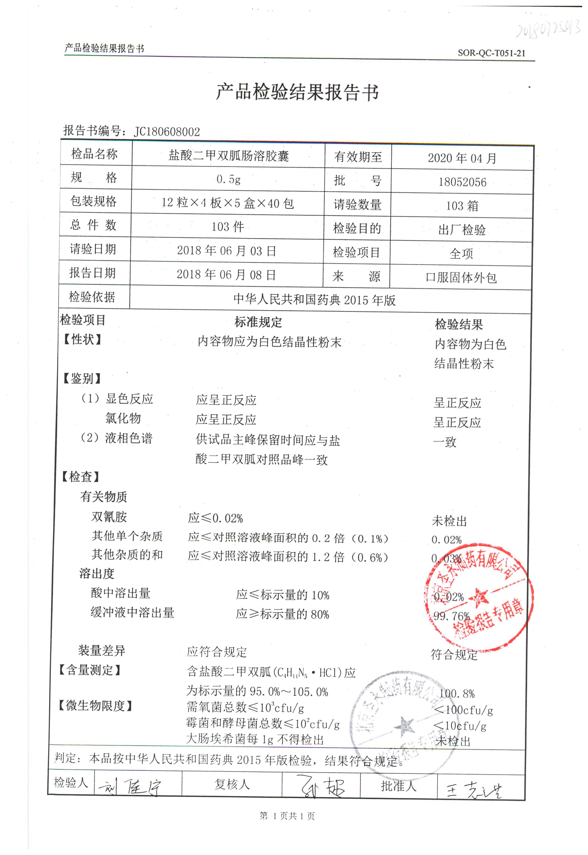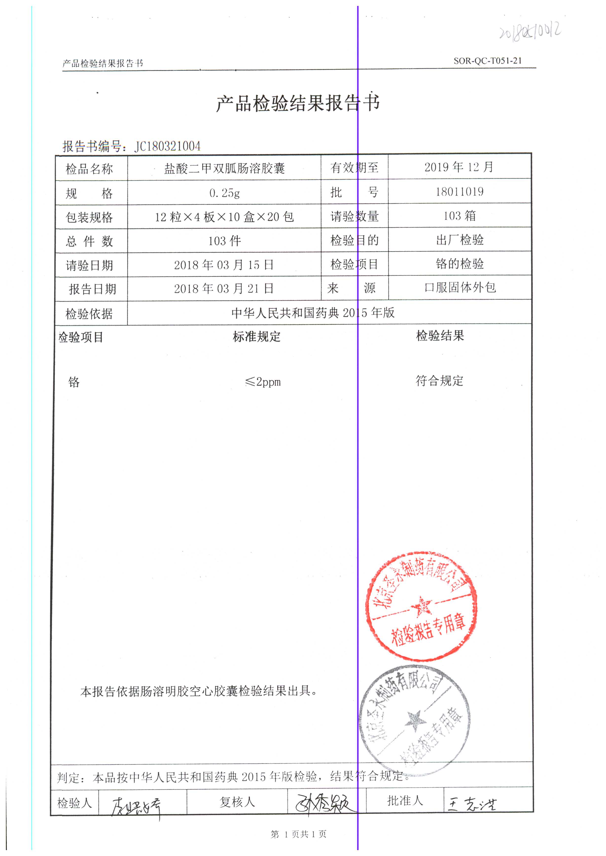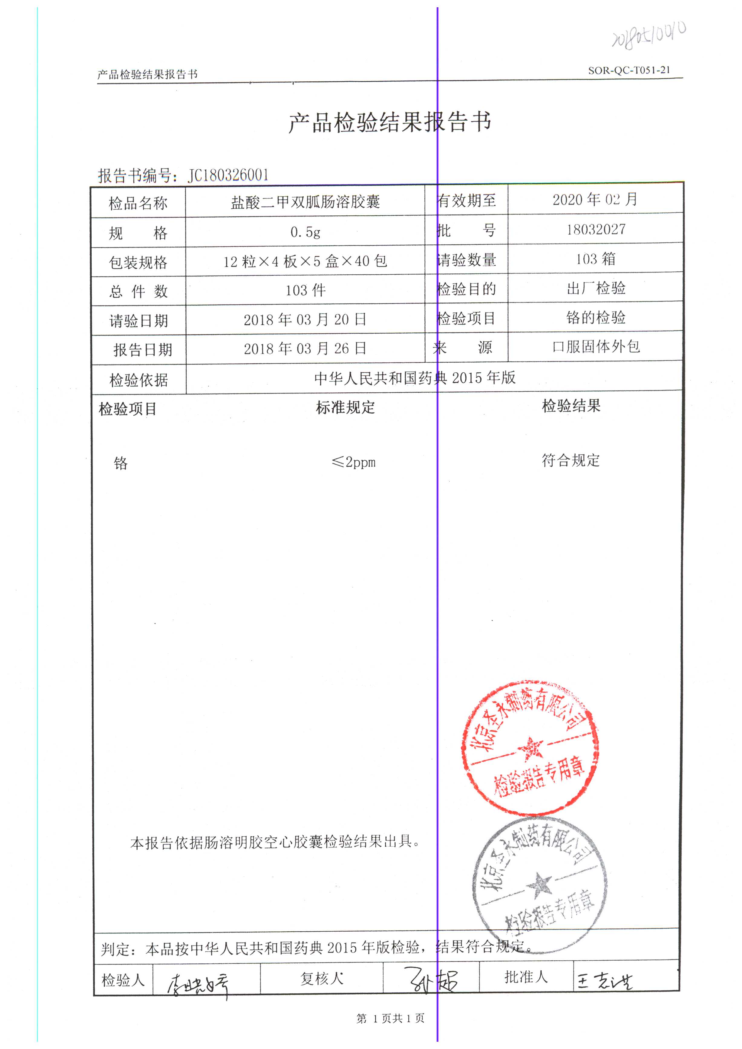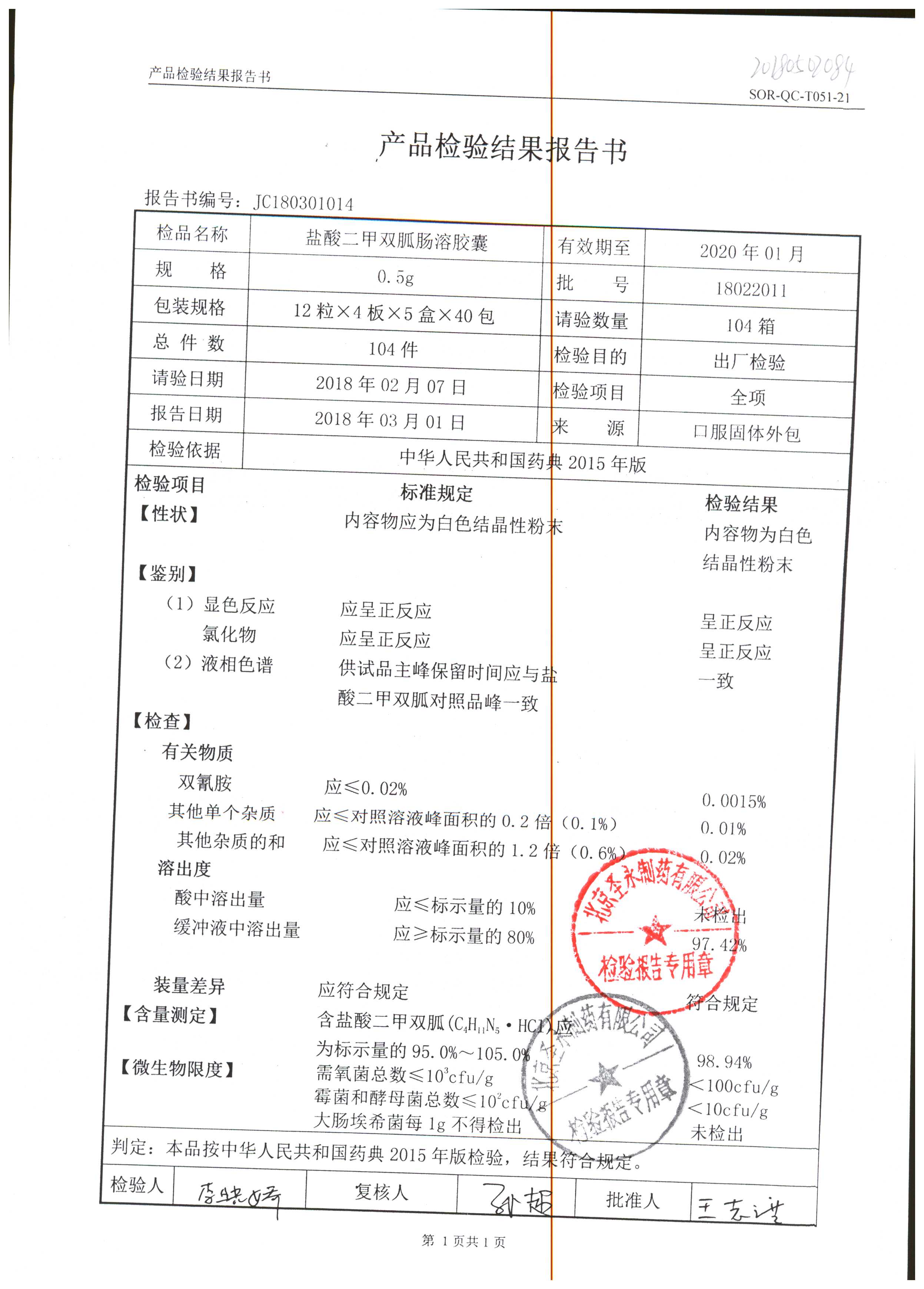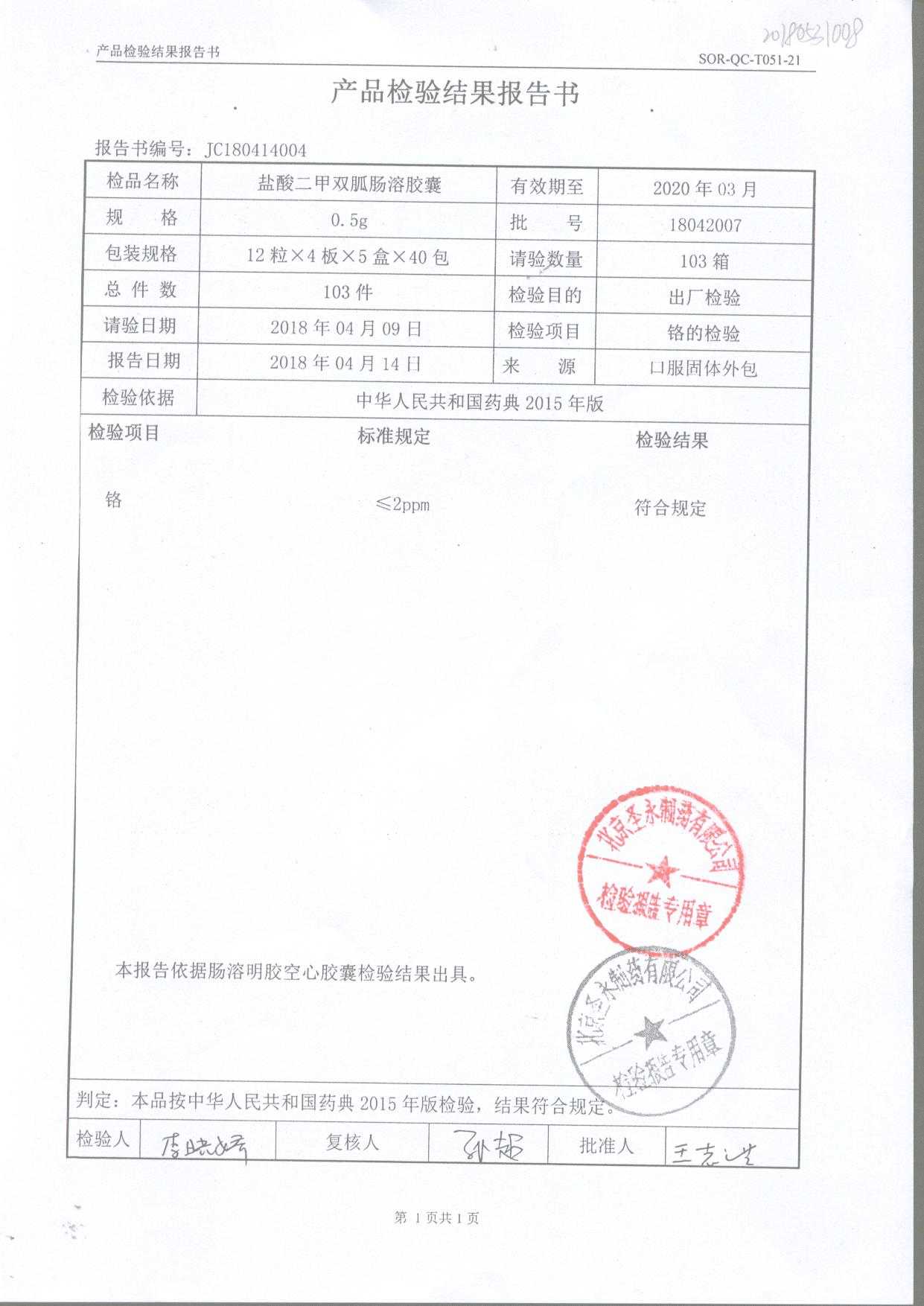 | 鹽酸二甲雙胍腸溶膠囊 | 0.5g*48s | 18042007(2/2) | 查看詳情 |