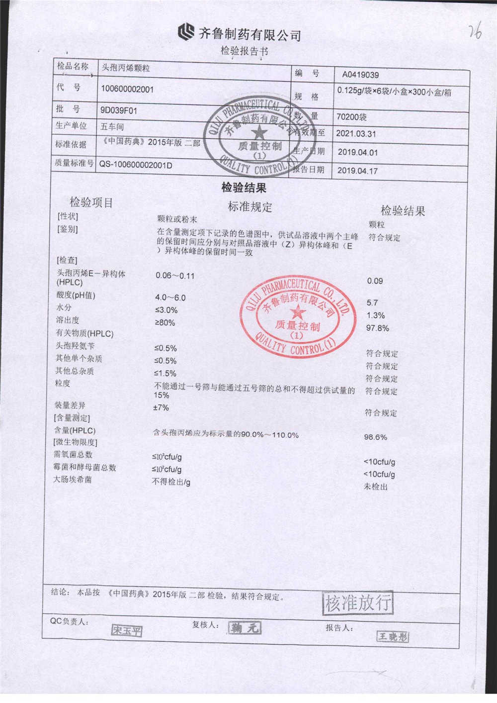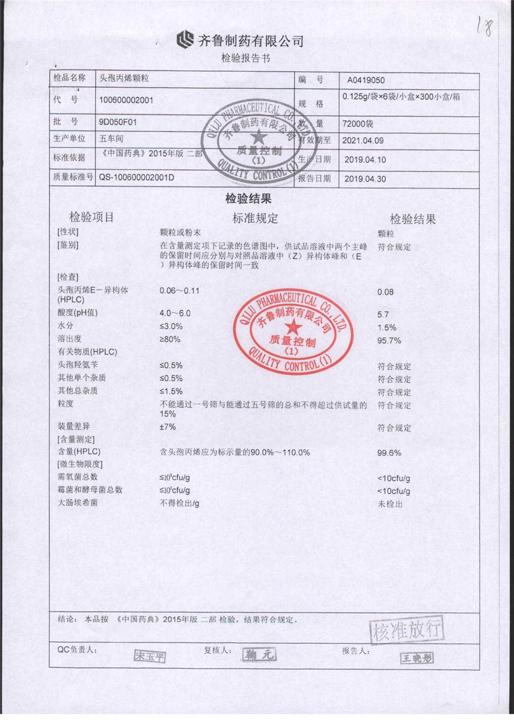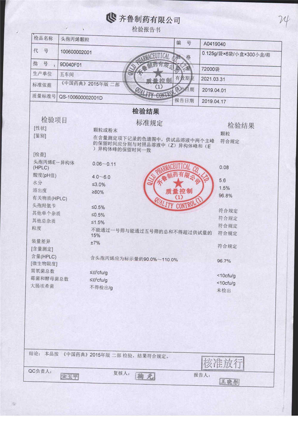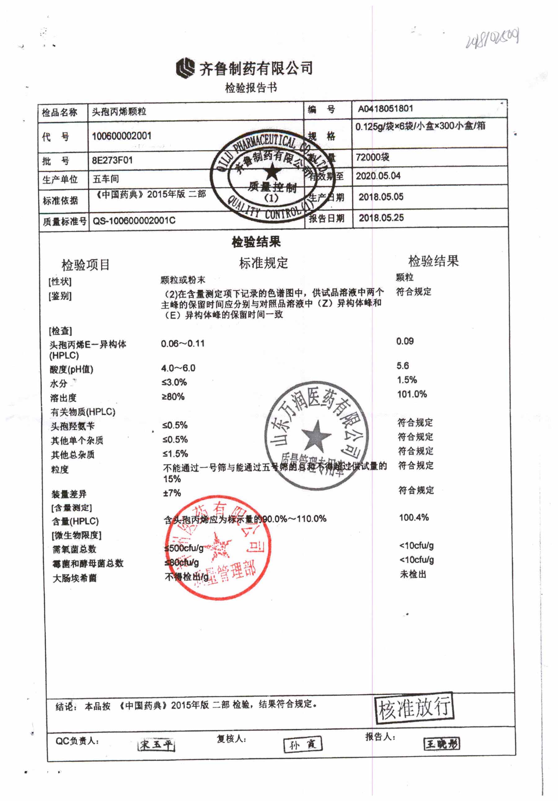 | 名稱 | 規(guī)格 | 批號 | 藥檢報告 |