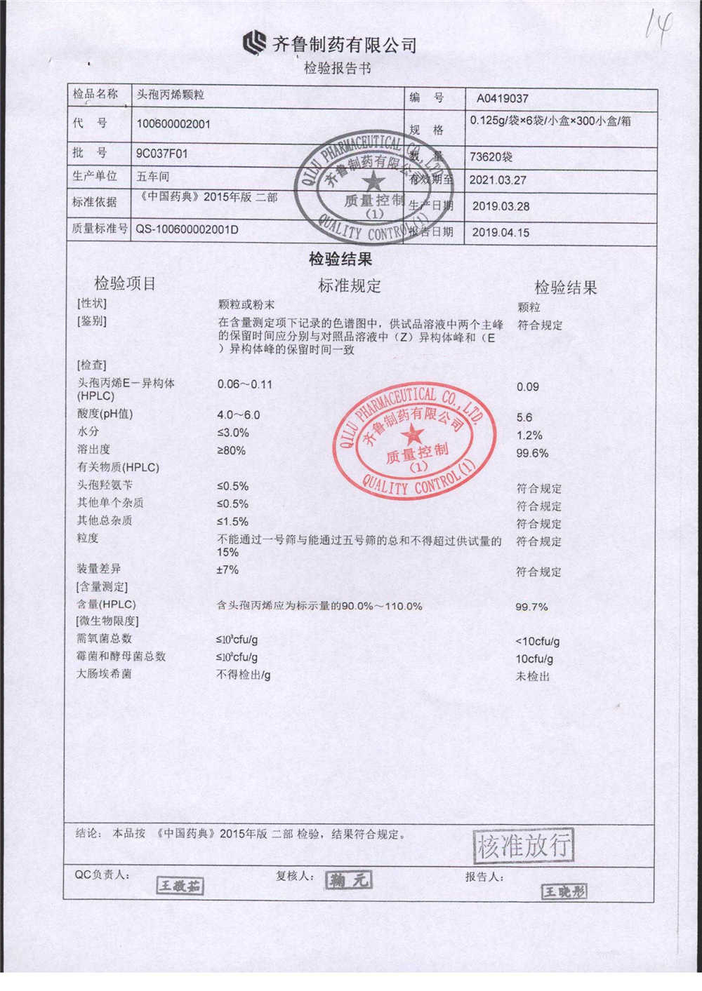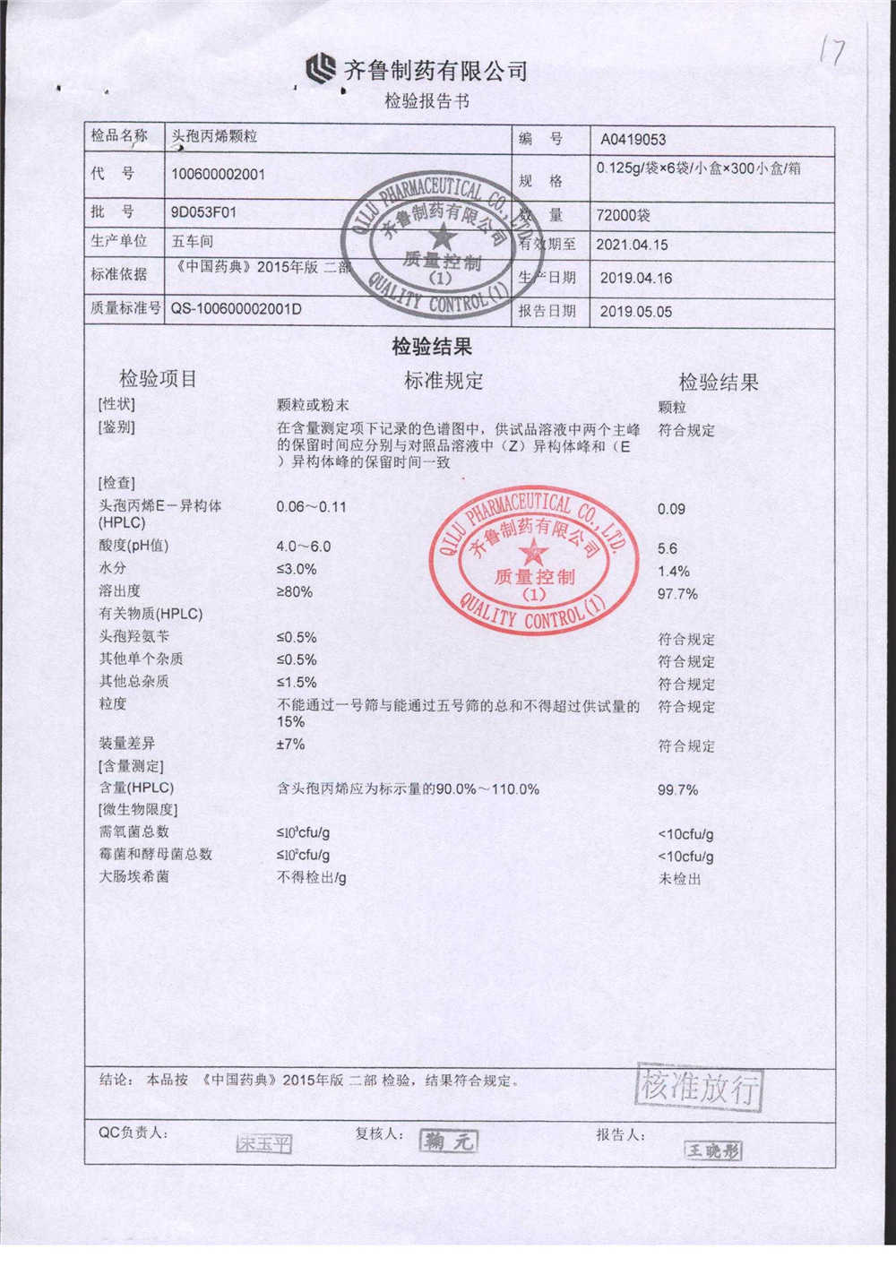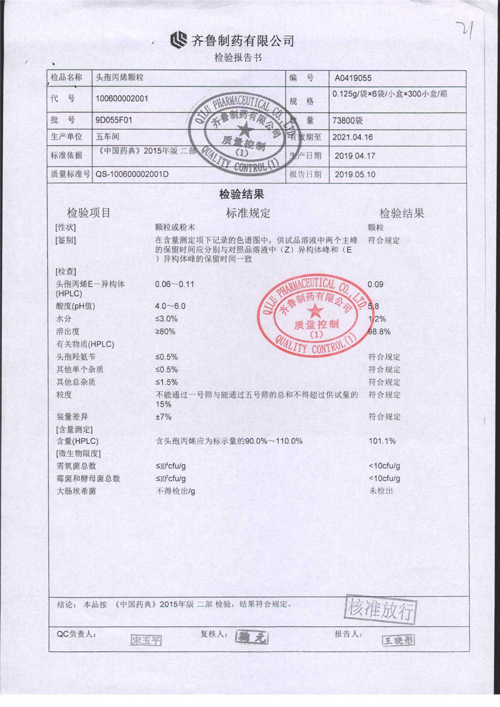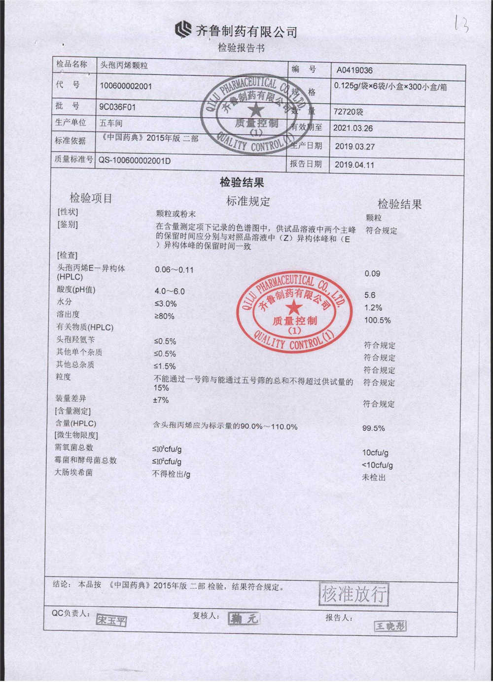 | 名稱 | 規(guī)格 | 批號 | 藥檢報告 |