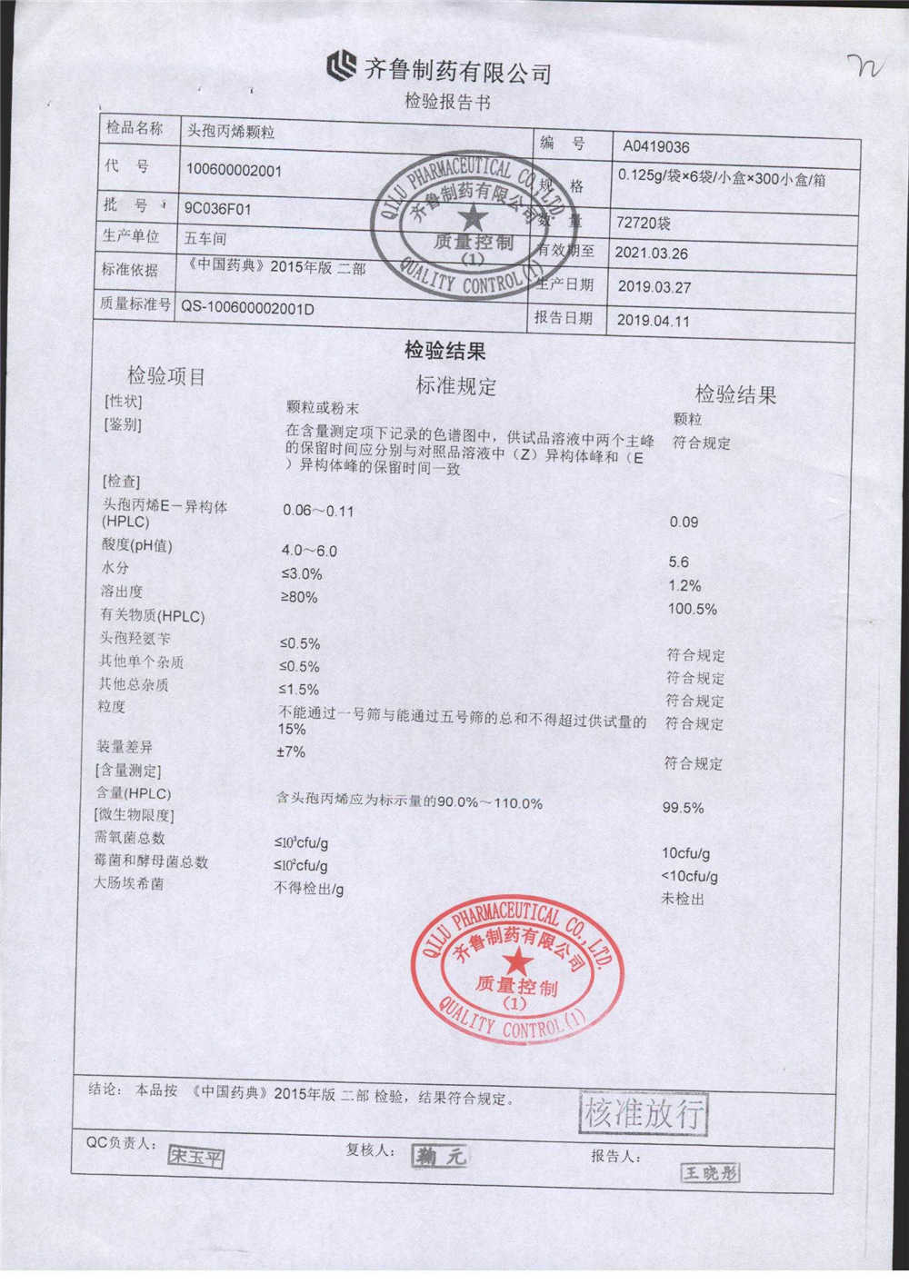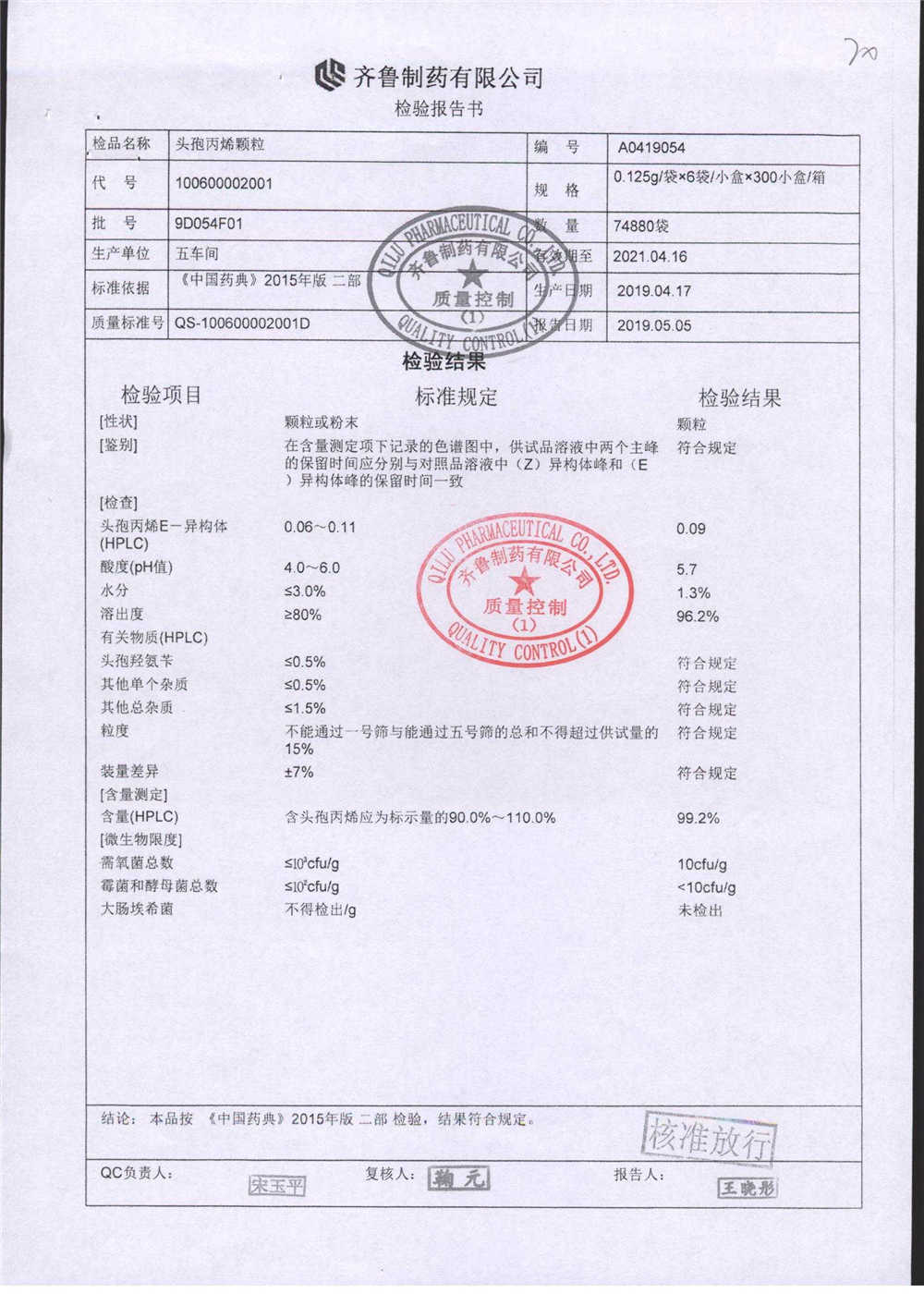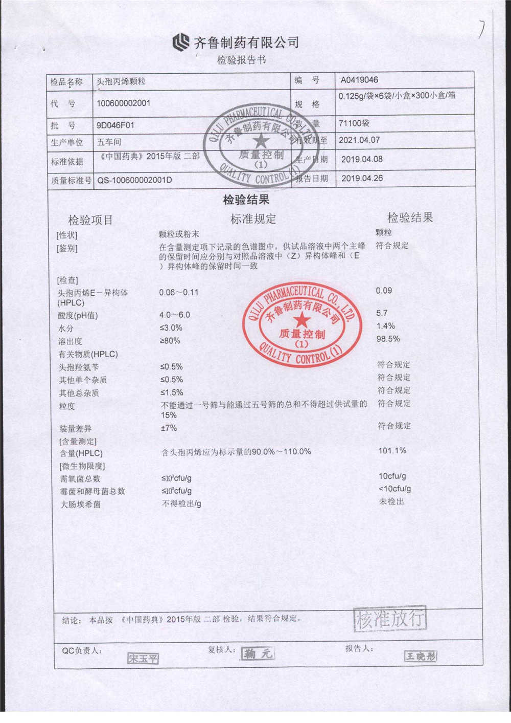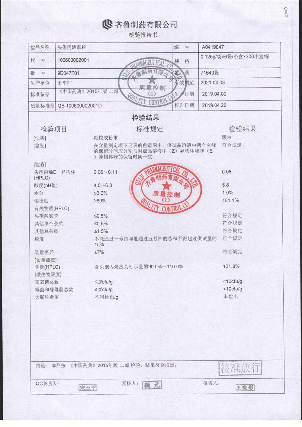 | 名稱 | 規(guī)格 | 批號 | 藥檢報告 |