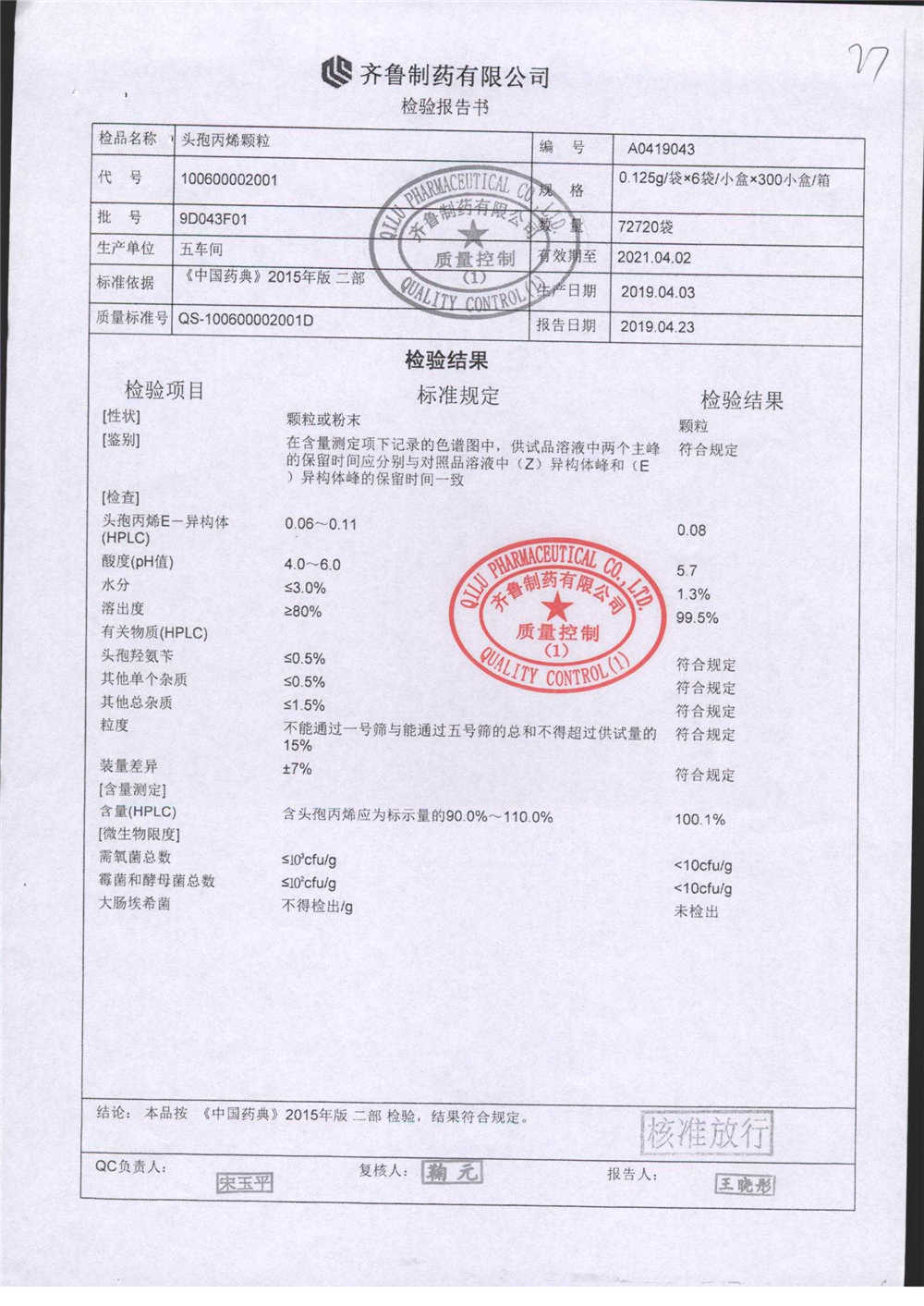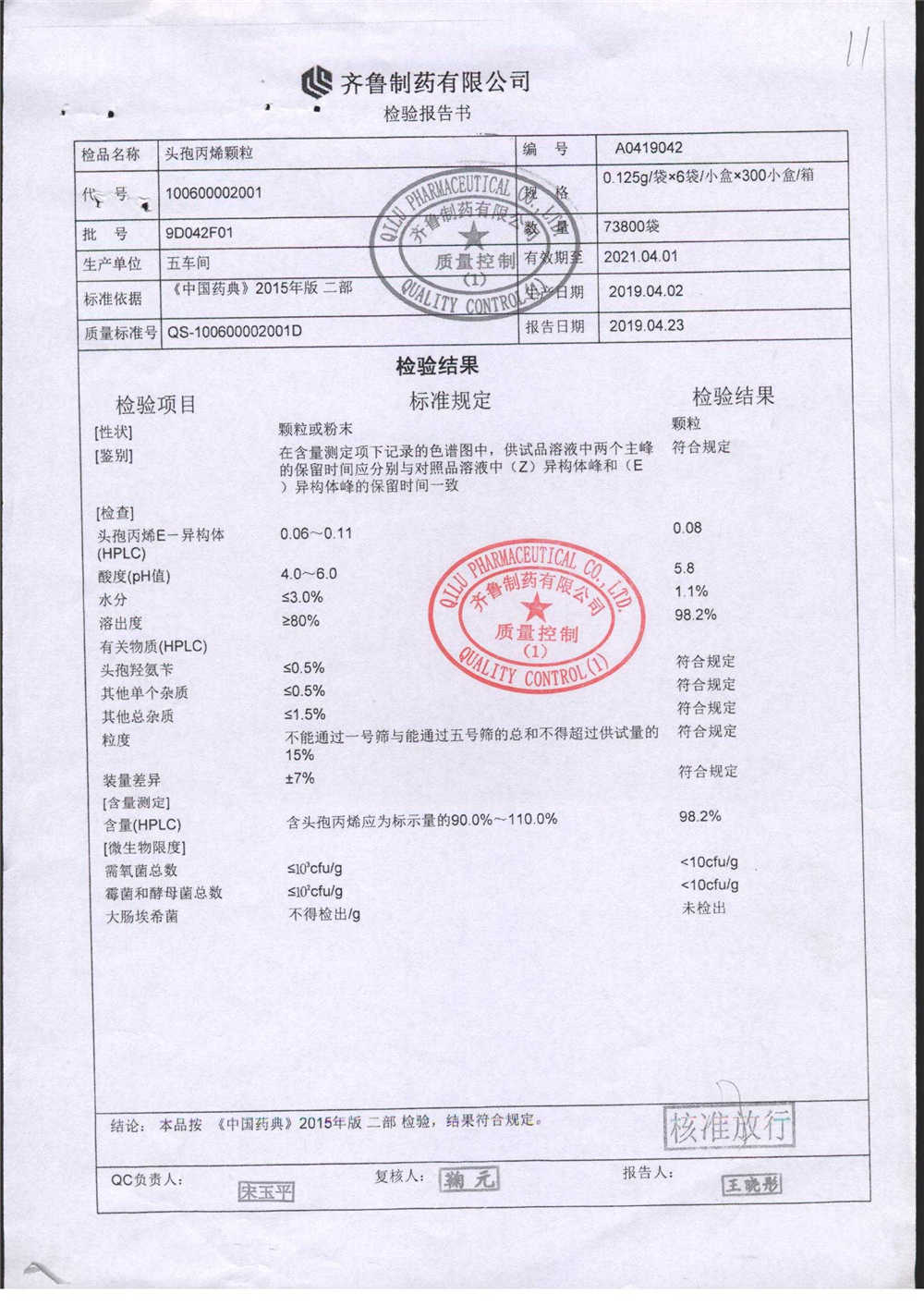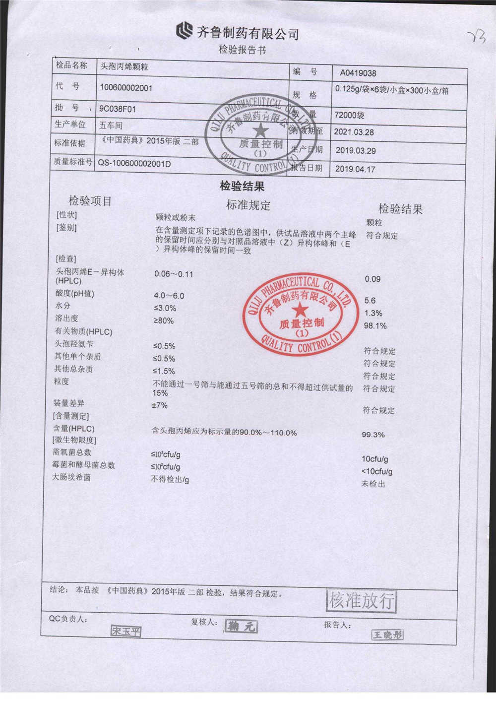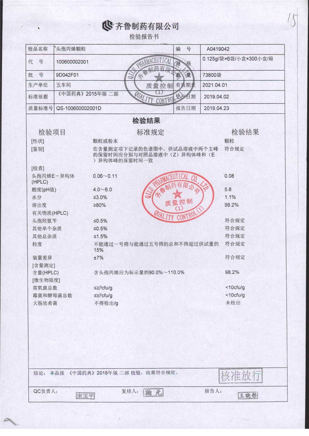 | 名稱 | 規(guī)格 | 批號 | 藥檢報告 |