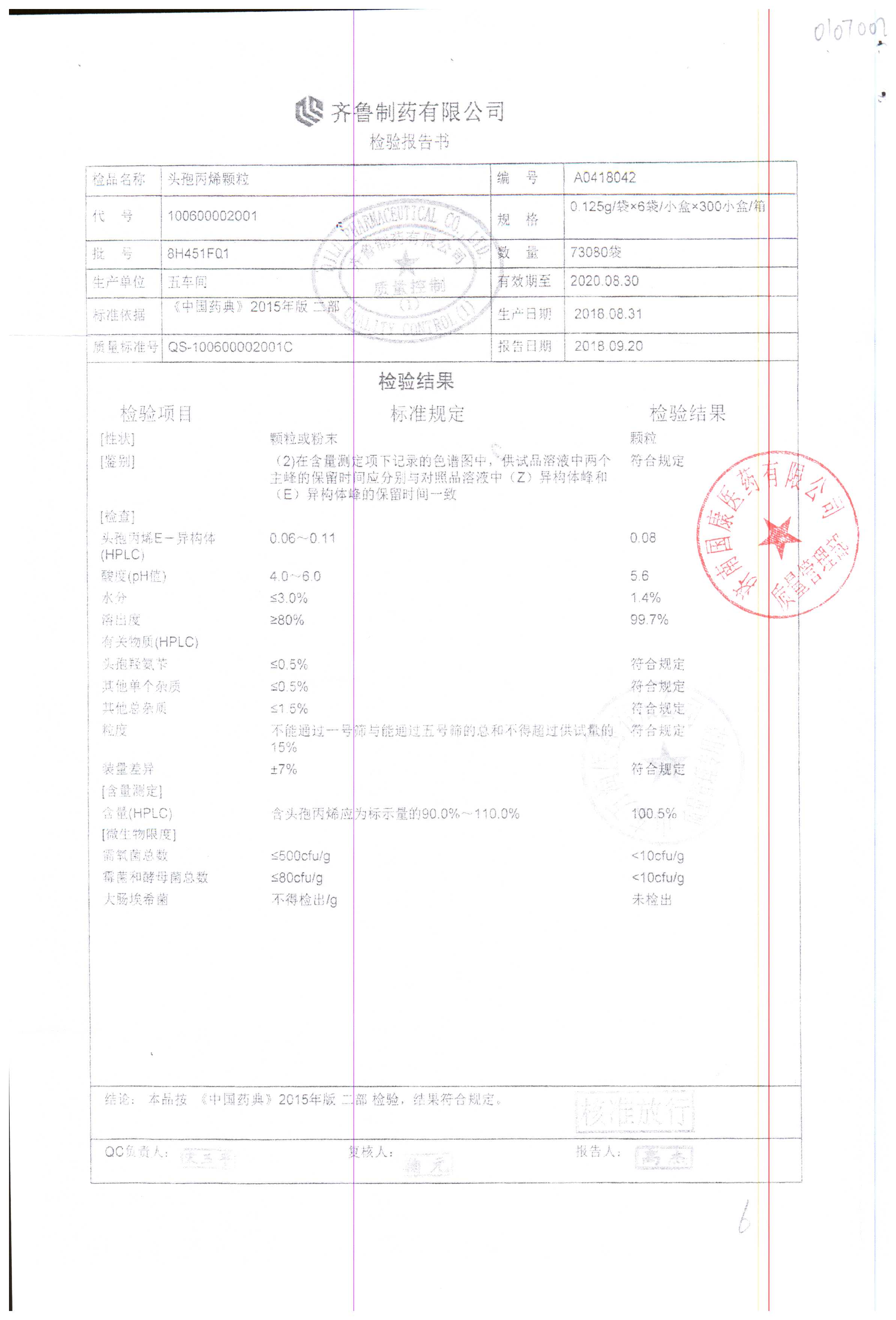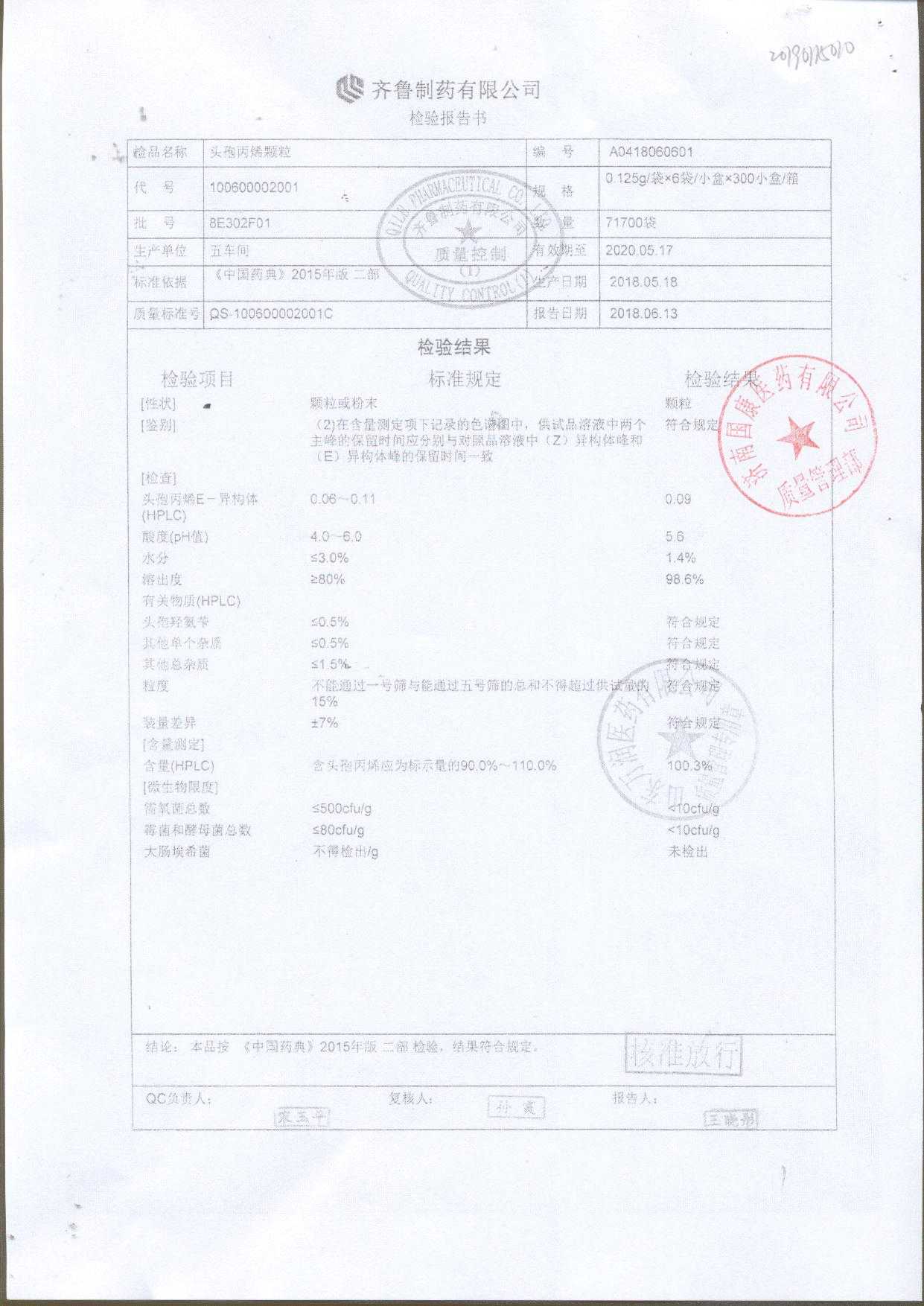 | 頭孢丙烯顆粒 | 0.125g*6袋 | 8H451F01 | 查看詳情 |