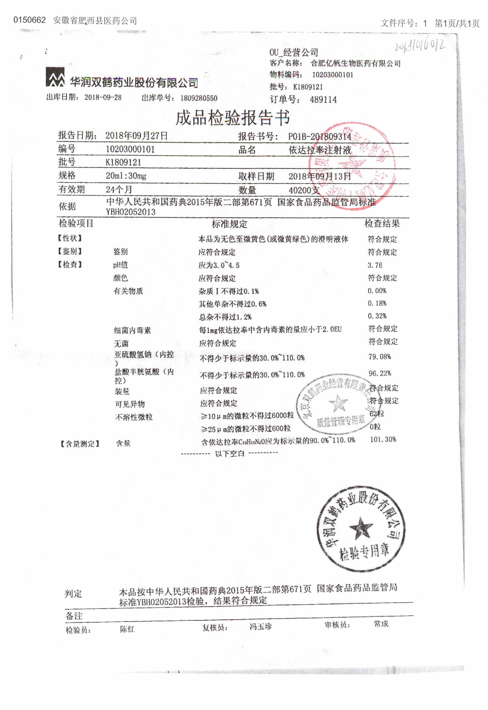 | 依達(dá)拉奉注射液 | 20ml:30mg | K1809121 | 查看詳情 |