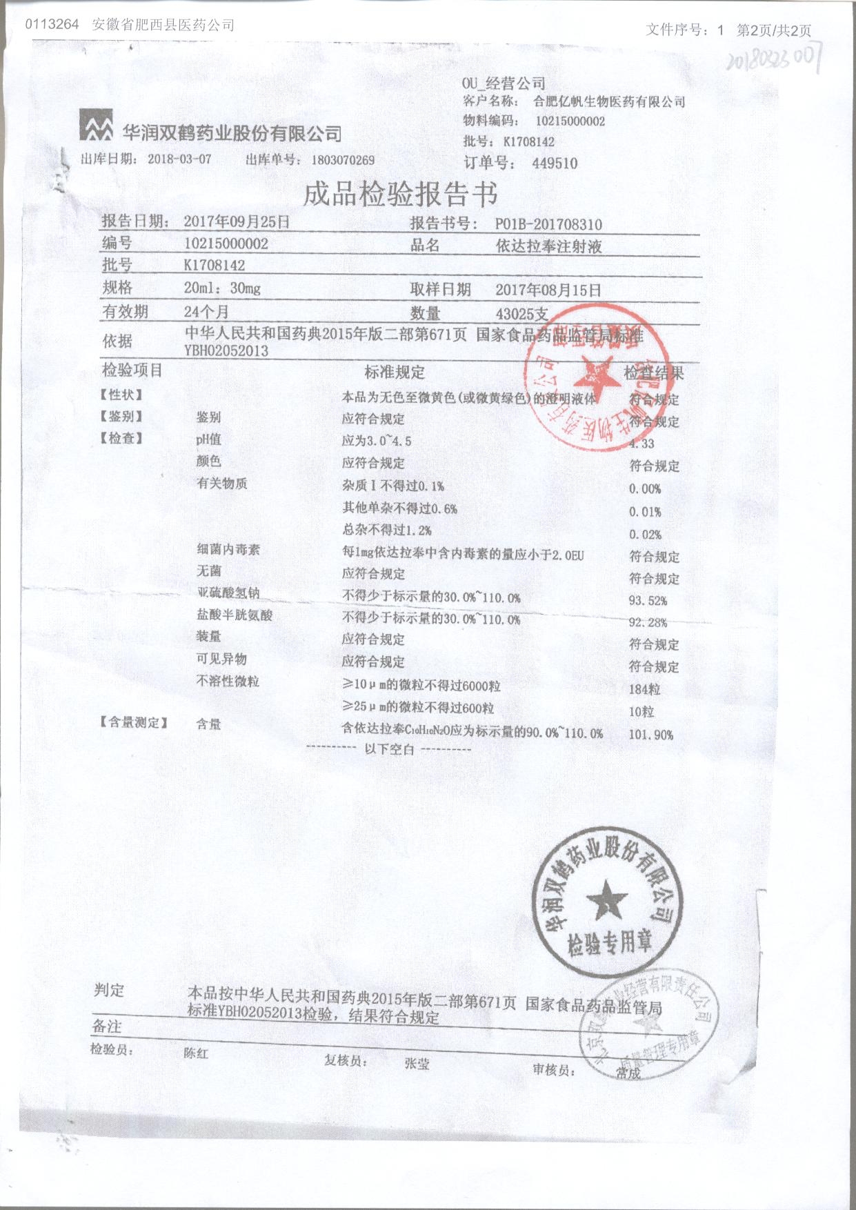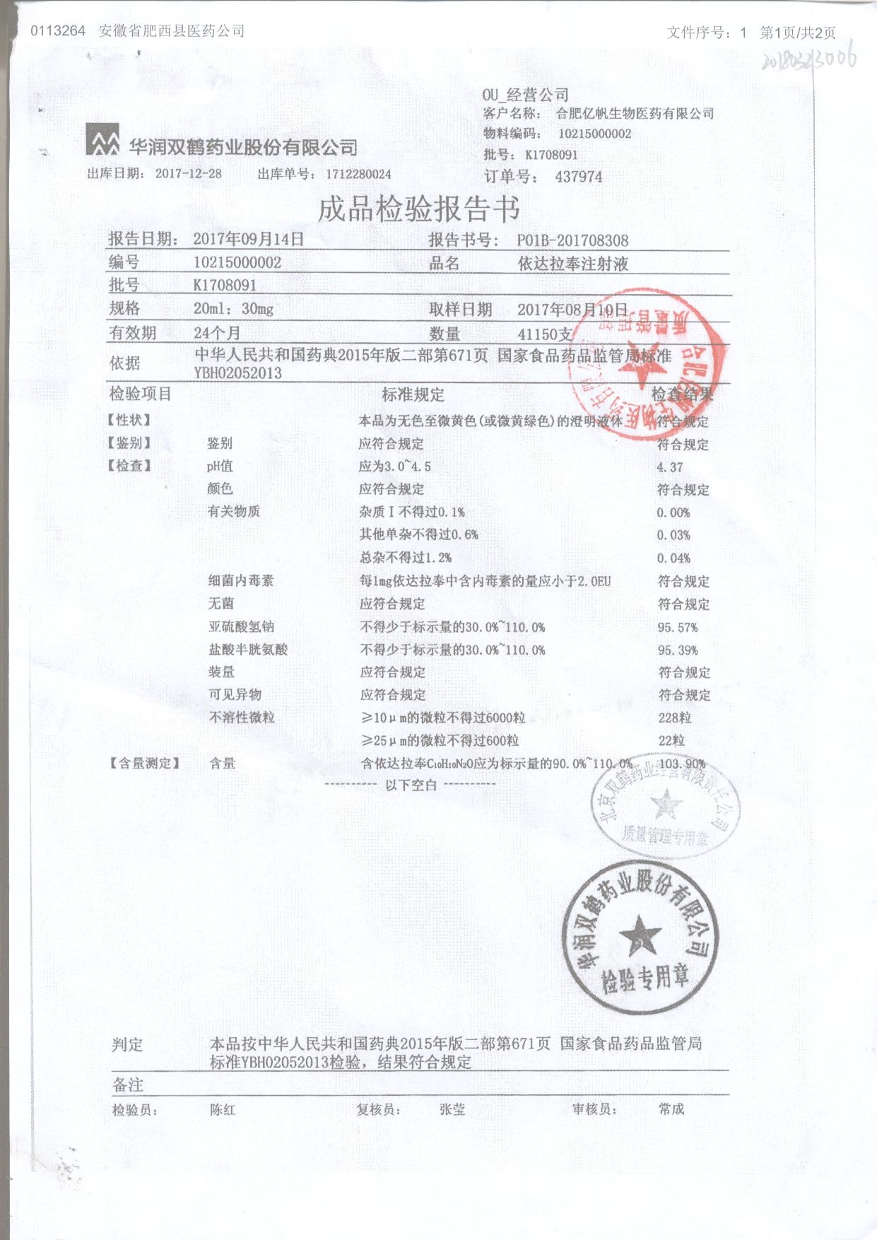 | 依達(dá)拉奉注射液 | 20ml:30mg | K1708091 | 查看詳情 |