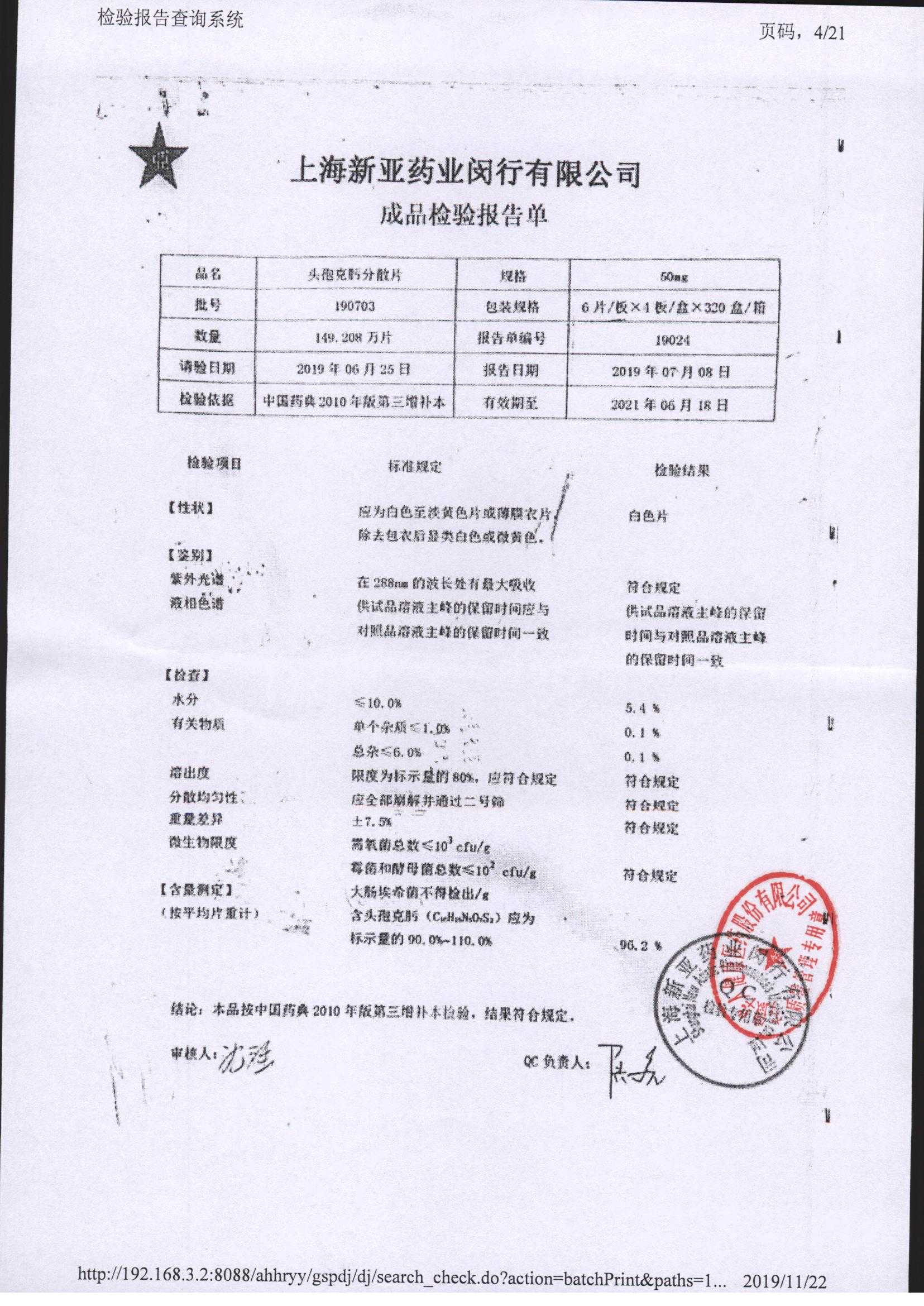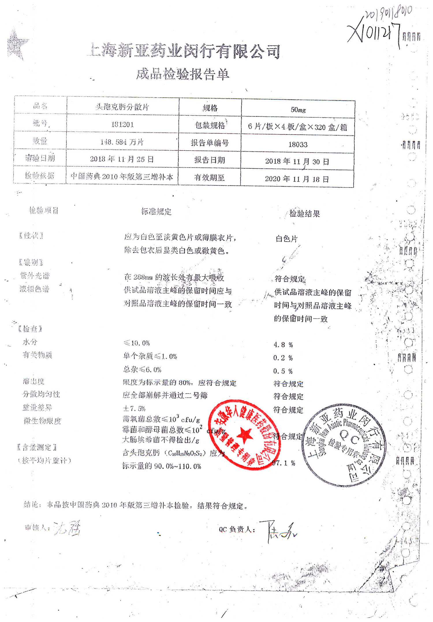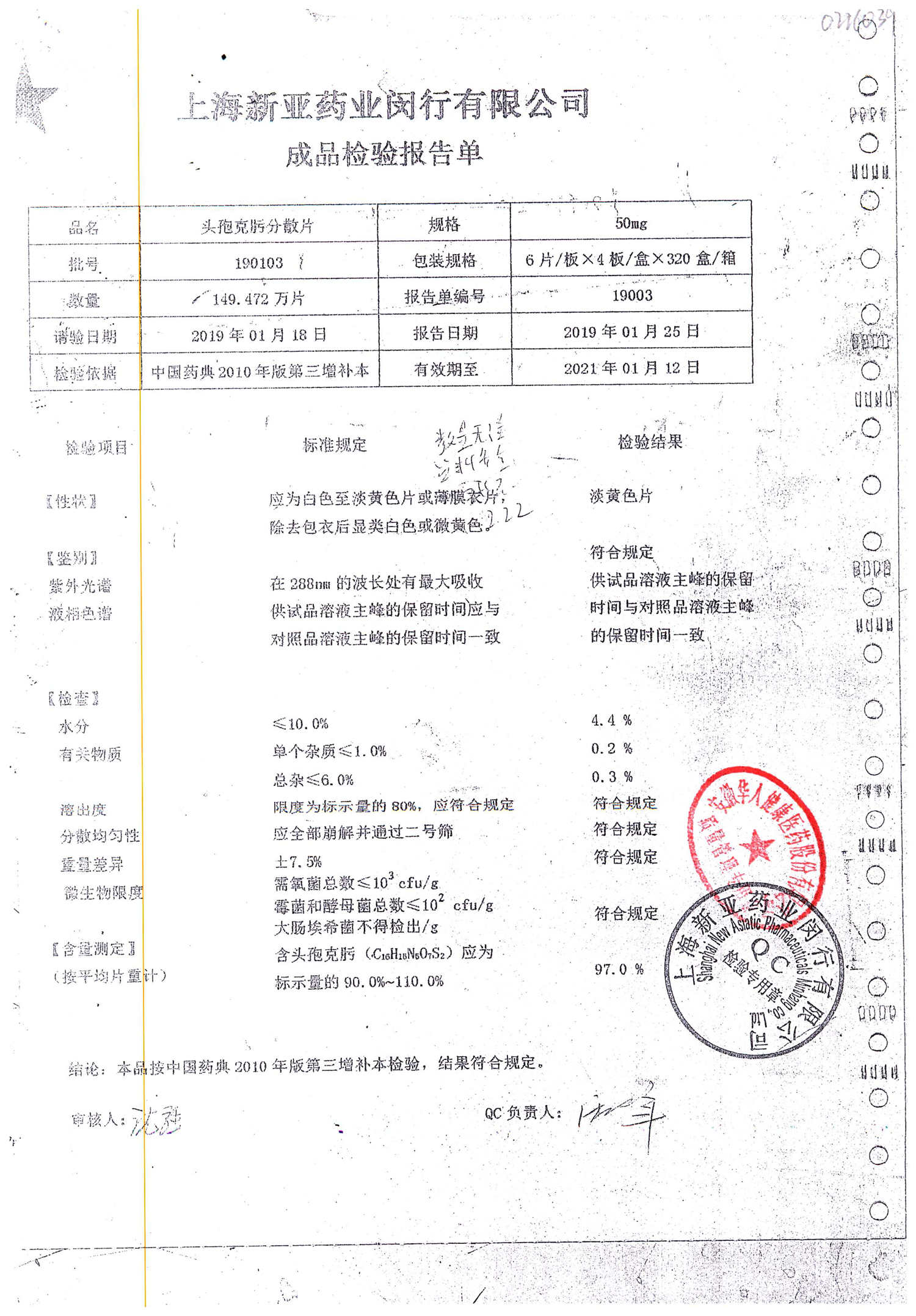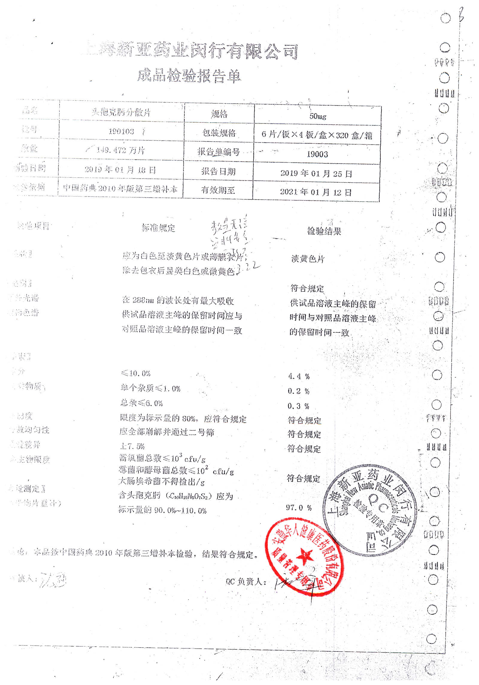 | 頭孢克肟分散片 | 50mg*24s | 190703 | 查看詳情 |