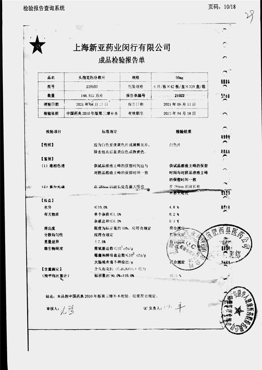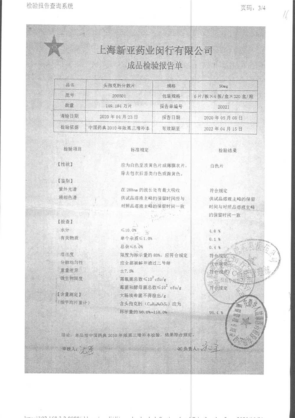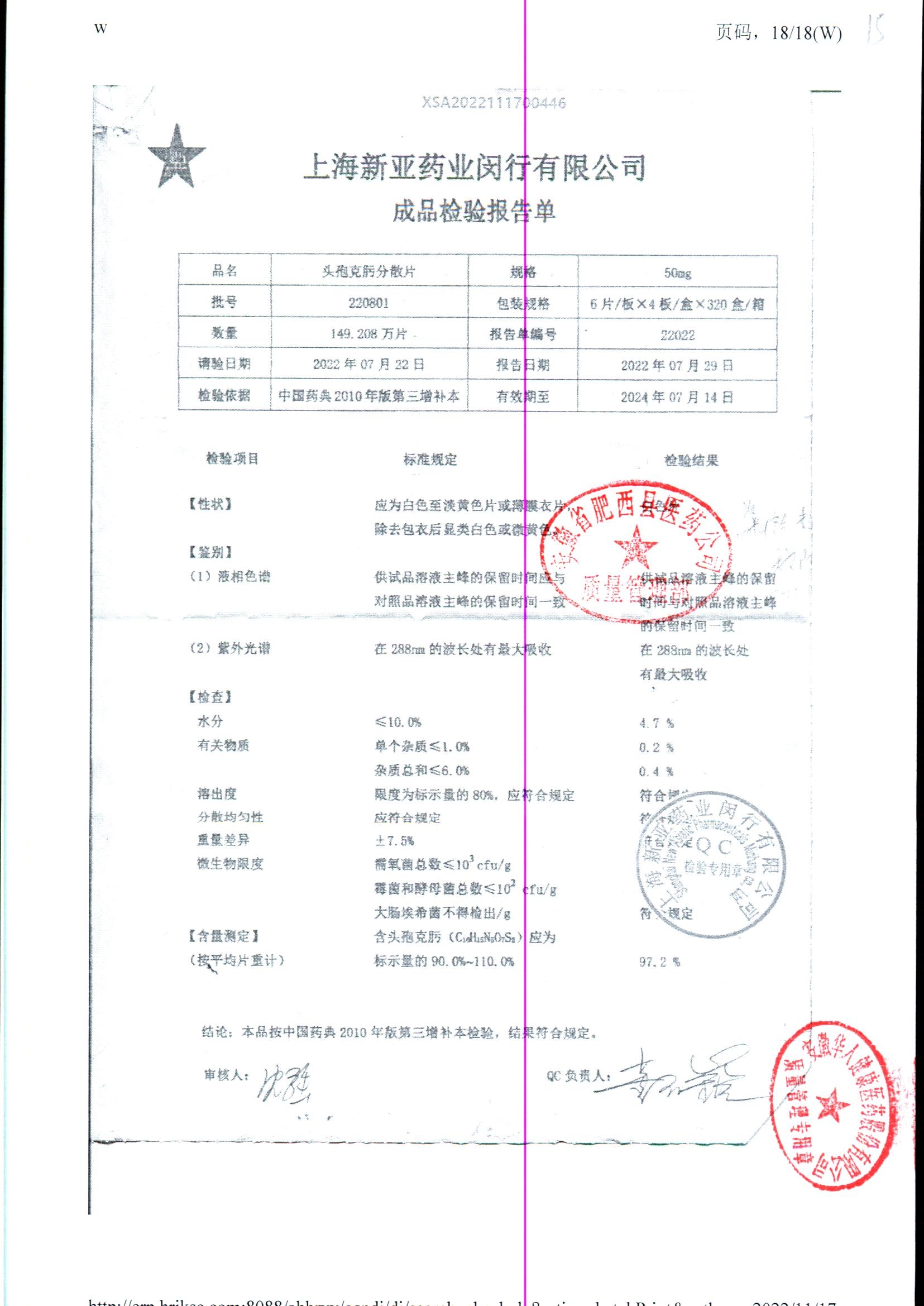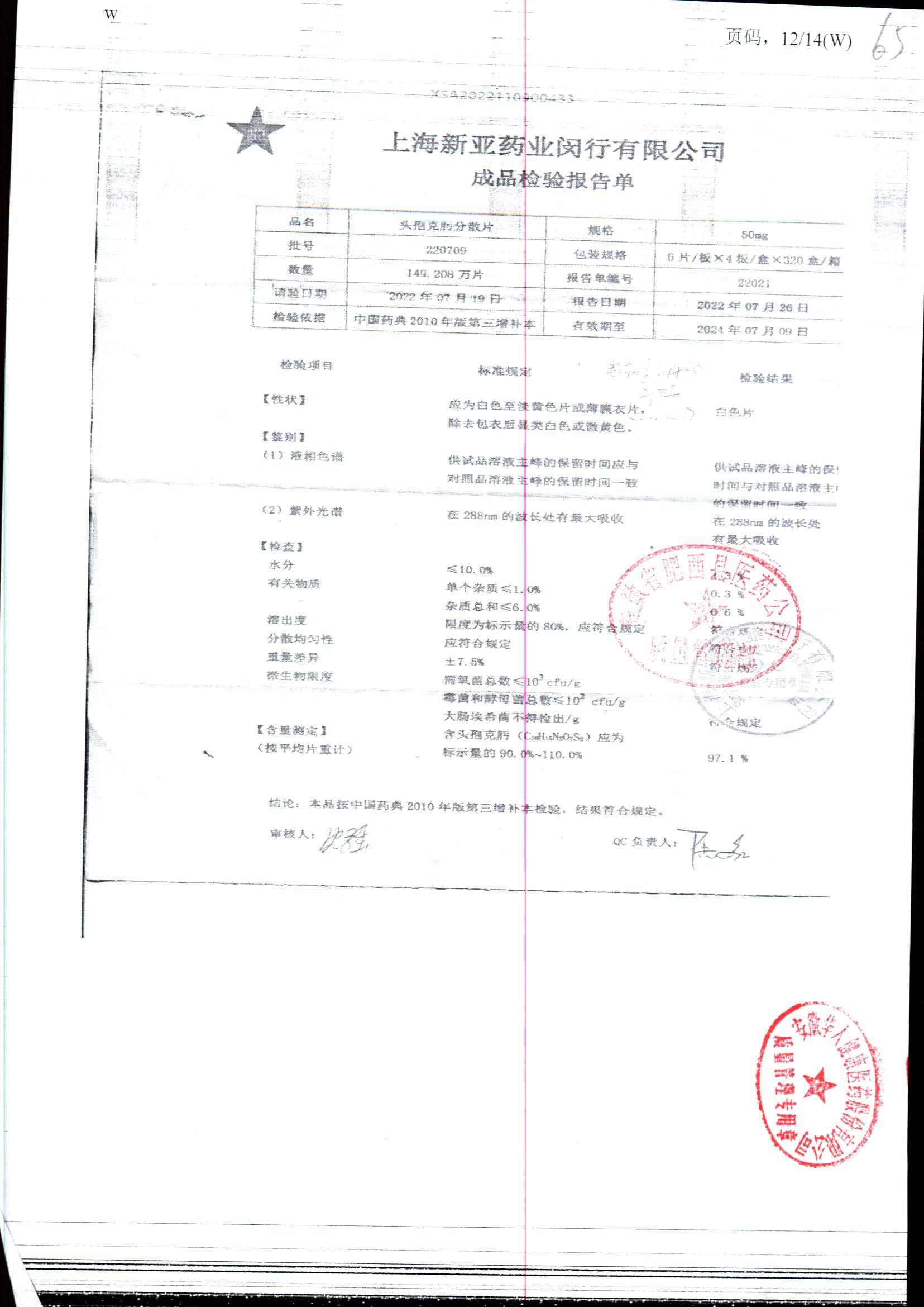 | 頭孢克肟分散片 | 50mg*24s | 220301 | 查看詳情 |