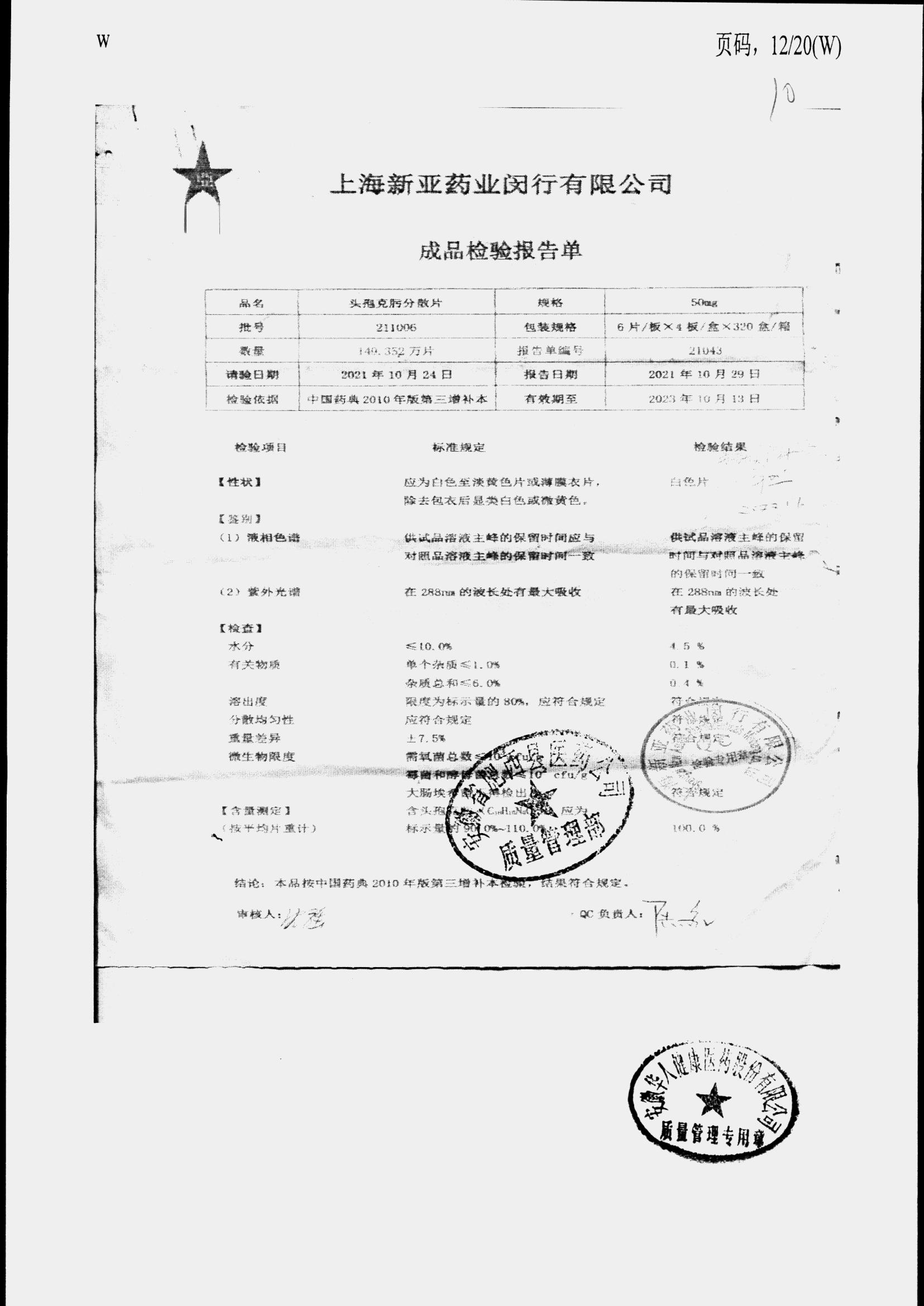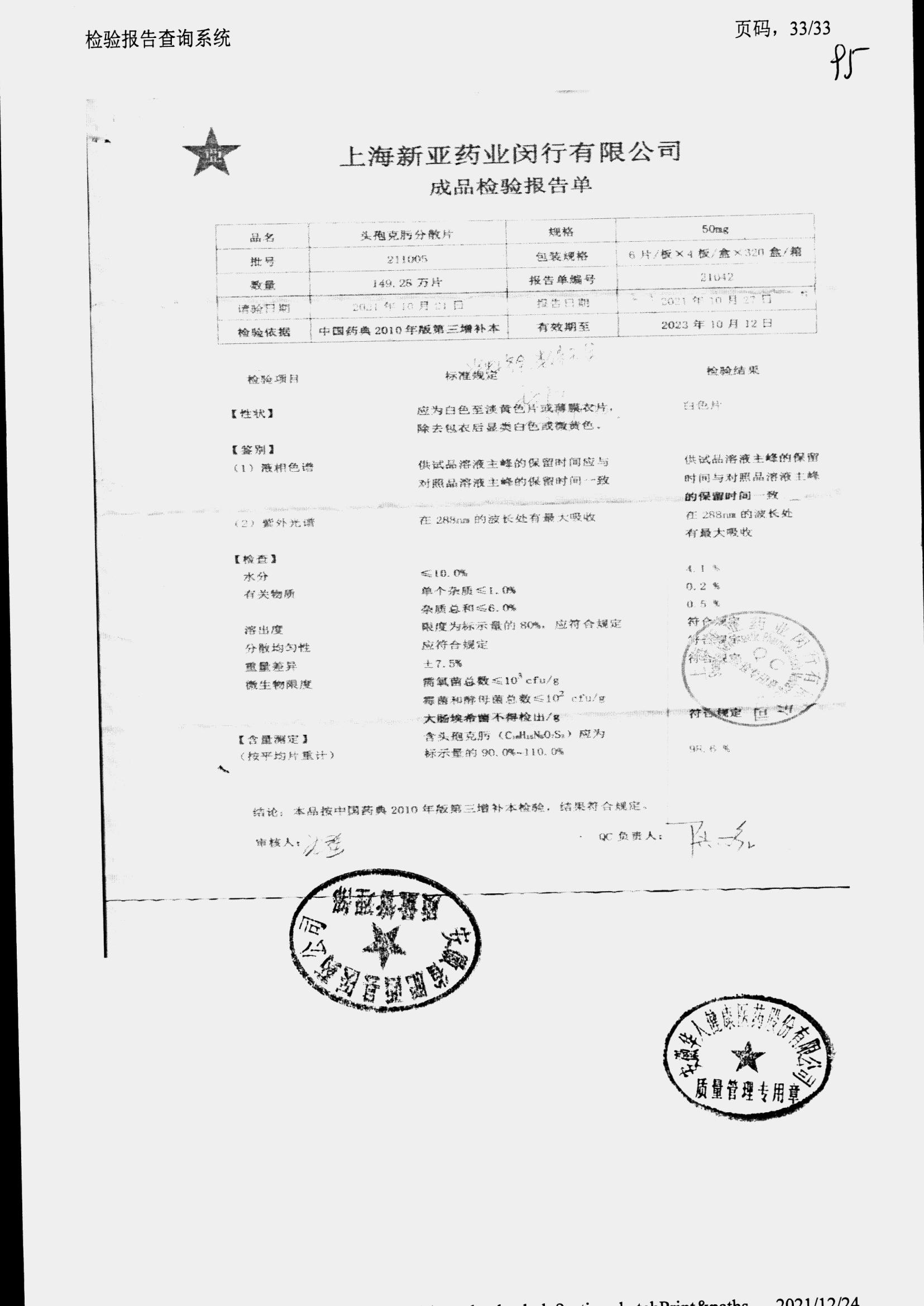 | 頭孢克肟分散片 | 50mg*24s | 210605 | 查看詳情 |
