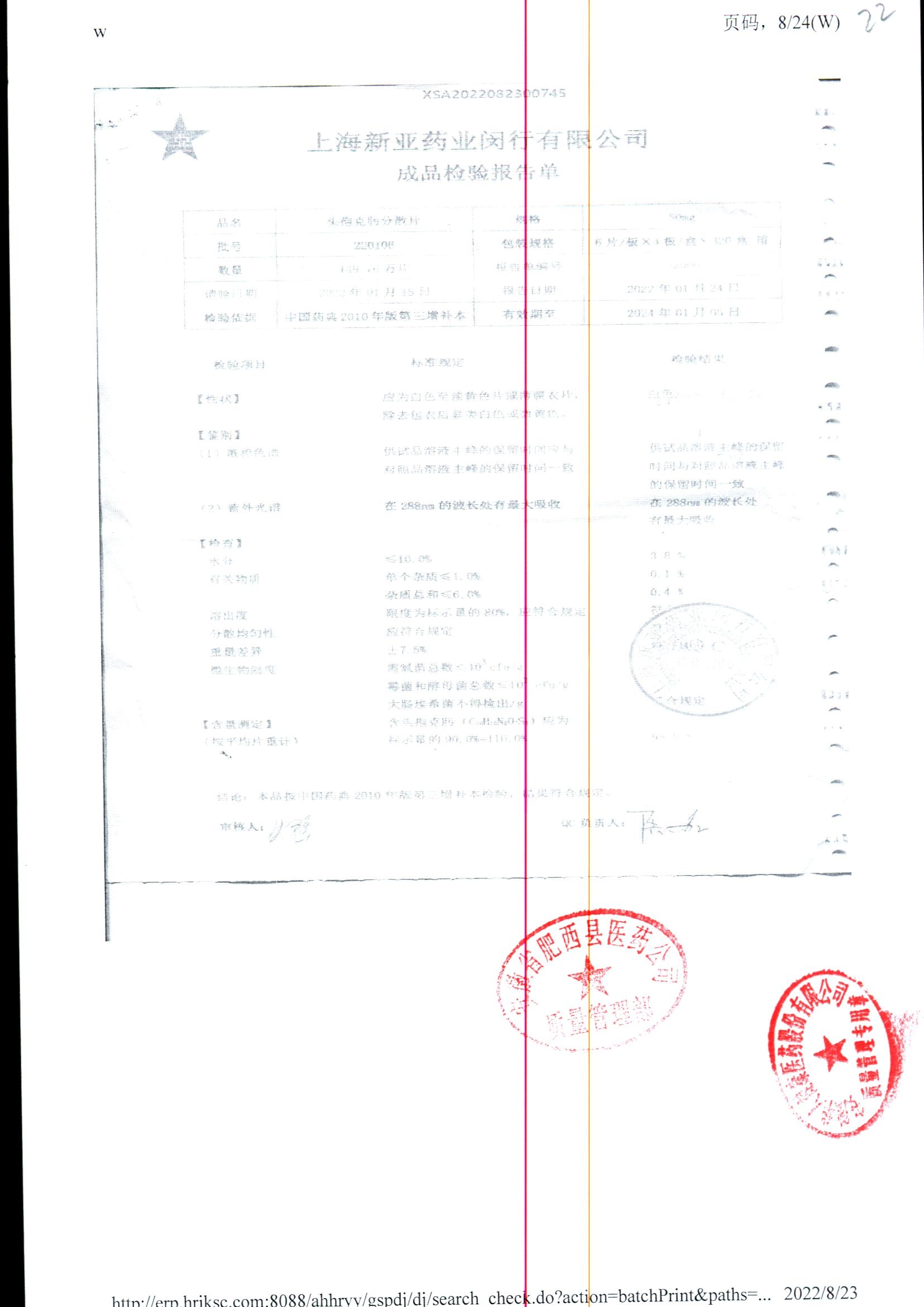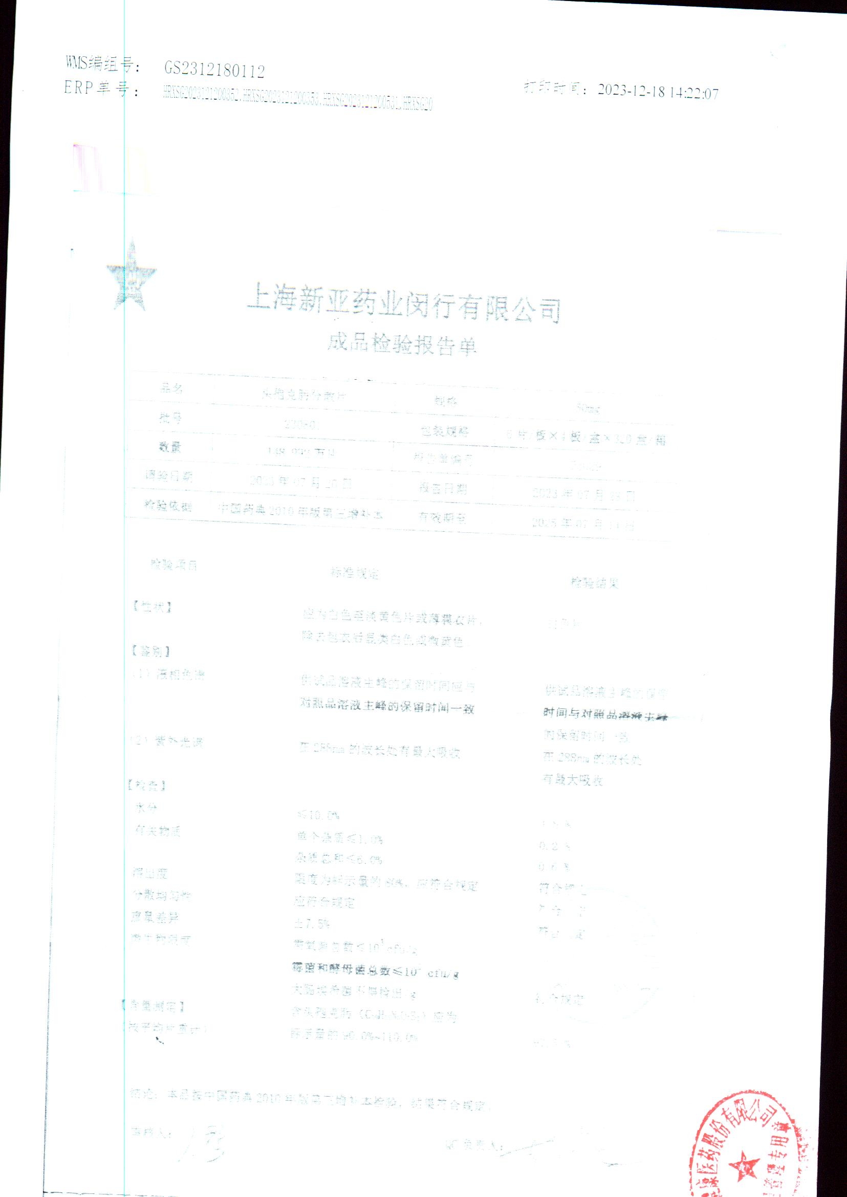 | 名稱 | 規(guī)格 | 批號 | 藥檢報告 |
