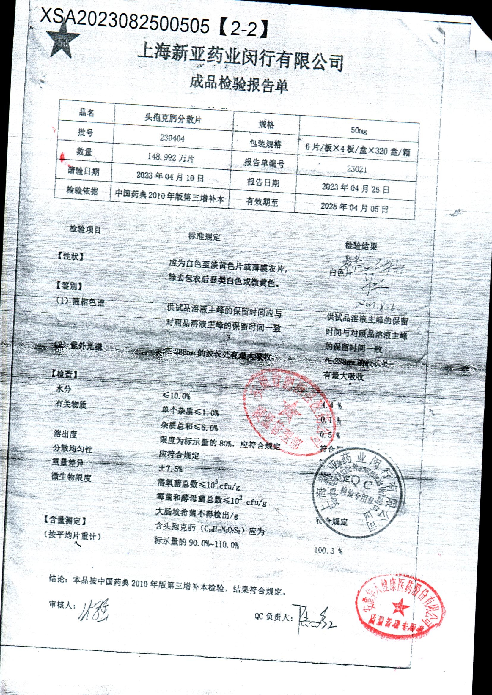 | 頭孢克肟分散片 | 50mg*24s | 230404 | 查看詳情 |